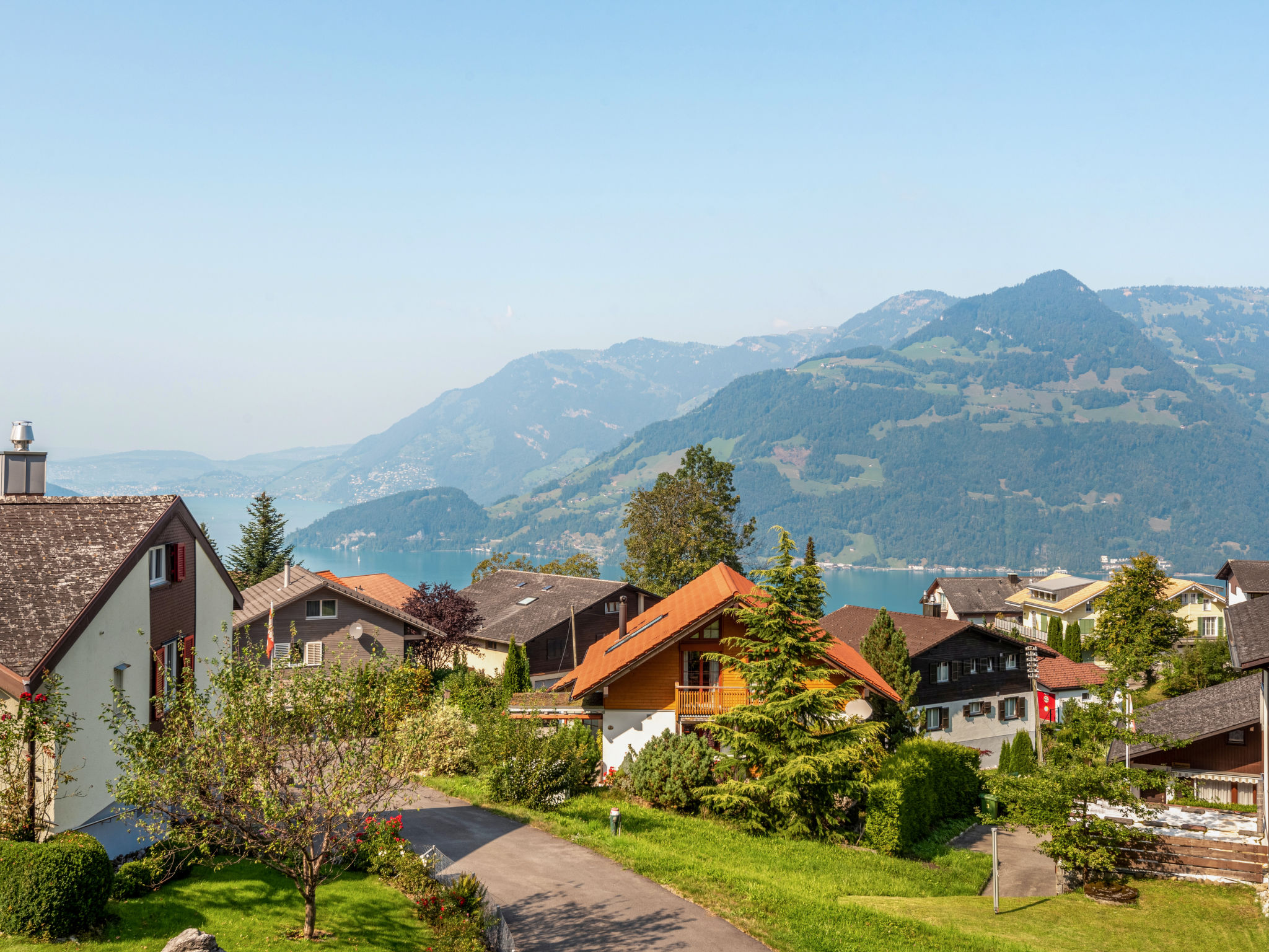 Emmetten 28 km von Luzern: Modernes, schönes, komfortables Mehrfamilienhaus "ELFE Apartments", 780 m.ü.M., auf 3 Stockwerken, umgeben von Bäumen. 3 Häuser in der Residenz. Oberhalb von Beckenried, am Ortsrand, 400 m vom Zentrum von Emmetten, im Bezirk Vierwaldstättersee, ruhige, erhöhte Lage, exzellente Lage: Absolut zentral und dennoch ruhig, 6 km vom See, 300 m vom Skigebiet, im Grünen. Zur Mitbenutzung: Grundstück. Im Hause: Einstellraum für Fahrräder, Skiraum, Zentralheizung, Waschmaschine (zur Mitbenutzung, extra), Trockenraum. Zufahrt bis zum Haus. Im Winter 4x4 empfohlen. Parkplatz (beschränkte Anzahl) beim Haus, im Winter 30 m Gemeinschaftsgarage (extra) beim Haus. Einkaufsgeschäft 500 m, Lebensmittelgeschäft, Restaurant 300 m, Bäckerei 500 m, Bushaltestelle 500 m, Bahnstation "Stans SBB" 12 km, Freibad 6 km, See Vierwaldstätersee 6 km. Minigolf 6 km, Wanderwege ab Haus 1 m, Bergeisenbahn 300 m. Nahe gelegene Sehenswürdigkeiten: Rigi, Pilatus, Stanserhorn (Cabriobahn), Bürgerstock, Niederbauen, Glasi, Hergiswil, Bike-Arena, Emmetten, Tritt - Hütte 1600 m.ü.M. Bekannte Skigebiete sind gut erreichbar: Stockhütte 7 km, Klewenalp 19 km, Seelisberg 8 km. Bekannte Seen in der Umgebung sind gut erreichbar: Vierwaldstättersee 4 km, Urnersee, Seelisbergsee. Wandergebiete: Route 1 Klewenalp-Stockhütte ca. 2h, Route 2 Panoramarundwanderweg ca. 1,5h, Route 6 Klewenalp-Gitschenen ca. 3,5h. Bitte beachten: Fahrzeug empfohlen. Geeignet für Familien, geeignet für Senioren. Bei guter Schneelage Zufahrt mit den Skiern bis zum Haus. Autobahn 5 km vom Haus. Das Foto ist nur ein Hausbeispiel. Weitere Unterkünfte sind buchbar. Ferienwohnung Ref. CH6376.400 befindet sich auf dem gleichen Grundstück.
