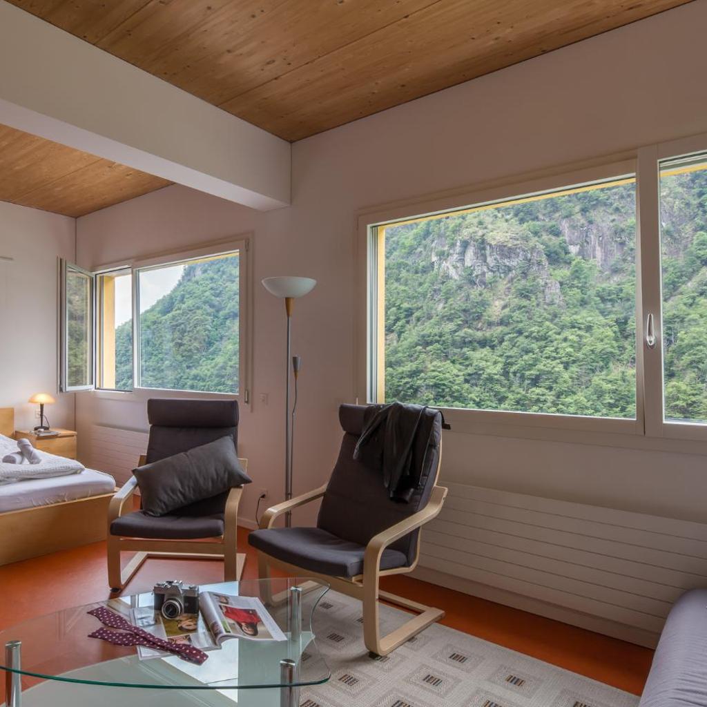 Das Hotel Pizzo Vogorno liegt im Dorf Vogorno, umgeben von Bergen und üppigem Grün. Es ist ein idealer Ausgangspunkt für Ausflüge, Wanderungen und Bergtouren im Valle Verzasca.