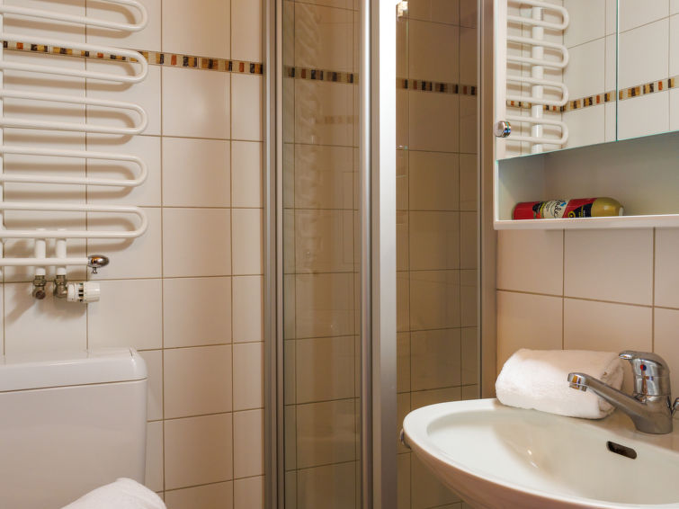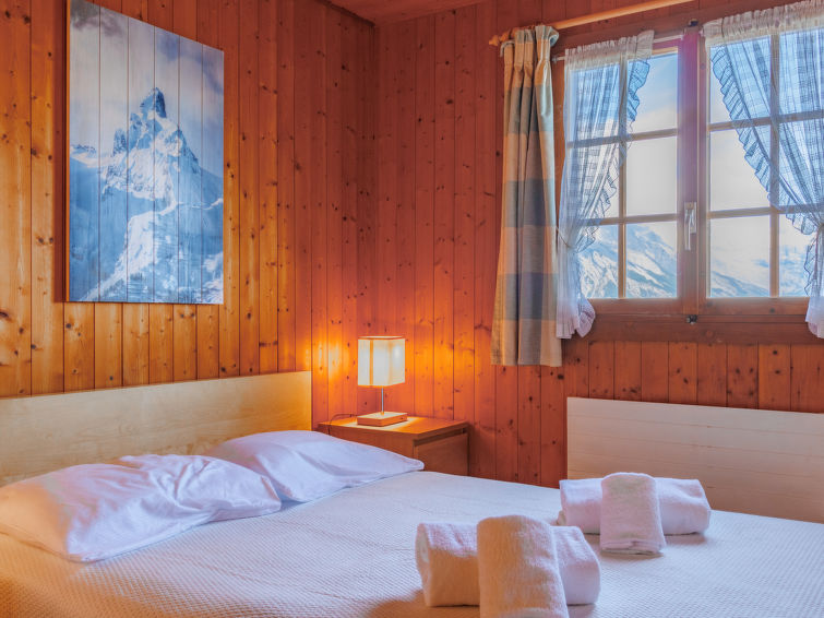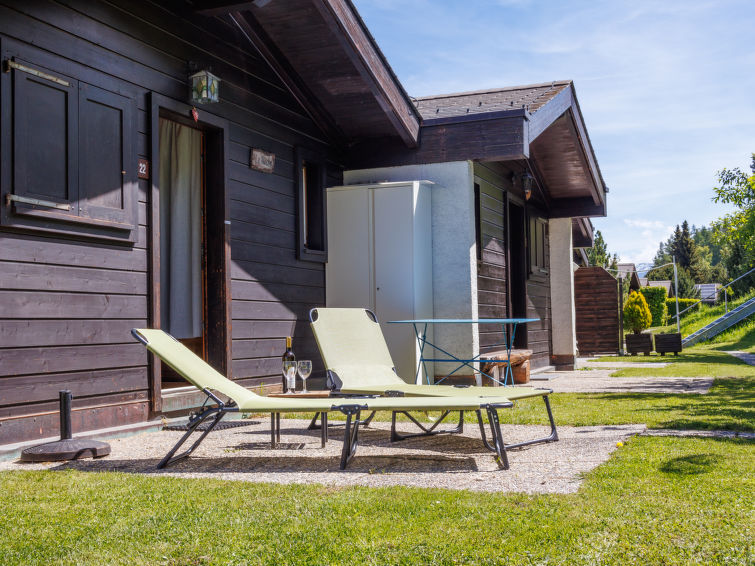 "Tsamandon 22", 3-Zimmer-Doppelhaushälfte 50 m2 auf 2 Stockwerken. Zweckmässig eingerichtet: Wohn-/Esszimmer mit Kabel-TV. Ausgang zum Balkon, Richtung Norden. Offene Küche (3 Kochplatten, Backofen, Toaster, Wasserkocher, elektrische Kaffeemaschine, Racletteofen, Fondue Set (Käse)). E-Heizung. Unteres Geschoss: 1 Zimmer mit 1 franz. Bett (140 cm, Länge 200 cm). 1 Zimmer mit 2 Betten (90 cm, Länge 190 cm). Dusche/WC. Liegestühle (2). Schöne Sicht auf die Berge. Zur Verfügung: Internet (WLAN, gratis). Parkplatz Nr. 22. Bitte beachten: Nichtraucher-Haus. Maximal 1 Haustier/Hund erlaubt.
