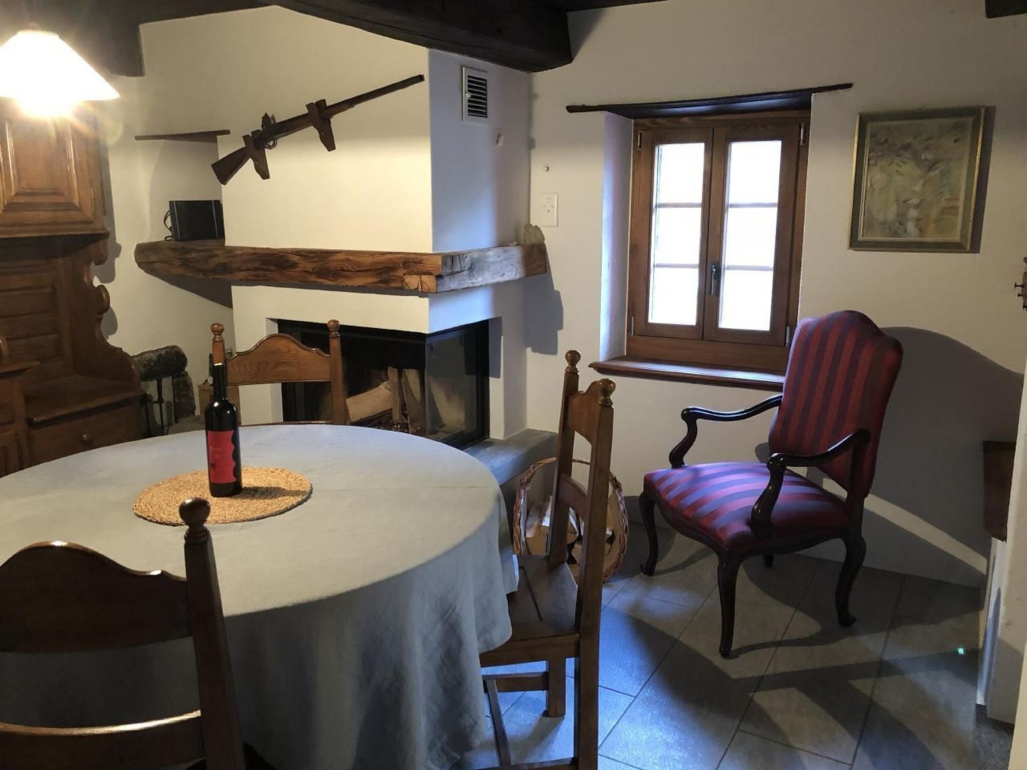 Sonstige Kücheneinrichtung (Küche1): Esszimmer neben der Küche mit Cheminée und Esstisch. Set für Käse odwer Fleischfondue vorhandeln somit Raclette auch.