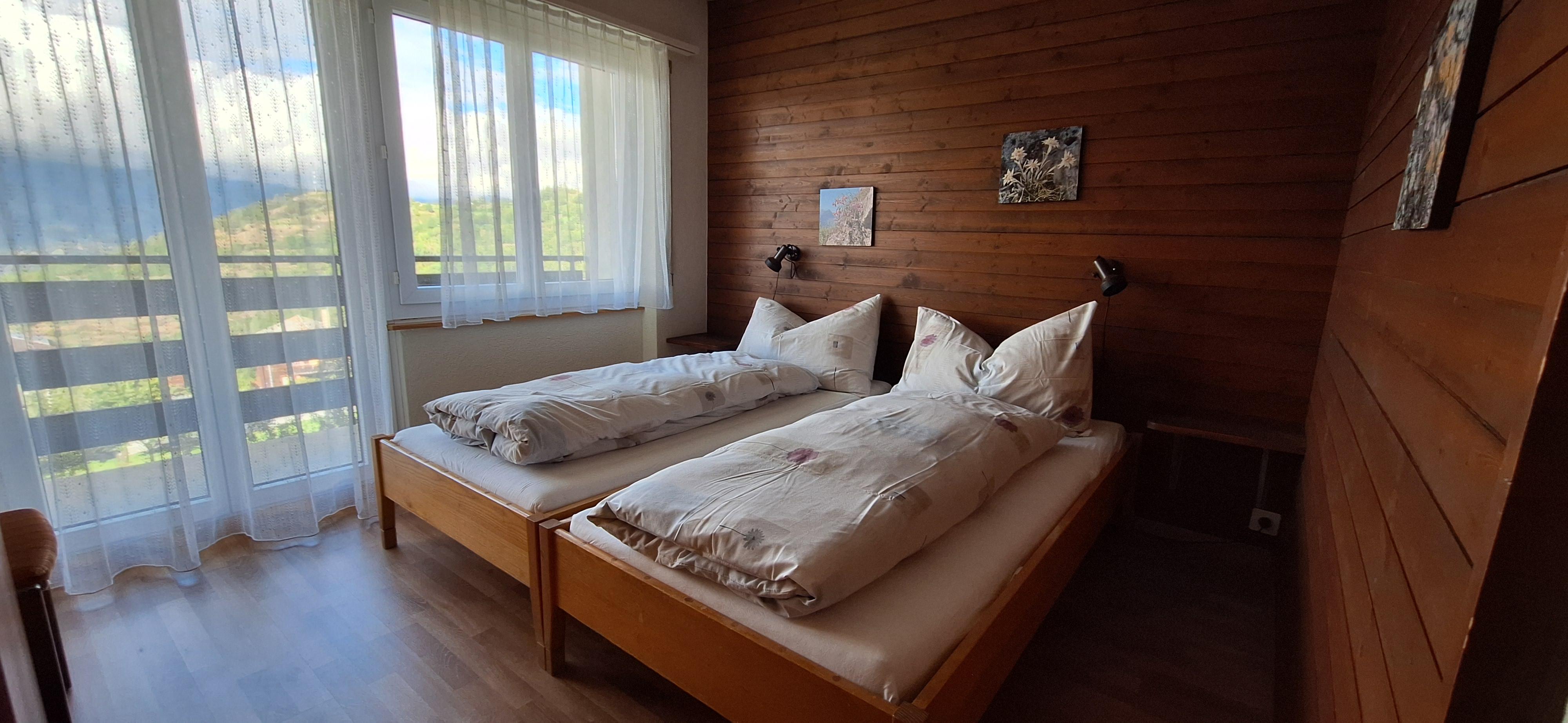 Grösse: 75 m², 2 Schlafzimmer, 1 Dusche/WC und 1 Zusatz-WC, 2 Klappbetten im Wohnzimmer