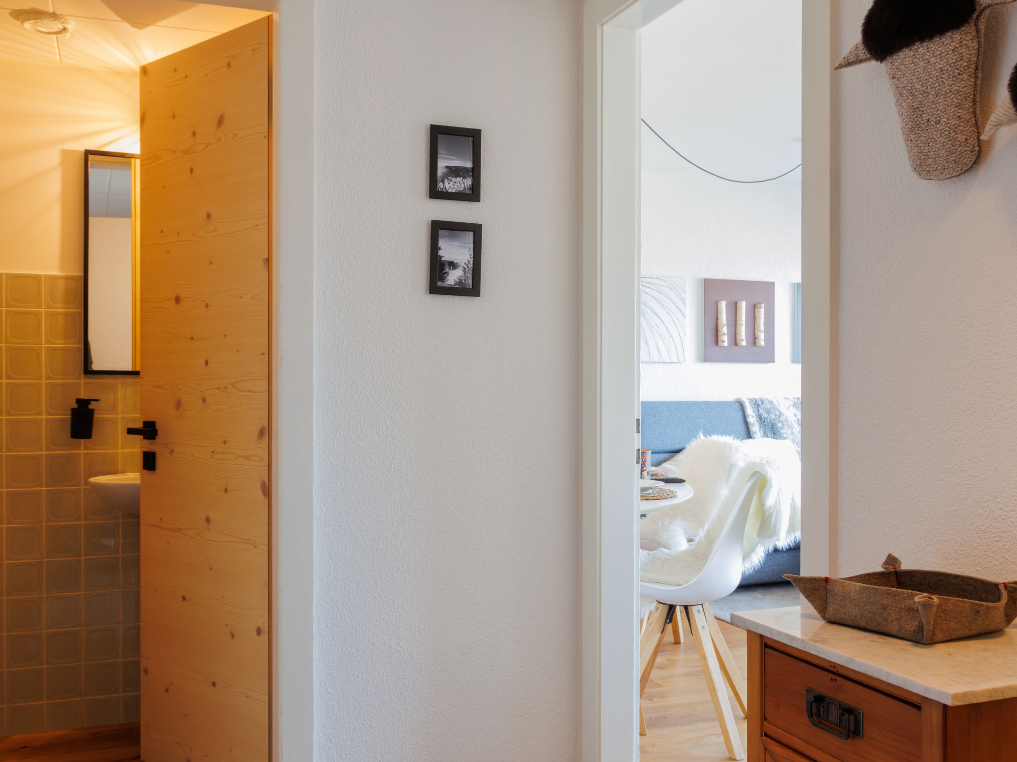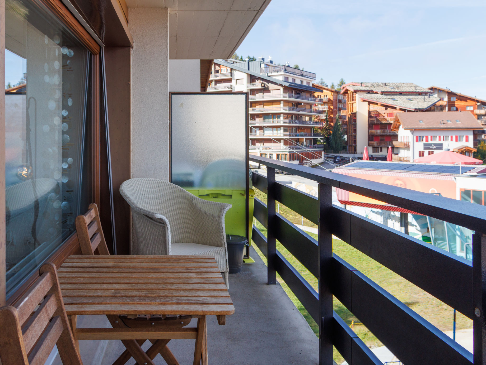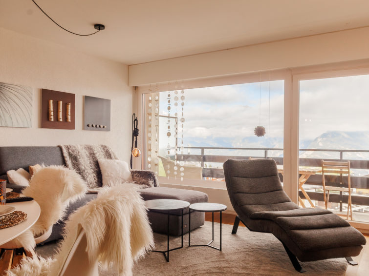 "Olympic FE6", 2-Zimmer-Wohnung im 6. Stock. Komfortabel und gemütlich eingerichtet: Wohn-/Esszimmer mit 1 Diwanbett (145 cm, Länge 200 cm), Kabel-TV. Ausgang zum Balkon. 1 Zimmer mit 1 Doppelbett (2 x 80 cm, Länge 200 cm). Ausgang zum Balkon. Küche (Backofen, Geschirrspüler, 4 Glaskeramikplatten, Wasserkocher, elektrische Kaffeemaschine, Kapseln für die Kaffeemaschine (Nespresso), Racletteofen, Fondue Set (Chinoise, Käse)). Bad, sep. WC. Balkon, Nordlage. Balkonmöbel. Sehr schöne, auf die Berge. Zur Verfügung: Haartrockner. Internet (WLAN). Bitte beachten: Nichtraucher-Unterkunft. Anstelle eines abgeschlossenen Schlafzimmers befinden sich manche Schlafplätze in einem offenen Bereich (Galerie, Nische etc.).
