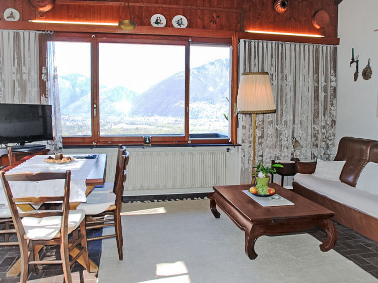 "App. 2", 3-Zimmer-Wohnung 90 m2 im 1. Stock. Geräumig und hell, komfortabel und gemütlich eingerichtet: Wohn-/Esszimmer mit Sat-TV, Flachbildschirm und Radio. Ausgang zur Terrasse, zum Gartensitzplatz. 1 Doppelzimmer mit 1 Doppelbett (2 x 90 cm, Länge 200 cm). 1 Zimmer mit 1 Doppelbett (2 x 90 cm, Länge 200 cm). Küche (3 Kochplatten, Backofen, elektrische Kaffeemaschine). Ausgang zur Terrasse. Bad/WC. Ölheizung. 2 Terrassen teilweise überdacht. Terrassenmöbel, Gartengrill, Liegestühle (4), Sitzplatz. Herrliche Panoramasicht auf den See, die Berge und die Landschaft. Zur Verfügung: Kinderhochstuhl, Babybett bis 2 Jahre, Haartrockner. Internet (Wireless LAN, gratis). Parkplatz (extra, überdacht). Geeignet für Familien. NL-00004643