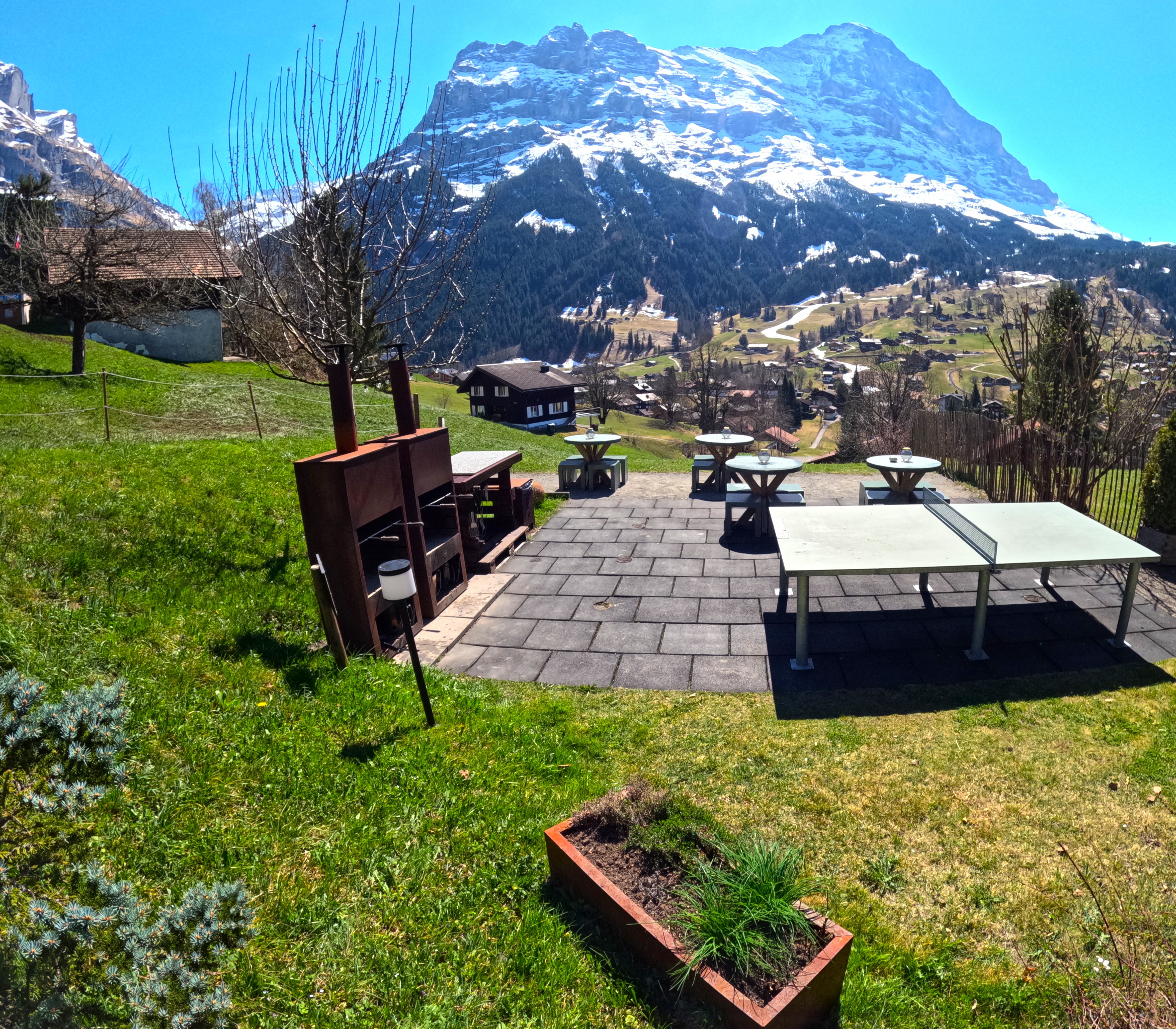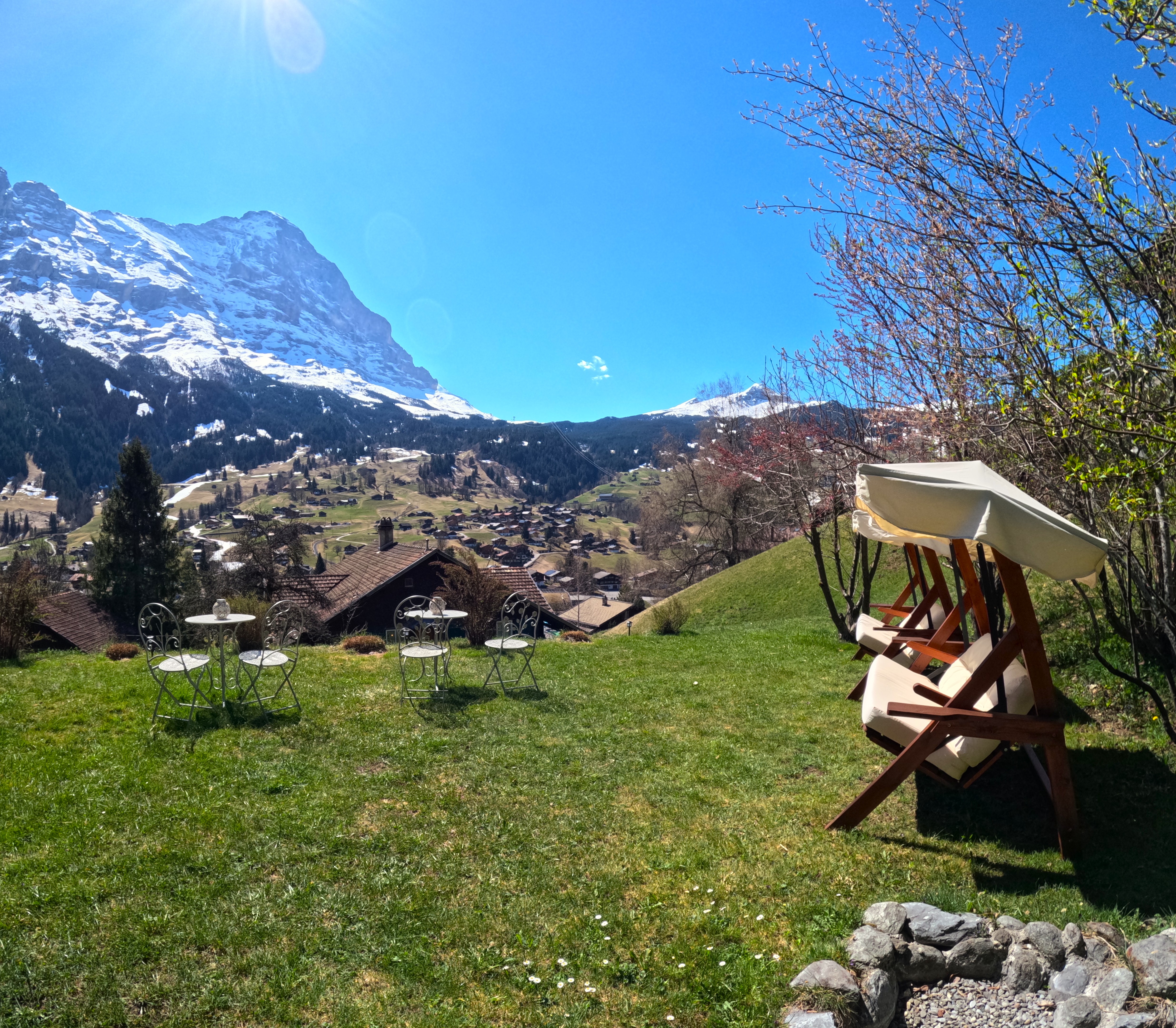 Gepflegtes Nichtraucher Bed & Breakfast ***Hotel im Chaletstil, welches von der Besitzerfamilie persönlich geführt wird. Zentral gelegen nur 400m vom Bahnhof, Hauptbusterminal, Einkaufszentrum und Sportzentrum entfernt. Unsere Südzimmer, DZ Enzian, DZ Edelweiss, die Juniorsuite Eiger und das Appartement Nordwand, verfügen alle über einen atemberaubenden Blick auf die Eigernordwand und das Tal von Grindelwald. Am Morgen verwöhnen wir sie von 7:30 - 10:00 Uhr mit einem reichhaltigen Frühstückbuffet mit lokalen Köstlichkeiten. Eine gemütliche Lounge mit Selbstbedienungskühlschrank, WLAN, Outdoor-Küche mit Mikrowelle, eigener Parkplatz, Outdoor Tischtennistisch, Sauna , Fitnessraum und indoor Tischtennistisch, Garten mit Liegewiese und der gratis Eintritt mit unserer Gästekarte im Hallenbad des Sportzentrum Grindelwald runden das Angebot ab.