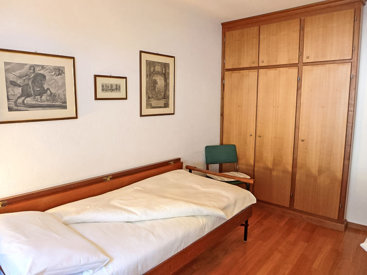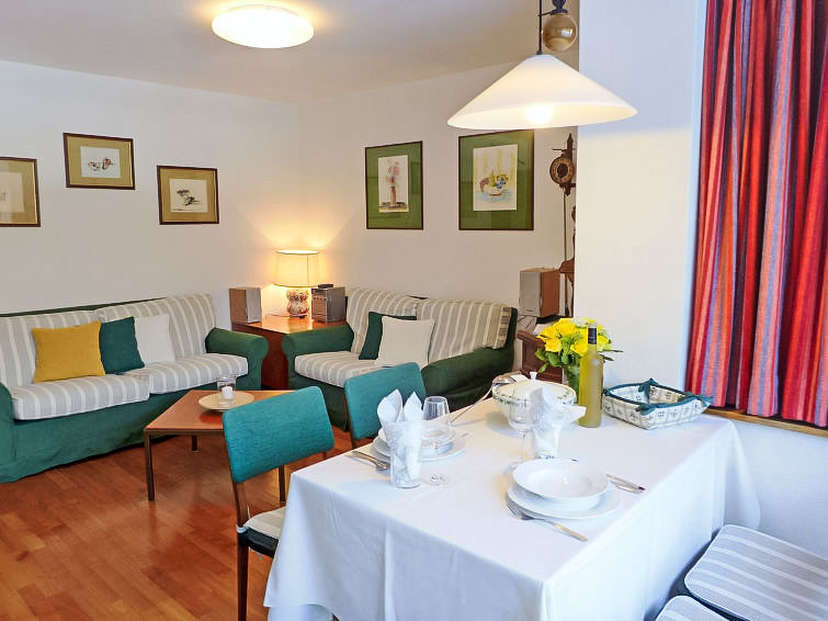 "Chesa Arlas A1", 3-Zimmer-Wohnung 70 m2 im 1. Stock. Zweckmässig und gemütlich eingerichtet: Wohn-/Esszimmer mit TV (Flachbildschirm), Stereoanlage. Ausgang zum Balkon. 1 Zimmer, Fenster zum Hof mit 1 Doppelbett (2 x 90 cm, Länge 200 cm). 1 Zimmer, Fenster zum Hof mit 2 Betten (90 cm, Länge 200 cm). Kleine Küche (Backofen, Geschirrspüler, 4 Glaskeramikplatten, Toaster, Wasserkocher, elektrische Kaffeemaschine, Kapseln für die Kaffeemaschine (Nespresso) extra). Bad/WC. Heizung. Parkettboden. Balkonmöbel (2). Sehr schöne Panoramasicht auf die Berge und die Landschaft. Zur Verfügung: Bügeleisen, Haartrockner. Internet (Wireless LAN, gratis). Garage Nr. A1 auf dem Grundstück, Höhe 190 cm, Breite 210 cm. Bitte beachten: geeignet für Familien. Nichtraucher-Unterkunft, Parkplatz nur für kleine Wagen. Maximal 1 kleines Haustier/Hund erlaubt.
