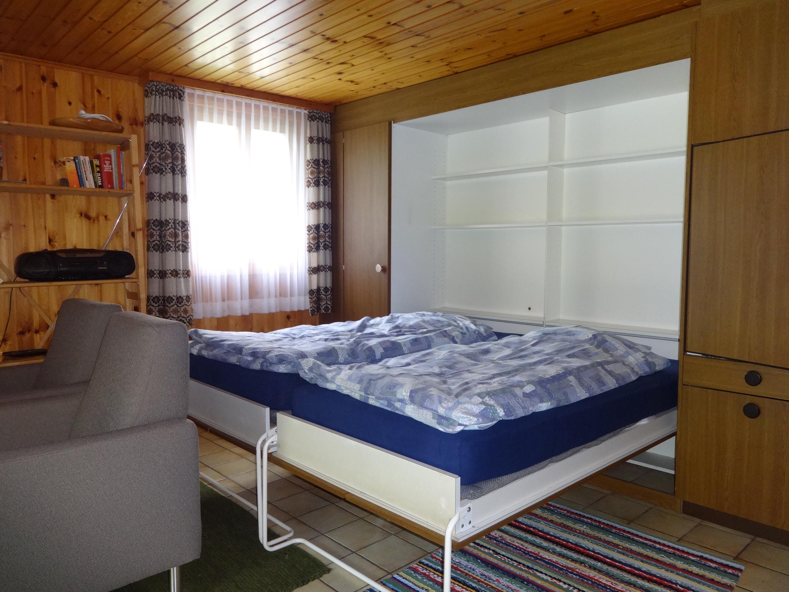 Das Chalet Holderna ist ein umgebautes landwirtschaftliches Gebäude. Untergeschoss: Mauer, Obergeschoss: Holz, Blockbau.
