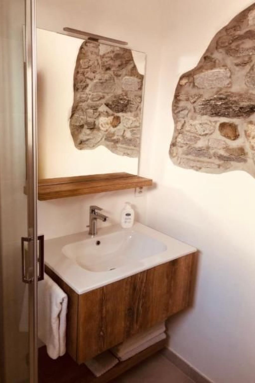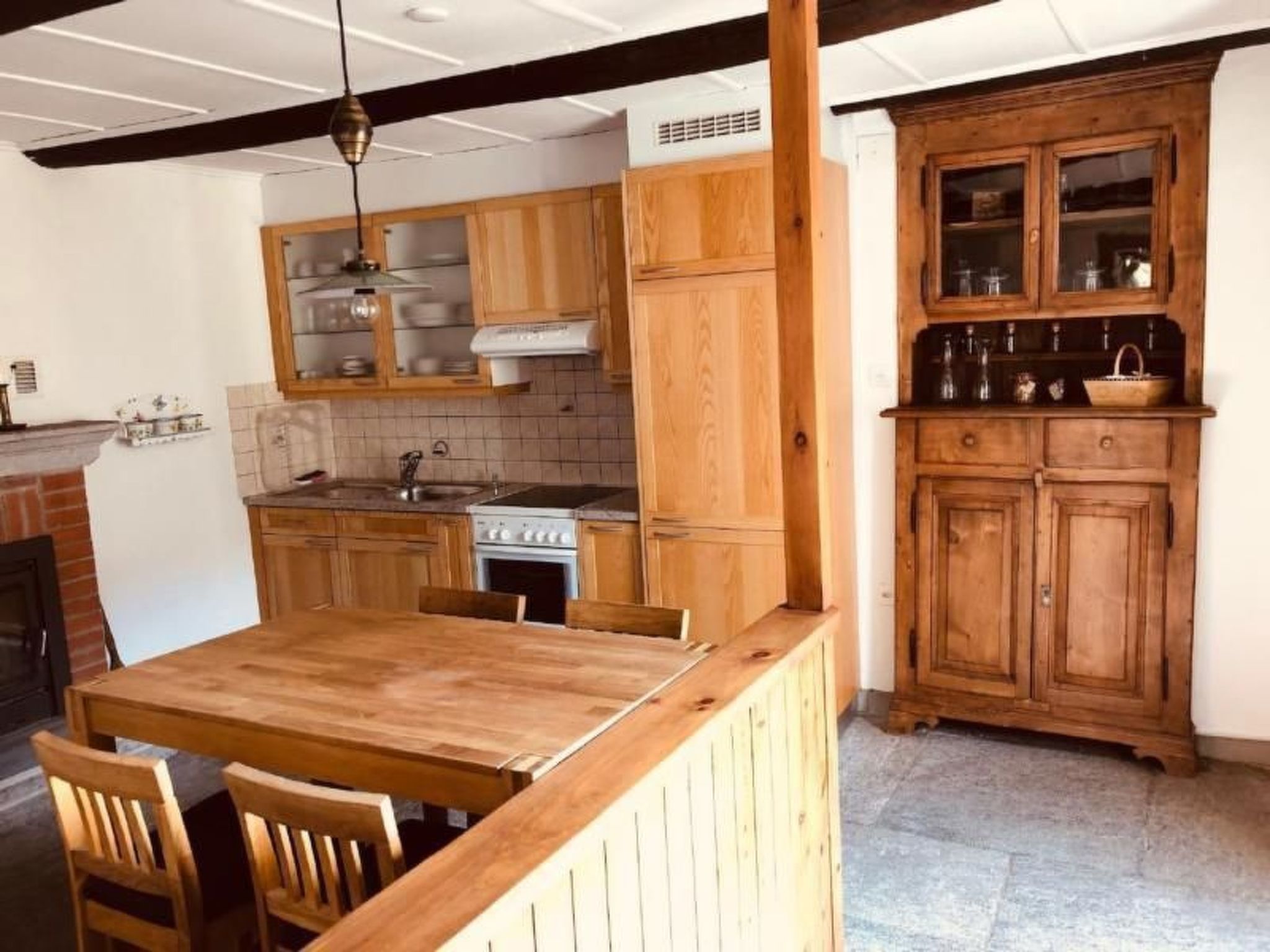 Das Innere des Hauses verfügt über eine Wohnküche, die mit allen modernen Annehmlichkeiten ausgestattet ist, darunter ein Kühl-/Gefrierschrank, ein Heißluftofen, ein Elektroherd und andere kleine Geräte, die für das tägliche Leben unerlässlich sind, wie eine Schneidemaschine, eine Kaffeemaschine, ein Wasserkocher und ein Toaster, die alle durch einen traditionellen Holzkamin ergänzt werden. Das liebevoll eingerichtete Wohnzimmer bietet ein gemütliches Sofa, einen Fernseher und einen Pelletofen, der zu entspannten Abenden einlädt. Das kürzlich renovierte Badezimmer ist mit allen notwendigen Annehmlichkeiten ausgestattet, darunter eine große Dusche. Drei geräumige Schlafzimmer bieten Platz für bis zu sechs Personen und ein kleines Kind und bieten somit Platz und Komfort für die ganze Familie.