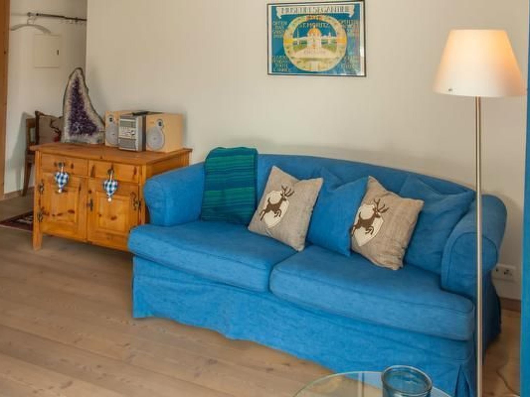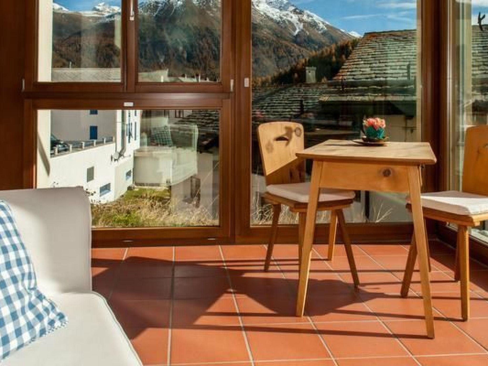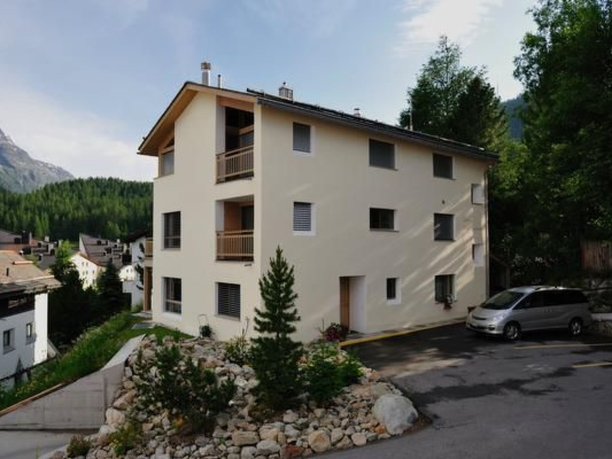 Gemütliche und helle 2-Zimmer-Wohnung (50m2) in einem Vierfamilienhaus an ruhiger und sonniger Lage im Zentrum von Celerina. Die Wohnung bietet Wohn-/Esszimmer mit offener Küche (Backofen, Glaskeramikherd, Geschirrspülmaschine, Kühlschrank, NESPRESSO Kaffeemaschine und ein Putzschrank mit Staubsauger) und einen ungeheitzten Wintergarten (12m2), welcher sich bei Sonnenschein wunderbar aufwärmt und im Sommer als zusätzlicher Wohnraum dient. Schlafzimmer mit Doppelbett (zwei Matratzen je 80cm x 200cm). Bad/Dusche, WC (Fön). Im Eingangsbereich befindet sich eine offene Garderobe. Die Wohnung ist mit Parkettboden versehen. Radio mit CD-Player sowie Swisscom-TV. Wi-Fi steht Ihnen kostenlos zur Verfügung. Garagenplatz in der Tiefgarage. Die Wohnung verfügt über einen separaten Eingang. Grosser Ski- und Bikeraum. Die Wohnung befindet sich in der Nähe der Bergbahnen (7 Minuten zu Fuss), Busstation (2 Minuten zu Fuss), Bahnhof (5 Minuten zu Fuss) und Einkaufsmöglichkeiten (5-10 Minuten zu Fuss je nach Geschäft).