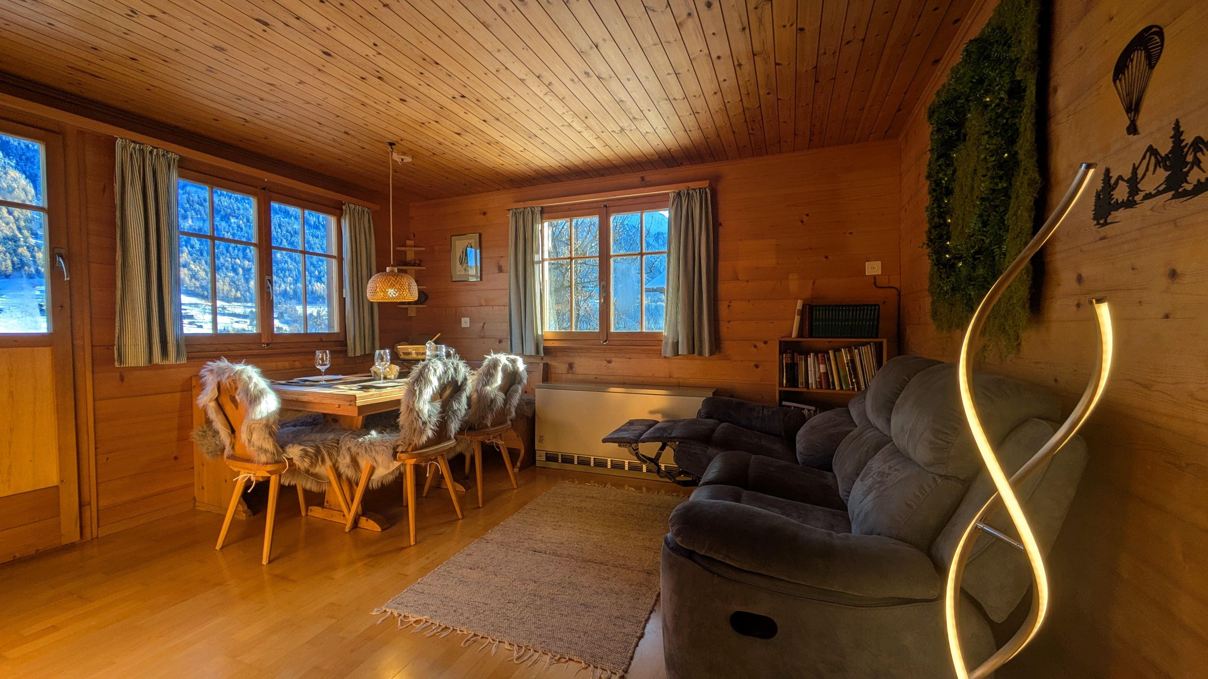 Das Chalet Ember liegt idyllisch am Waldrand in ruhiger Umgebung mit schönem Blick über das Tal. Besondere Entspannung bietet der Garten mit Sauna und Whirlpool – ideal zum Abschalten nach einem aktiven Tag. Vom Parkplatz aus erfolgt der Zugang über eine Treppe (78 Stufen). Trotz der naturnahen Lage erreichst du Einkaufsmöglichkeiten und den öffentlichen Verkehr bequem in etwa 10 bis 15 Gehminuten. Ob für sportliche Aktivitäten in den Bergen oder erholsame Tage in der Natur – das Chalet bietet dir die passende Basis für vielseitige Ferien in Fiesch.