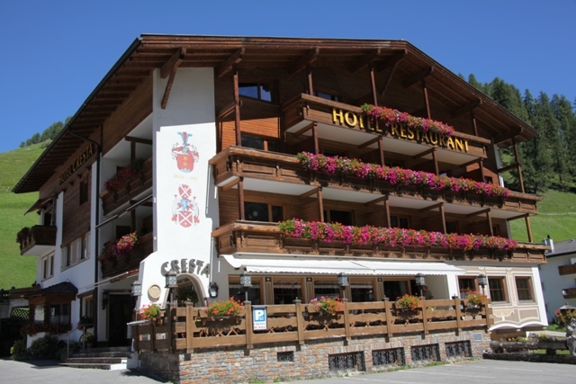Geniessen Sie Ihren Urlaub in unserem drei Sterne Hotel Cresta in Samnaun Laret in alpiner Umgebung. Unser Hotel Cresta befindet sich direkt an der Talabfahrt Alp Trida-Laret, Duty Free Run 60/61. Ortsbus direkt vom Hotel. (Bergstation Samnaun ist 5 Minuten enfternt). 150 Meter zum öffentlichen Alpenquell Erlebnisbad. Fühlen Sie sich wohl in unseren komfortablen Zimmern mit Dusche/Bad, WC, Telefon, Flachbild-TV, gratis Internet (WLAN), etc. Alle Bereiche sind Nichtraucherzonen! Zusätzlich Apartments mit/ohne Verpflegung buchbar (50 m, und 5 Gehminuten vom Hotel entfernt). Besonders hervorzuheben ist das Cresta wegen seinem hervorragenden Frühstücksbuffet und der ruhigen und doch zentralen Lage. Bei HP-Buchung geniessen sie das à la carte Wahlmenu im Almrausch-Erlebnisrestaurant (50m entfernt). Dort wählen sie 3 Gänge aus etlichen Gerichten. "Heisser Stein", Pizza, Pasta, regionale und internationale Hauptgerichte und vieles mehr... stehen zur Auswahl. Wir freuen uns auf Sie! Fam. Brigger www.hotelcresta.com/