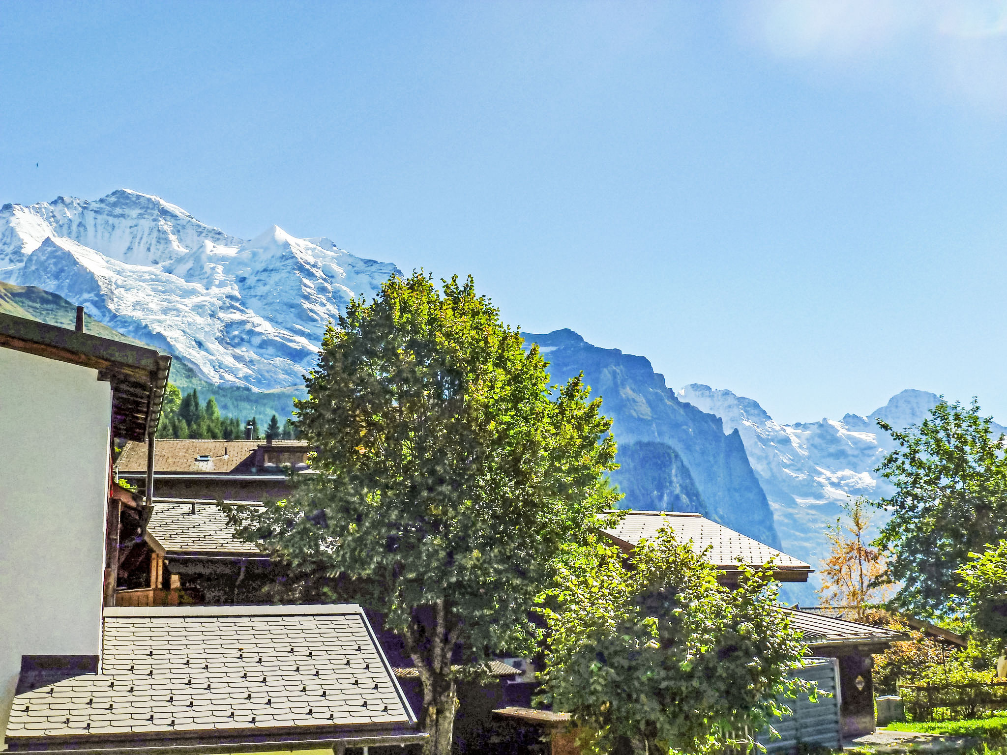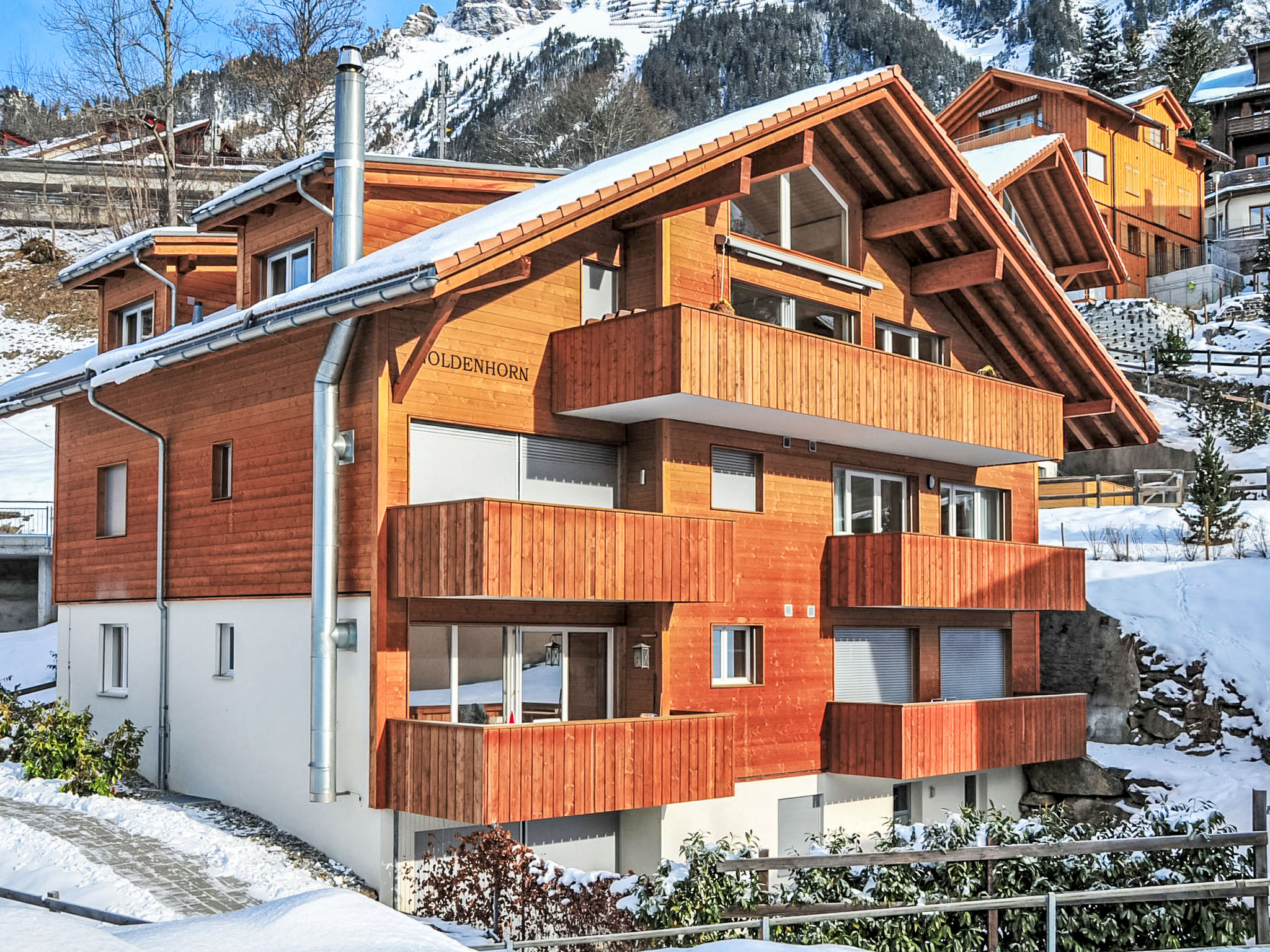 Modernes Appartementhaus "Goldenhorn", Baujahr 2003. Unterhalb von Zentrum Wengen, im Ortsteil Am Acher, ruhige Lage am Hang. Im Hause: Zentralheizung. Einkaufsservice vor Anreise möglich. Einkaufsgeschäft 300 m, Supermarkt 250 m, Restaurant 60 m, Bar, Bäckerei 300 m, Zentrum zu Fuss in 5 Minuten erreichbar, Bushaltestelle "Lauterbrunnen (by train)" 3.3 km, Bahnstation "Wengen" 300 m, Freibad 600 m. Luftseilbahn, Bergeisenbahn, Skisportanlagen 300 m. Bekannte Seen in der Umgebung sind gut erreichbar: Thunersee 13 km, Brienzersee 13 km. Bitte beachten: autofreie Ferienanlage. Die Anreise erfolgt mit der Bergbahn. Anreise ist nur mit dem Zug ab Lauterbrunnen möglich – 14 Min. Fahrzeit.