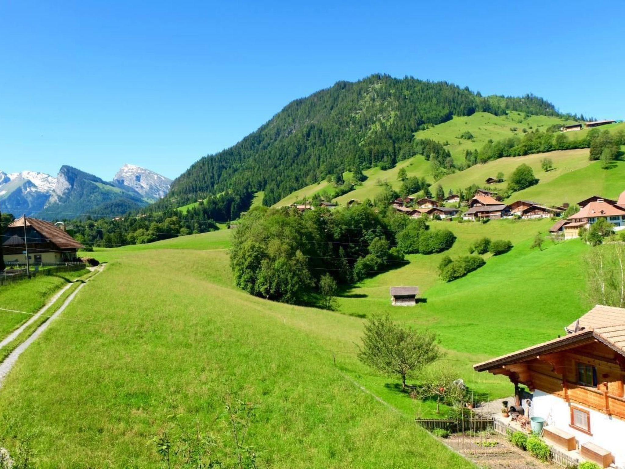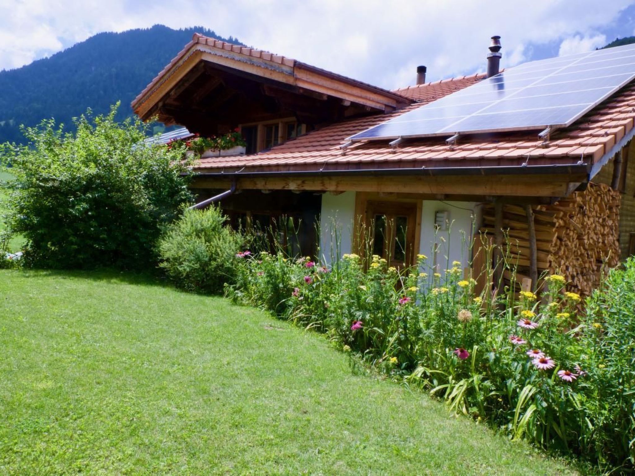 Die sonnige 4 1/2-Zimmer Ferienwohnung für 2-5 Personen befindet sich im Erdgeschoss unseres Chalet mit einer wunderbaren Aussicht auf das Diemtigtal, die Niesen-Bergkette und das Dorf Diemtigen. Sie wurde 2018 teilweise renoviert und bietet mit 3 Schlafzimmern, einem grosszügigen Wohn- und Essbereich mit Schwedenofen, einer modern eingerichteten Küche mit Abwaschmaschine, Backofen und Kühlschrank, einem grosses Badezimmer mit Badewanne/Dusche, zwei Balkonen und einer Terrase , kostenlosem WLAN und einer Waschmaschine in der Wohnung allen Komfort und viel Platz.. Es steht ein kostenloser Parkplatz für 1 Auto zur Verfügung. Die Wohnung ist auch sehr gut mit öffentlichen Verkehrsmitteln erreichbar (Postautohaltestelle 100m) und eignet sich sowohl als Ausgangspunkt für verschiedene Aktivitäten im Naturpark Diemtigtal und im Berner Oberland während des ganzen Jahres als auch zum Entspannen.