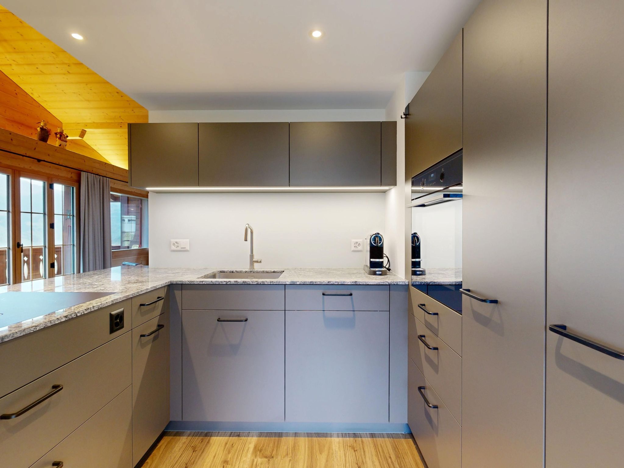 Die Innenausstattung unserer Ferienwohnung lässt keine Wünsche offen. Von der Fußbodenheizung, die in kühleren Monaten für gemütliches Ambiente sorgt, bis hin zum Smart-TV für unterhaltsame Abende – hier finden Sie alles, was Ihr Herz begehrt. Die moderne Küche ist mit einem Induktionsherd, einer Kapsel-Kaffeemaschine und einer Spülmaschine optimal für Selbstversorger ausgestattet. Obwohl keine Klimaanlage vorhanden ist, sorgt die natürliche Kühle der Berge für ein angenehmes Raumklima. Eine Waschmaschine und ein Wäschetrockner stehen zur gemeinschaftlichen Nutzung bereit, was besonders bei längeren Aufenthalten praktisch ist.