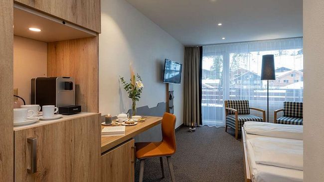 Das vielseitige Ferien- und Wellness-Hotel liegt ruhig und zentral an einmaliger Panoramalage mit freiem Ausblick auf die berühmte Eigernordwand, Wetterhorn und First. Der mit viel Holz ausgestattete Innenbereich und die grosszügige Lobby mit Cheminée vermitteln ein gemütliches Ambiente. Die grossen, komfortablen Zimmer sorgen mit hellen Holzmöbeln für beste Erholung. Je nach Kategorie verfügen sie über einen Balkon. Das Halbpensions-Restaurant Ambiance lädt mit romantischer Aussicht auf die Bergwelt zum Schlemmen ein. Geniesser werden ebenfalls im à-la-carte Restaurant "Adlerstube" rundum verwöhnt. Vielfältige Möglichkeiten zum Entspannen bietet die Wellness-Oase: Ob im grossen Schwimmbad, in der Blockhaussauna, in der Römischen Therme mit vier Klimazonen oder beim Erlebnisduschen. Wer Ferien im Gletscherdorf Grindelwald geniesst, kommt in den Genuss eines breiten Angebots.