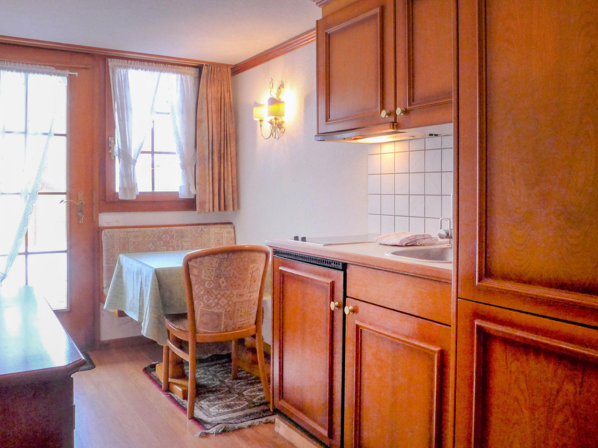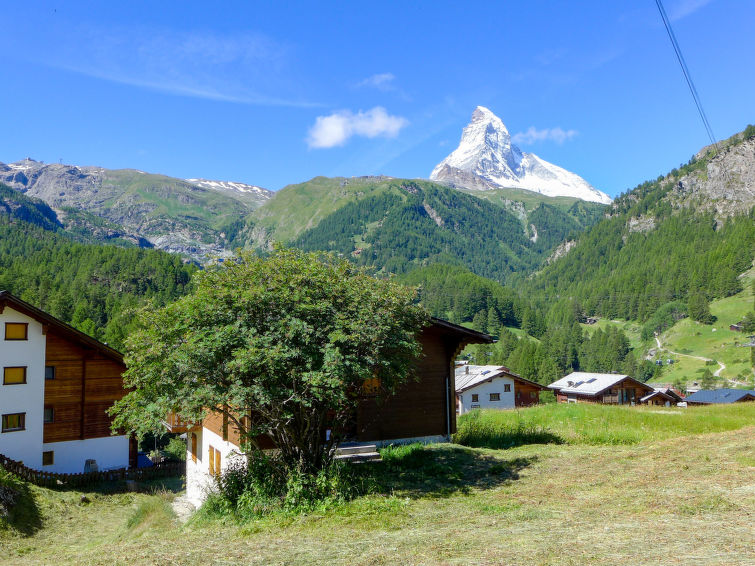 1-Zimmer-Wohnung 25 m2, im Erdgeschoss, Südlage. Einfach und zweckmässig eingerichtet: Wohn-/Schlafzimmer mit 2 Betten (90 cm, Länge 200 cm), TV. Ausgang zur Terrasse. Kleine Küche (2 Glaskeramikplatten, Toaster, Wasserkocher, Tiefkühler, elektrische Kaffeemaschine). Dusche/WC. Heizung. Kleine Terrasse, Südlage. Terrassenmöbel. Schöne Sicht auf das Matterhorn. Zur Verfügung: Haartrockner. Internet (Wireless LAN, gratis). Bitte beachten: Nichtraucher-Unterkunft. Kein Backofen in der Küche vorhanden.