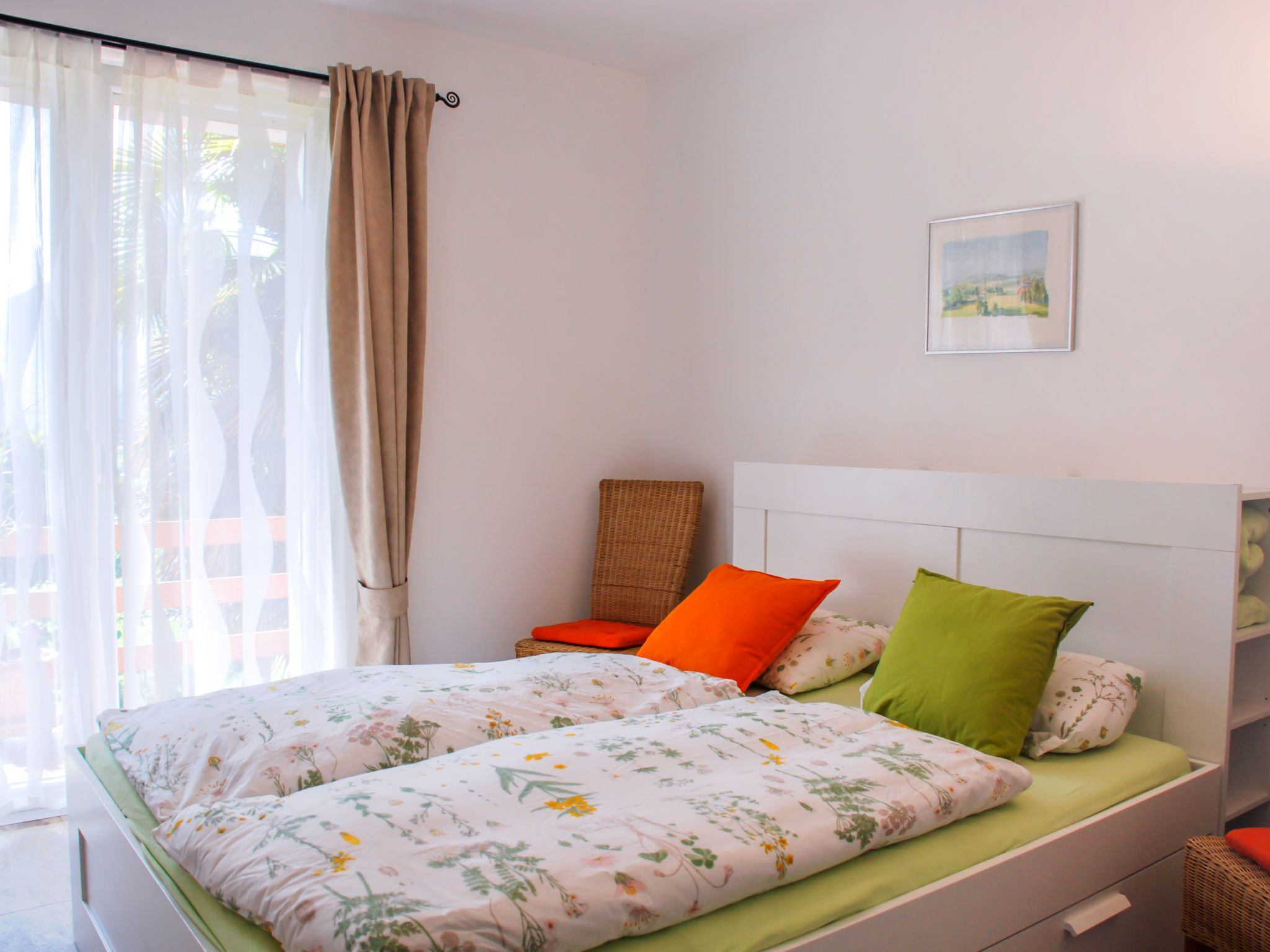 "Vista Valle", 4-Zimmer-Wohnung 100 m2, Südlage. Geräumig und hell, teilweise abgeschrägt, renoviert im Jahre 2018, komfortabel und gemütlich eingerichtet: offenes grosses Wohn-/Esszimmer mit Kabel-TV und Radio. 1 Doppelzimmer mit 1 Doppelbett (1 x 180 cm, Länge 200 cm). Ausgang zum Balkon. 1 Doppelzimmer mit 1 Doppelbett (1 x 160 cm, Länge 200 cm). Ausgang zum Balkon. Grosse Wohnküche (Backofen, Geschirrspüler, 4 Induktionskochplatten, Toaster, Wasserkocher, Tiefkühler, elektrische Kaffeemaschine, Kapseln für die Kaffeemaschine (Dolce Gusto) extra, Racletteofen, Fondue Set (Käse)) mit offenem Kamin und Esstisch. Bad/WC. Fussbodenheizung. Obergeschoss: 1 abgeschrägtes Zimmer mit 2 Betten (90 cm, Länge 200 cm). Südlage, grosse Terrasse teilweise überdacht. Terrassenmöbel, Gartengrill (mobil), Sitzplatz. Schöne Panoramasicht auf die Berge, das Tal, den Garten und die Landschaft. Zur Verfügung: Kinderhochstuhl, Babybett bis 2 Jahre (extra), Haartrockner. Internet (Wireless LAN, gratis). Bitte beachten: Nichtraucher-Unterkunft. Maximal 3 Haustiere/Hunde erlaubt. Feuerlöscher. NL-00004818