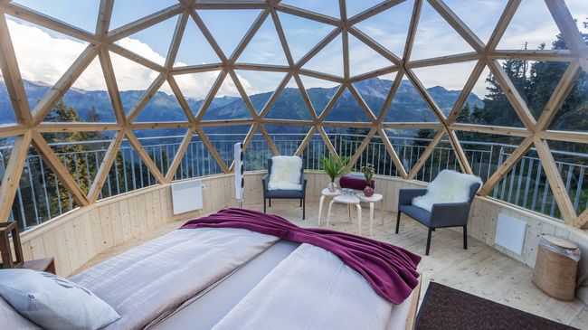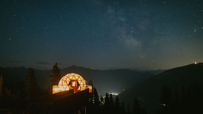 In einem kuschlig warmen Bett liegen auf fast 1‘900 m ü. M. und in den Sternenhimmel schauen, die Madrisa macht es möglich. In der gemütlich eingerichteten, vollverglasten Sternen-Suite können Sie die Natur von einer ganz neuen Perspektive erleben. Noch nie war eine Übernachtung im Freien so spektakulär und einfach zugleich.