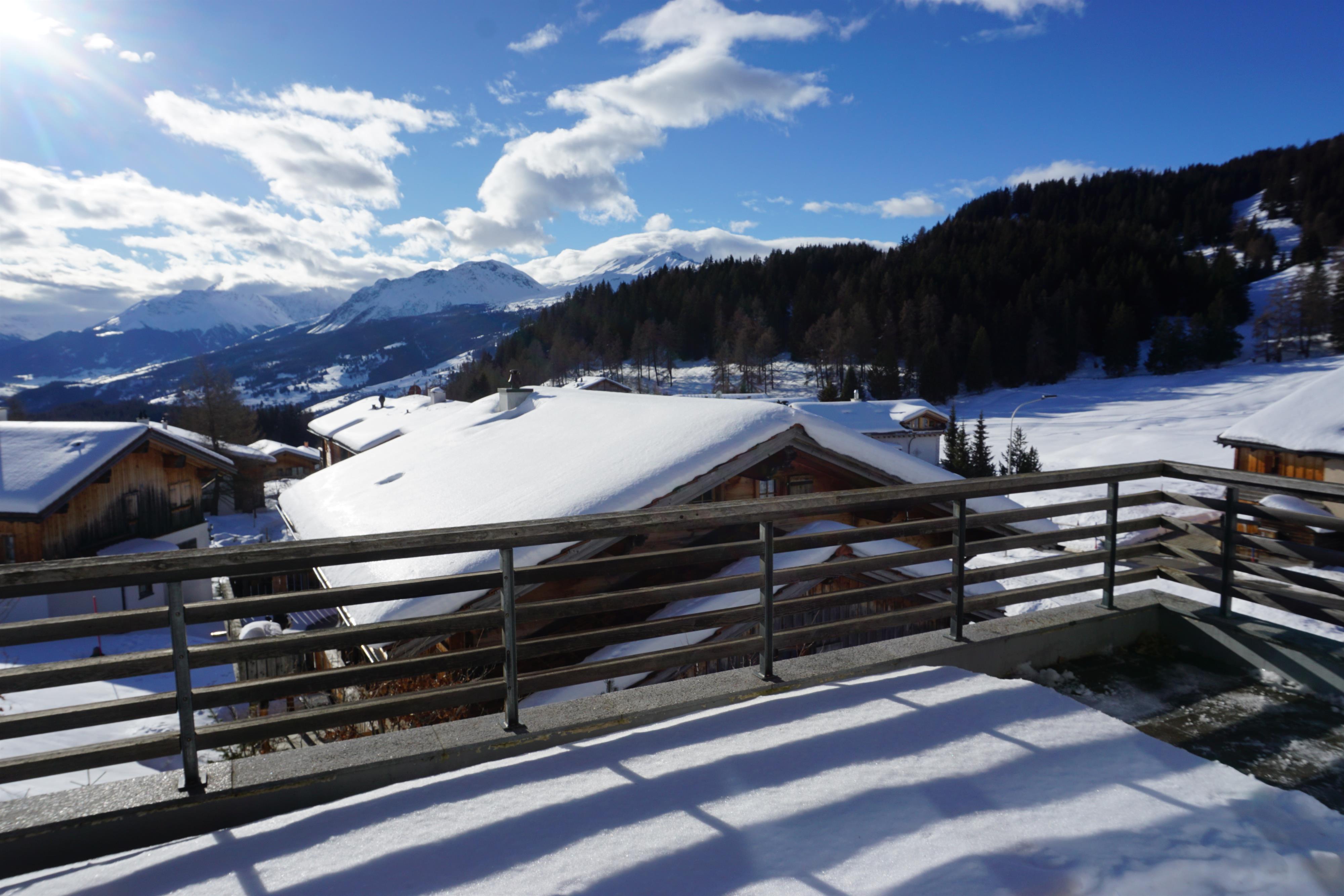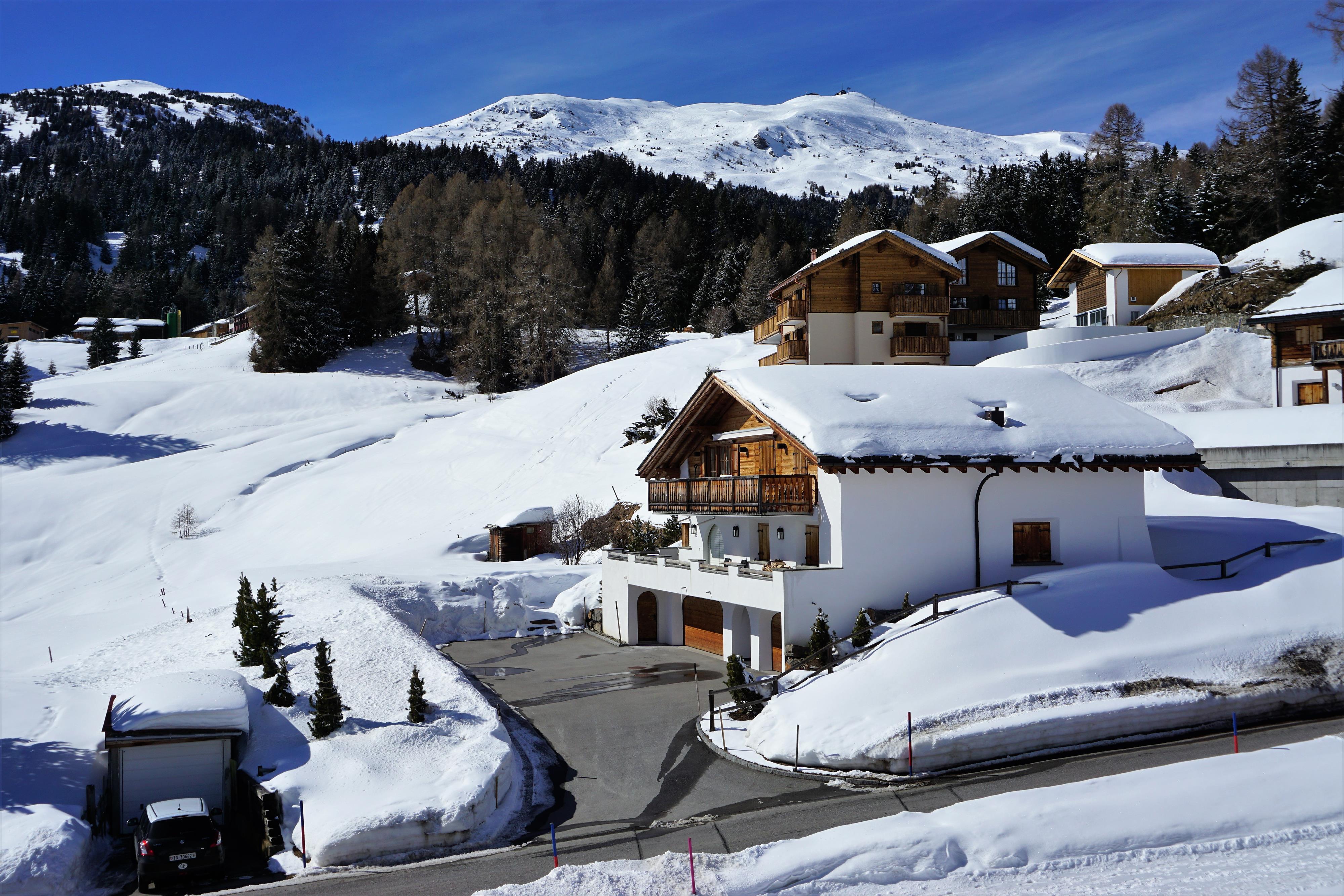 Die Wohnung befindet sich im Parterre in einem freistehenden Zweifamilienhaus im Maiensäss Sporz. Das Haus liegt an ruhiger, idyllischer Lage, ist nach Süden gerichtet und bietet eine wunderschöne Aussicht Richtung Ela-Park und Savognin. Im Sommer bietet die grosse Veranda die Möglichkeit, Gartengrill und Esstisch zu nutzen.