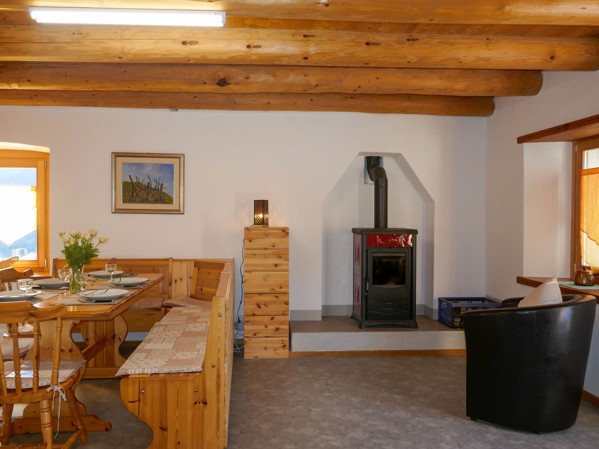 "Rustico Orsaira", 3-Zimmer-Haus 128 m2. Teilweise abgeschrägt, teilweise renoviert im Jahre 2023, komfortabel und rustikal eingerichtet: offenes Esszimmer mit Schwedenofen und Essecke. Offenes Wohnzimmer mit Digital-TV, Flachbildschirm und Stereoanlage. Offene Küche (Backofen, 4 Glaskeramikplatten, Toaster, Wasserkocher, Mikrowelle, Tiefkühler, elektrische Kaffeemaschine, Kapseln für die Kaffeemaschine (Dolce gusto) extra, Racletteofen, Fondue Set (Käse)). Dusche/WC. E-Heizung, Holzheizung. Obergeschoss: 1 abgeschrägtes Doppelzimmer mit 1 Doppelbett (1 x 140 cm, Länge 200 cm). 1 abgeschrägtes Doppelzimmer mit 1 Diwanbett (110 cm, Länge 200 cm), 1 Doppelbett (1 x 160 cm, Länge 200 cm). Kleine Terrasse. Terrassenmöbel, Gartengrill (mobil), Liegestühle (2). Sehr schöne Sicht auf die Berge und die Landschaft. Zur Verfügung: Waschmaschine, Bügeleisen, Kinderhochstuhl, Babybett bis 2 Jahre (extra), Haartrockner. Internet (Wireless LAN, gratis). Bitte beachten: Nichtraucher-Haus. Maximal 1 Haustier/Hund erlaubt. NL-00007903