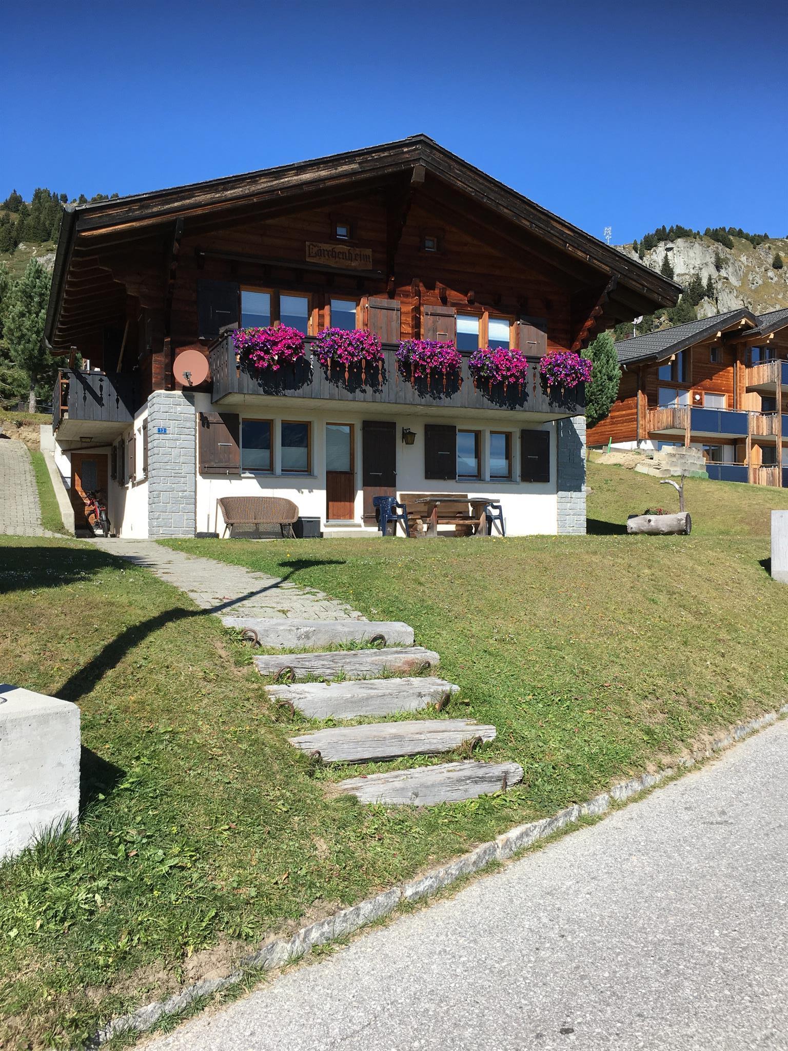 Das Chalet Lärchenheim bietet zwei Wohnungen, wovon diejenige im Erdgeschoss für Ferienaufenthalte gemietet werden kann. Das Chalet bietet eine unverbaubare Aussicht auf die gegenüberliegenden Berge der Walliser Alpen. Mit der Lage auf Riederalp West, zwischen der Kapelle und der Bergstation der Gondelbahn Riederalp West, ist der Gast bereits mitten im Ski- und Wandergebiet. Vom Chalet aus kann man im Winter quasi auf den Skiern zu den Bergbahnen Hohfluh oder Riederfurka gelangen. In den anderen Jahreszeiten führen die Wanderwege direkt vom Haus ins Aletschgebiet. Auch der 9 Loch – Golfplatz ist in unmittelbarer Nähe.