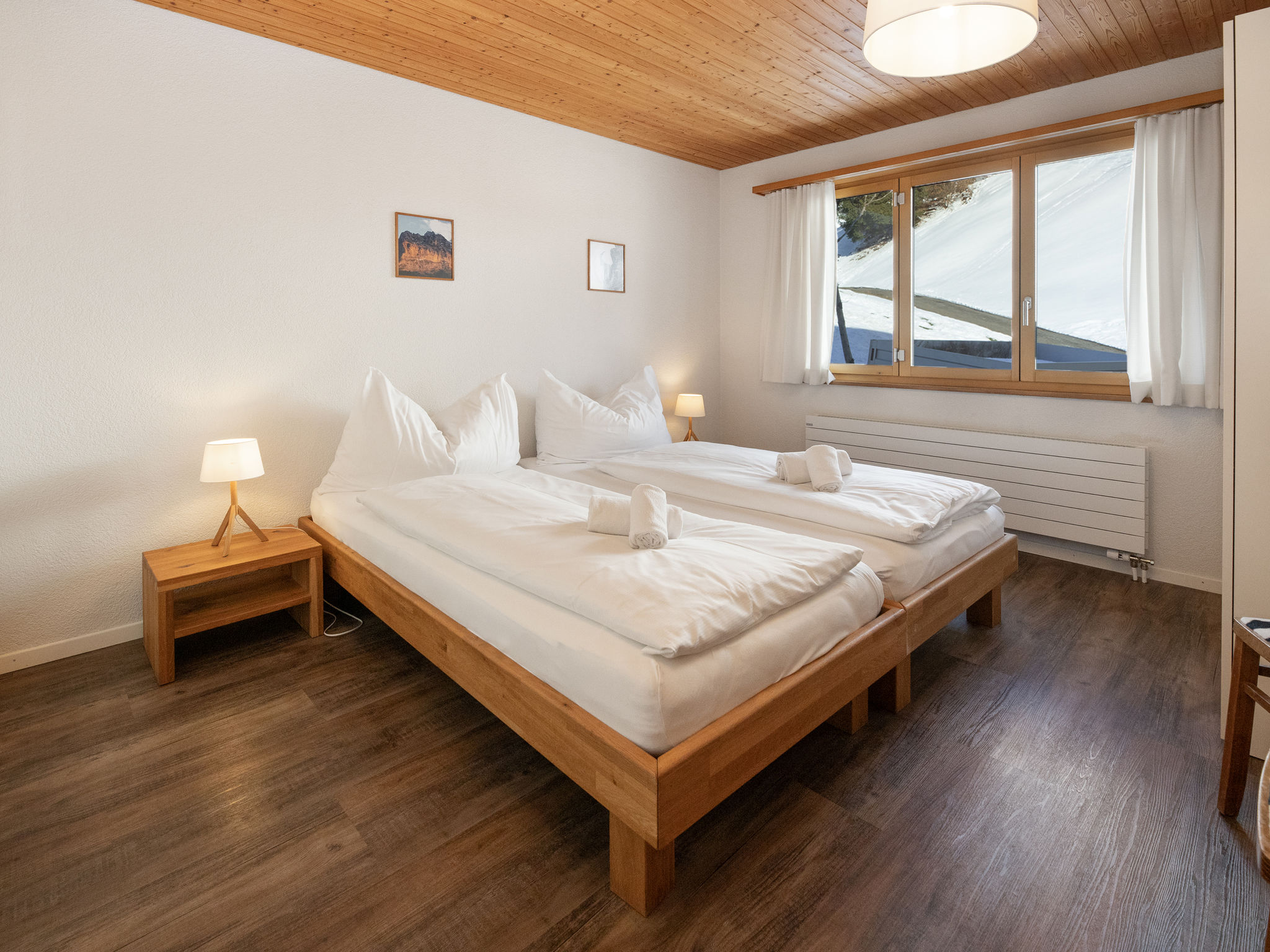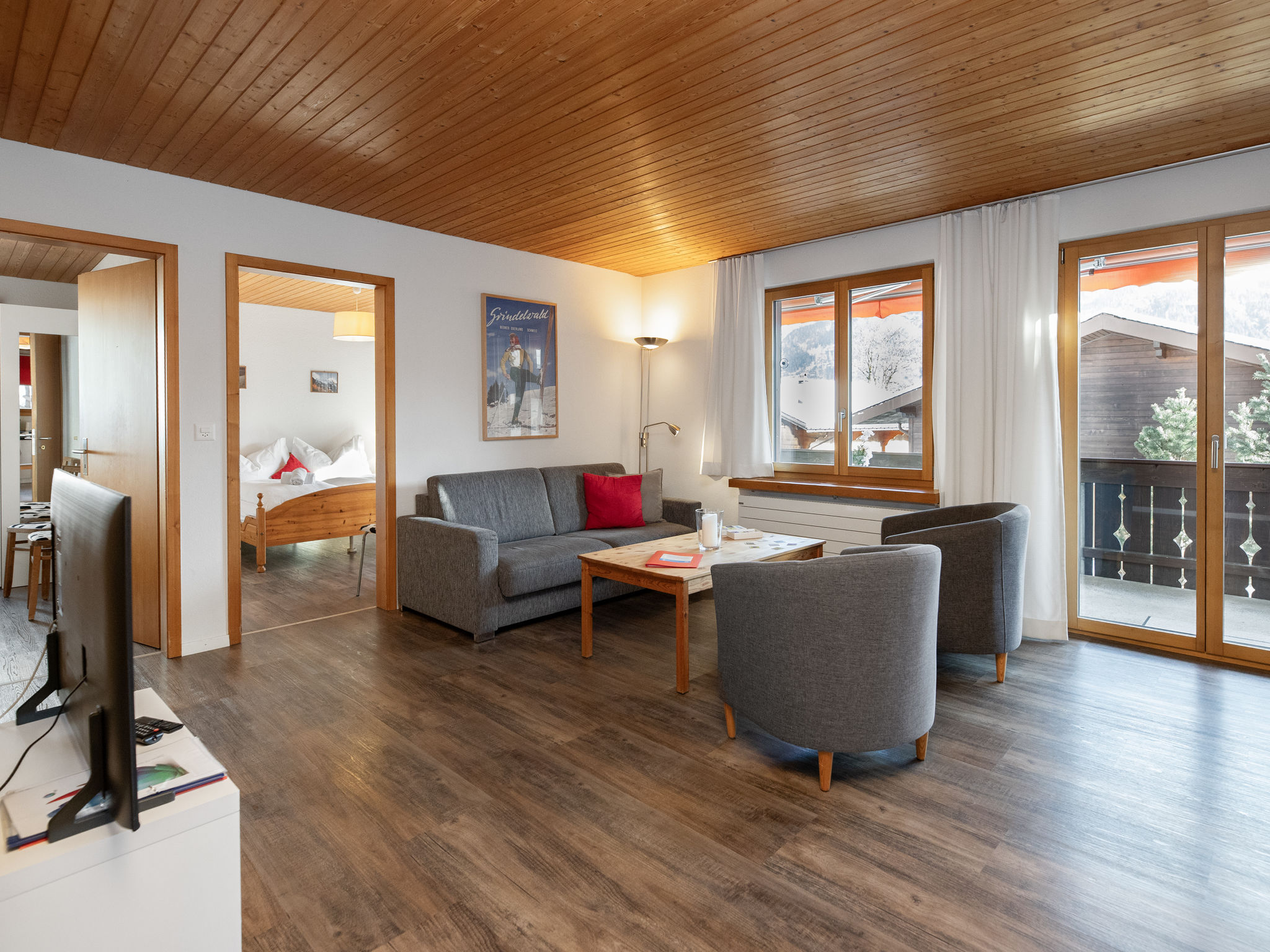 "Chalet Bienli Mitte", 3-Zimmer-Wohnung 80 m2, im erhöhten Erdgeschoss, Südlage. Geräumig und hell, teilweise renoviert im Jahre 2024, sehr komfortabel und gemütlich eingerichtet: offenes Wohn-/Esszimmer mit Essecke und Kabel-TV (Flachbildschirm), Radio. Ausgang zum Balkon, Richtung Süden. 1 Zimmer mit 1 Doppelbett (2 x 80 cm, Länge 200 cm). Ausgang zum Balkon, Richtung Süden. 1 Zimmer mit 2 Betten (90 cm, Länge 200 cm). Offene Küche (Backofen, Geschirrspüler, 4 Glaskeramikplatten, Toaster, Wasserkocher, Mikrowelle, elektrische Kaffeemaschine, Kapseln für die Kaffeemaschine (Nespresso) extra, Racletteofen, Fondue Set (Käse)). Bad/WC. Parkettboden. Balkon 18 m2, Südlage. Balkonmöbel. Herrliche Panoramasicht auf die Berge und Eigernordwand und Fiescherwand. Zur Verfügung: Kinderhochstuhl, Babybett (extra), Haartrockner. Internet (WLAN, gratis). Parkplatz (1 Auto) in 50 m. Bitte beachten: Nichtraucher-Unterkunft. Feuerlöscher. Bei Belegung mit weniger Personen als der maximalen Personenzahl stehen nicht alle Schlafzimmer zur Verfügung.
