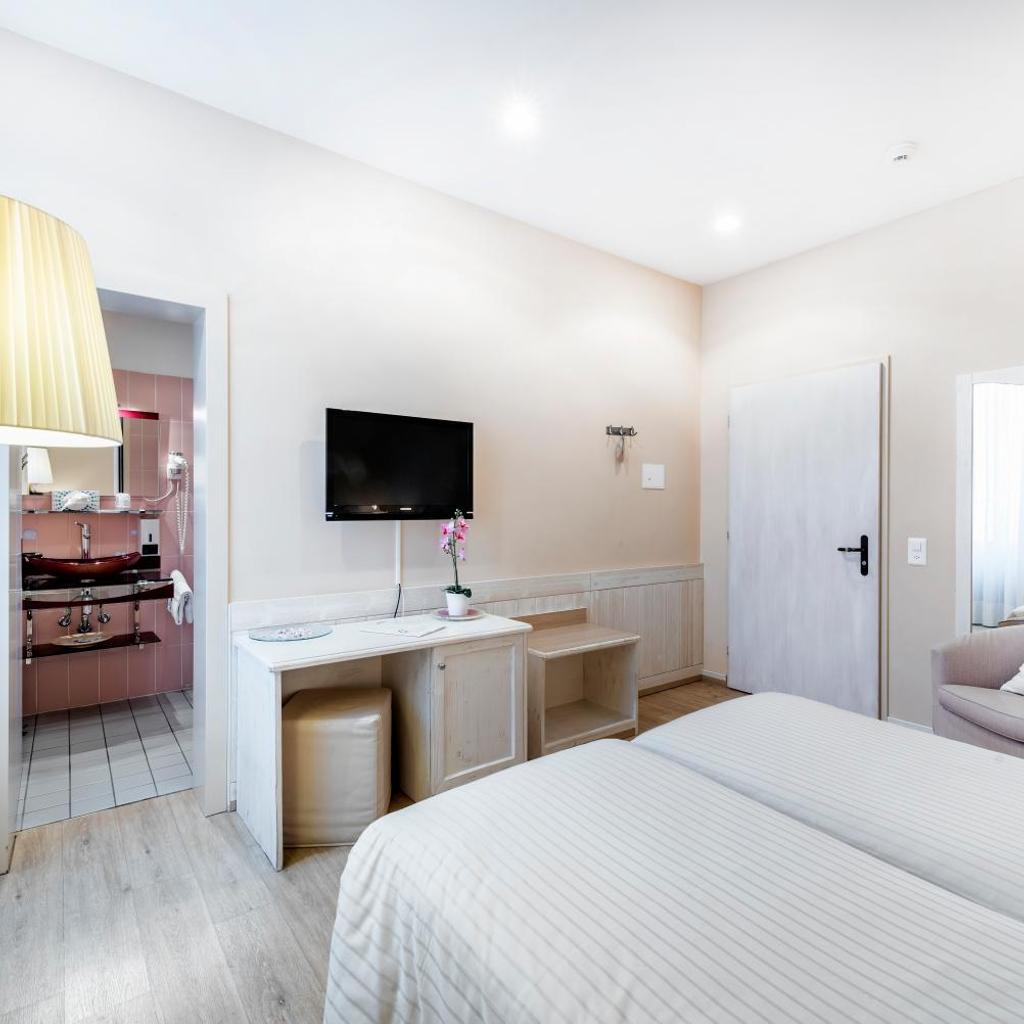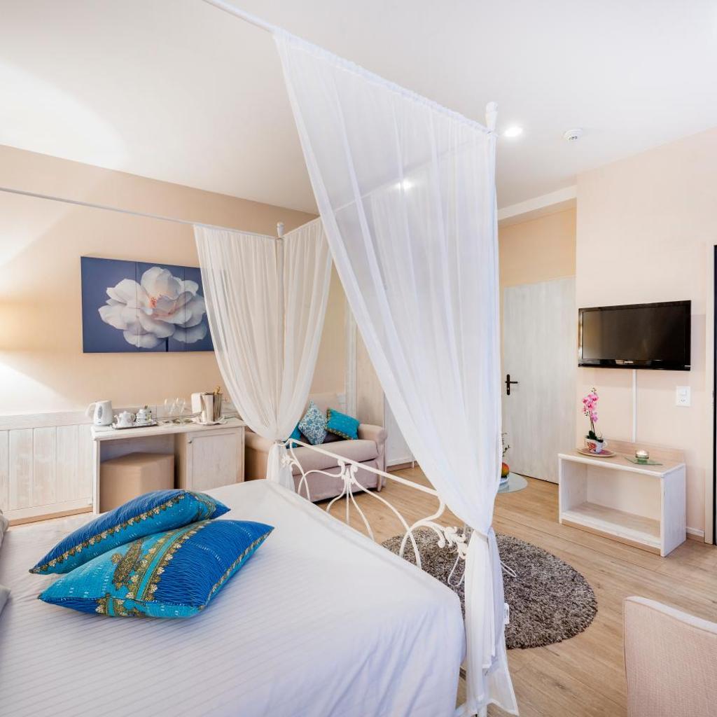 Die allergikerfreundlichen Zimmer sind in weichen Tönen gehalten und bieten einen malerischen Blick auf den See. Die Ausstattung beinhaltet eine Minibar und ein modernes Bad mit einer Dusche.