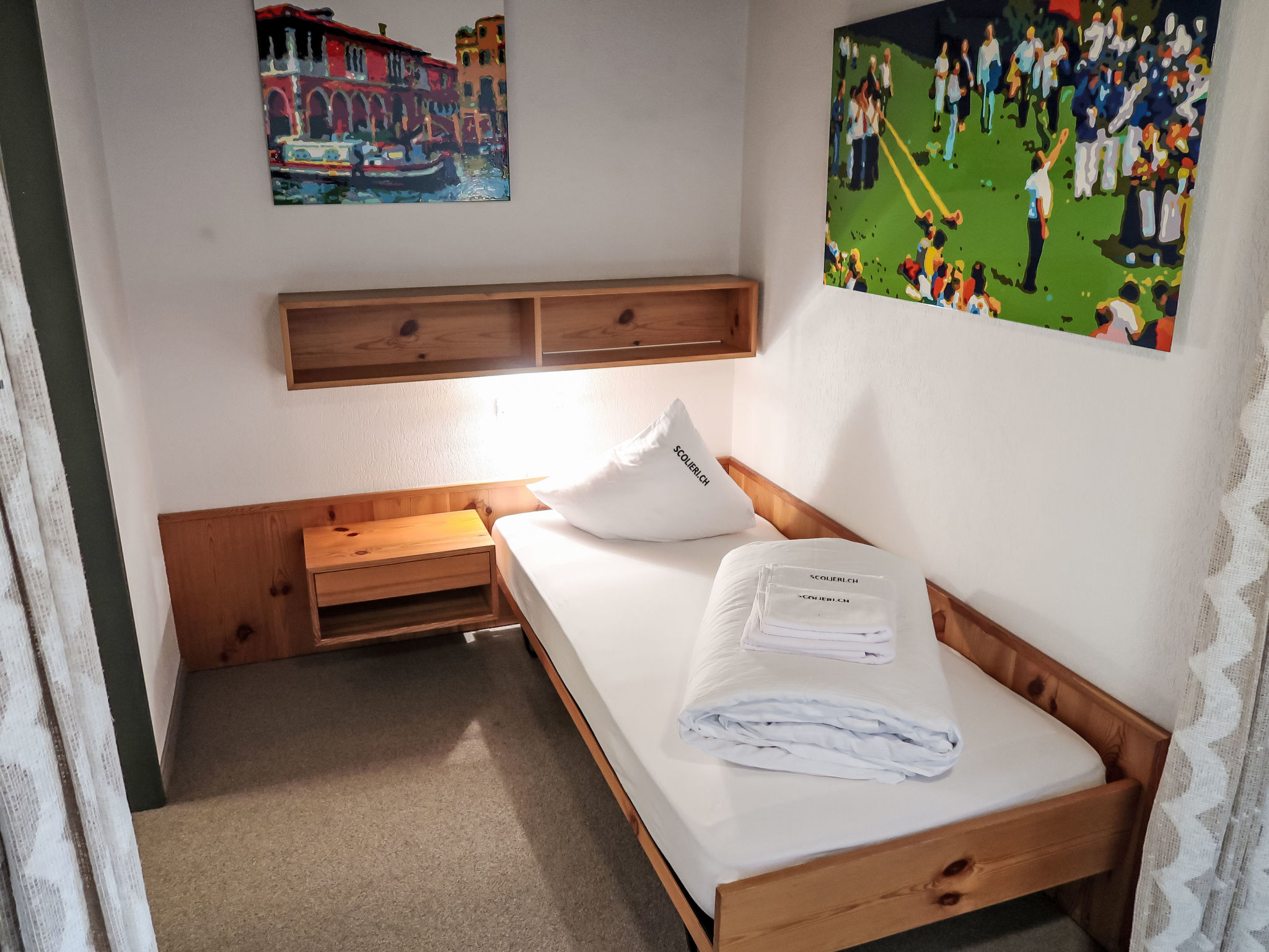 "Apt B 108", 3-Zimmer-Wohnung 90 m2 im 10. Stock. Einfach und zweckmässig eingerichtet: Wohn-/Esszimmer mit Sat-TV (Flachbildschirm), Radio. Ausgang zum Balkon. Schlafnische mit Vorhang mit 1 Bett. 2 Zimmer, jedes Zimmer mit 2 Betten. Kochnische im Eingang (3 Glaskeramikplatten, Mikrowelle). Bad/WC, sep. WC. Balkon, Südlage. Balkonmöbel. Schöne Sicht auf die Berge, die Landschaft und Medelsergletscher. Zur Verfügung: Internet (Wireless LAN, gratis). Bitte beachten: Nichtraucher-Unterkunft. Anstelle eines abgeschlossenen Schlafzimmers befinden sich manche Schlafplätze in einem offenen Bereich (Galerie, Nische etc.).