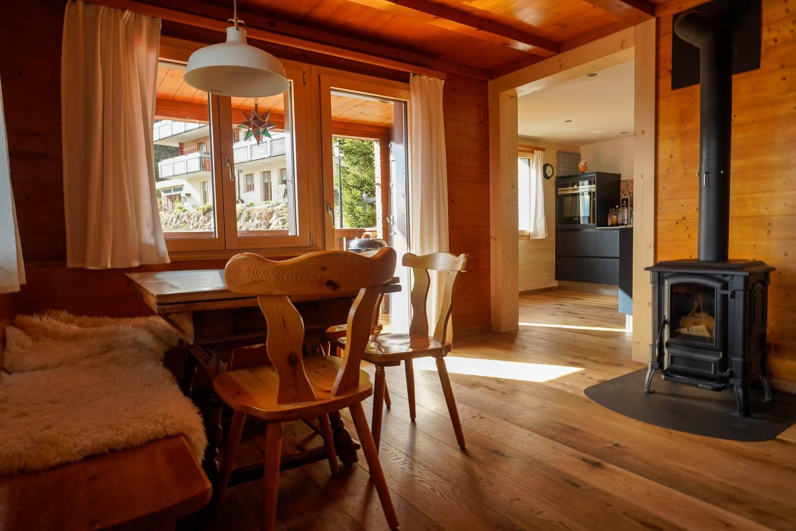 Etwa 10 Min. von der Bergstation der Luftseilbahn entfernt, ruhig gelegener, heimelig eingerichteter Holzbau, leicht erhöht an einem sonnigen Südhang. Mit einer Wohnung à 5 Betten. Teilrenovation 2018. Ideale Ausgangslage zum See 7 Min. Sport Zentrum mit Kinderhort, Skischule und Gondelbahn 3 Min. Gratis Eintritt Hallenbad gemäss Anzahl Betten.