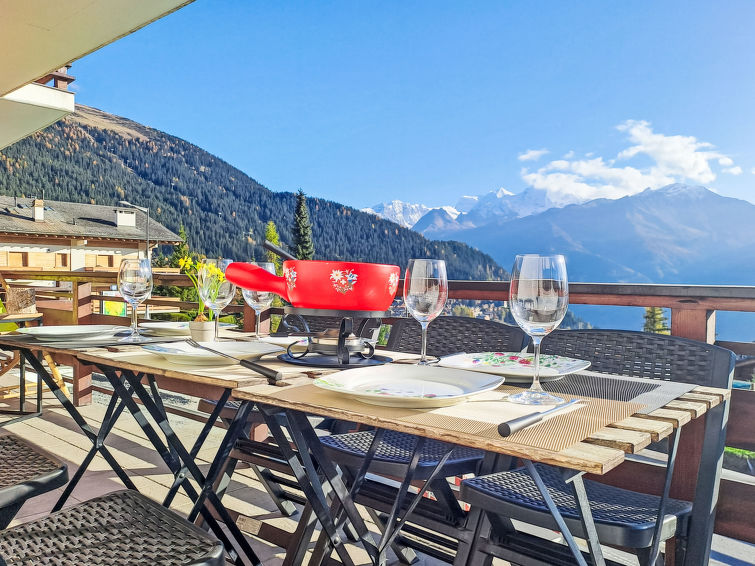 "Atlantic 112", 4-Zimmer-Wohnung 90 m2 im 1. Stock. Geräumig und hell, teilweise renoviert im Jahre 2019, zweckmässig und schön eingerichtet: Wohn-/Esszimmer mit offenem Kamin und Sat-TV. Ausgang zum Balkon. 2 Zimmer, jedes Zimmer mit 2 Betten. 1 Zimmer mit 1 Doppelbett. Kochnische (Backofen, Geschirrspüler, Toaster, Wasserkocher, Mikrowelle, elektrische Kaffeemaschine, Kapseln für die Kaffeemaschine (nespresso) extra, Racletteofen, Fondue Set (Käse)). Bad/WC, Dusche, sep. WC. Grosser Balkon. Balkonmöbel, Liegestühle (6). Sehr schöne Sicht auf die Berge, die Landschaft und die Ortschaft. Zur Verfügung: Haartrockner. Internet (WLAN, gratis). Garage Nr. 10 in 400 m, Höhe 200 cm, Breite 300 cm. Bitte beachten: Nichtraucher-Unterkunft. Maximal 1 Haustier/Hund erlaubt.