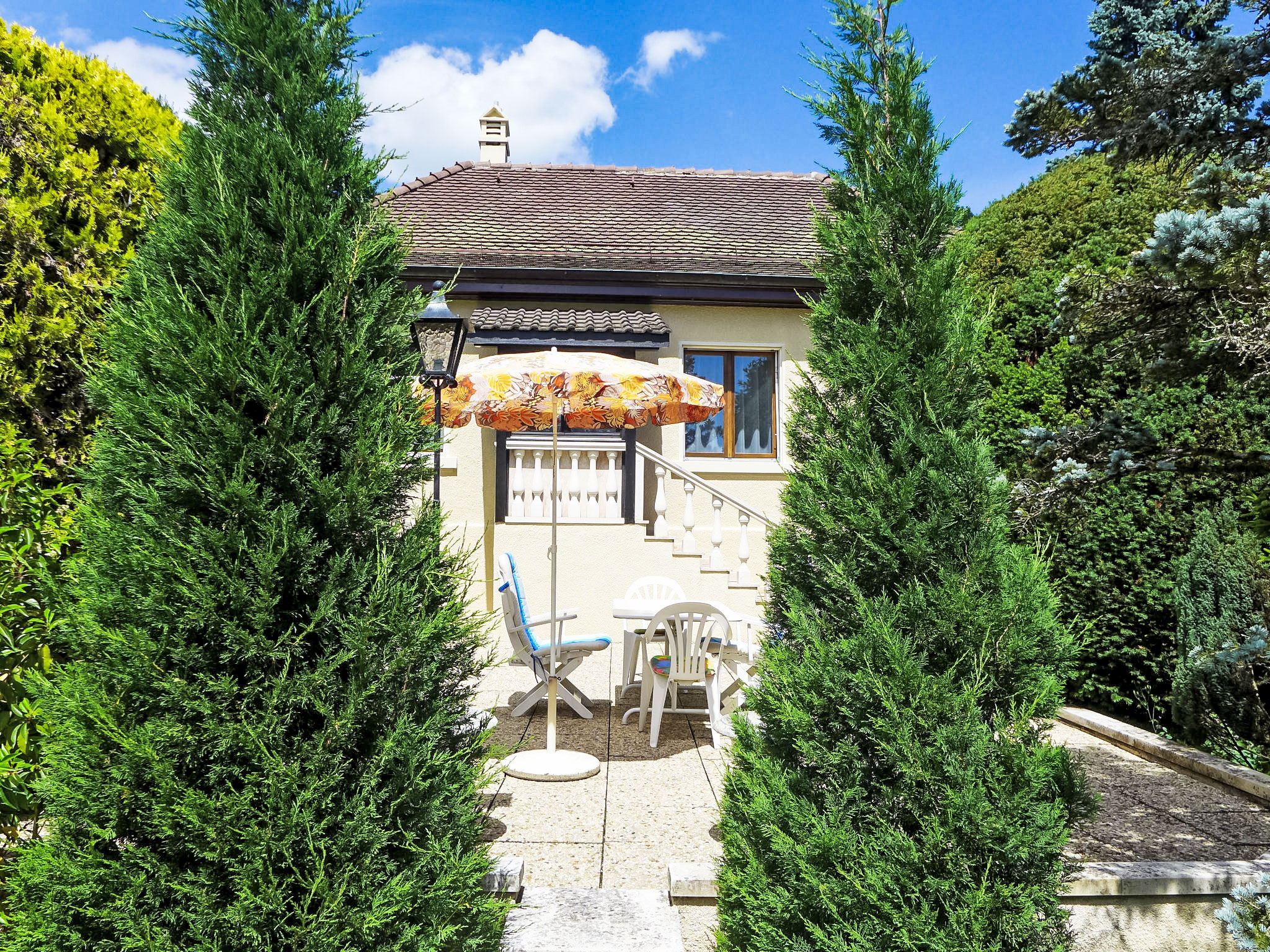 3-Zimmer-Haus 81 m2. Objekt geeignet für 2 Erwachsene. Komfortabel und geschmackvoll eingerichtet: Esszimmer mit Esstisch. Wohnzimmer mit Kabel-TV. 1 Zimmer mit 2 Betten (90 cm, Länge 200 cm). Küche (Backofen, Geschirrspüler, 4 Glaskeramikplatten, Toaster, Wasserkocher, Mikrowelle). Dusche/WC. G-Heizung. Grosser Gartensitzplatz. Terrassenmöbel, Liegestühle (2). Keine Sicht. Zur Verfügung: Internet (DSL/LAN, gratis). Bitte beachten: nicht geeignet für Kinder unter 17 Jahren. Nichtraucher-Unterkunft.