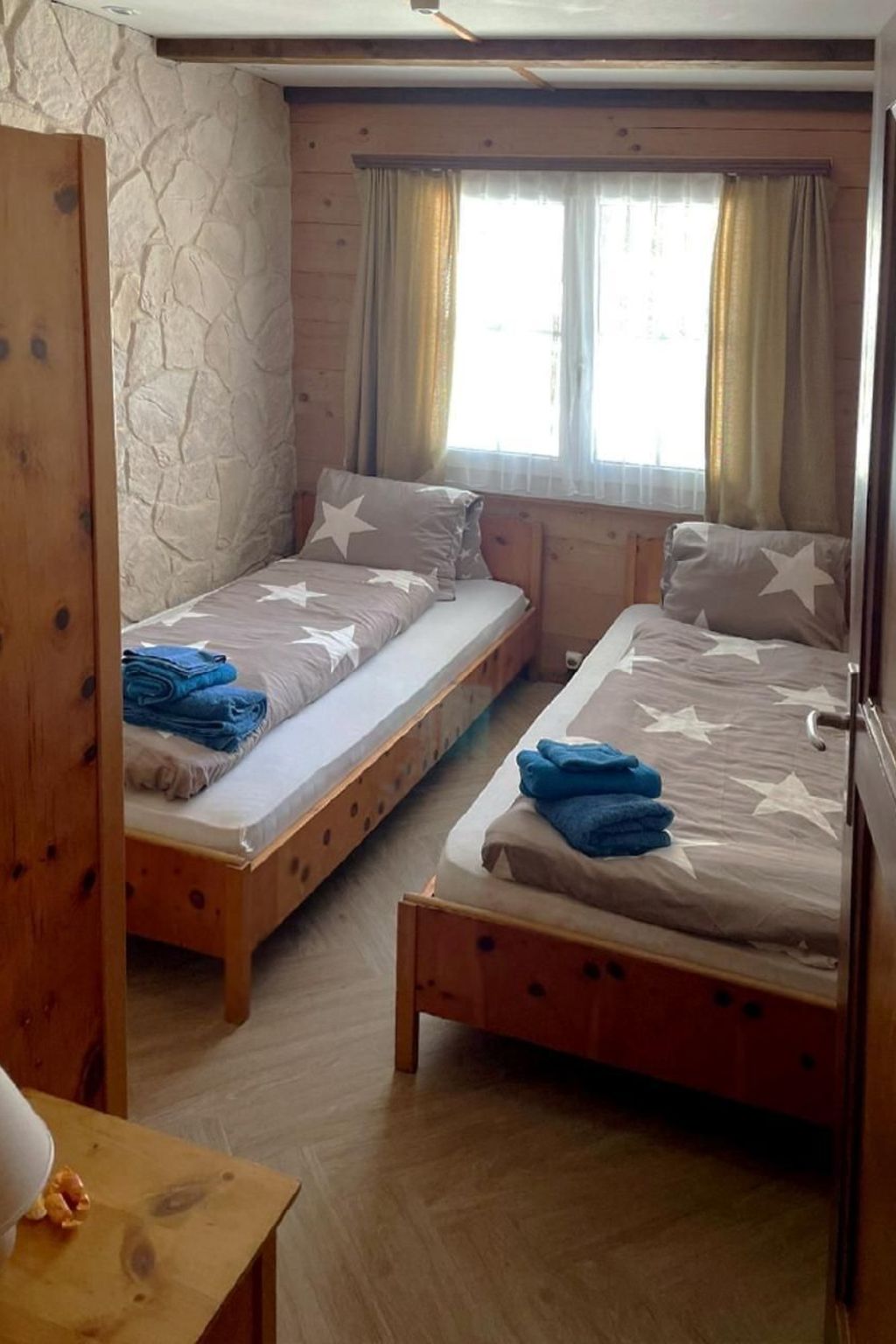 • 2x Einzelbetten mit ergonomischem Lattenrost (können zusammen gestellt werden)