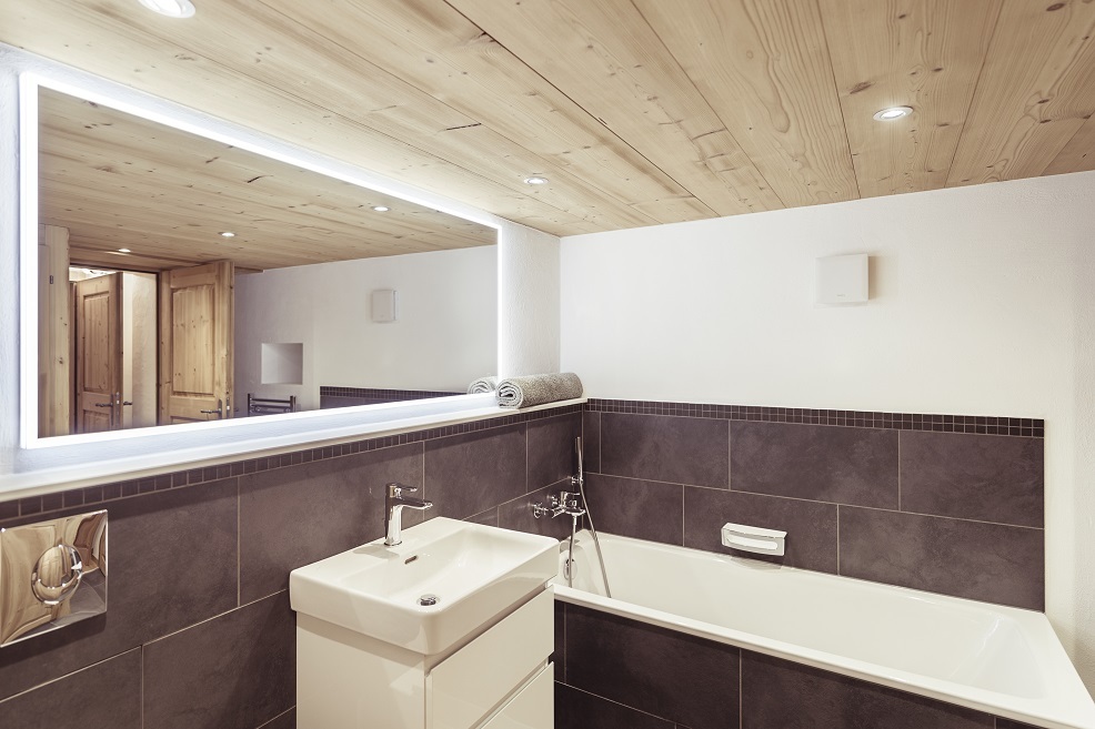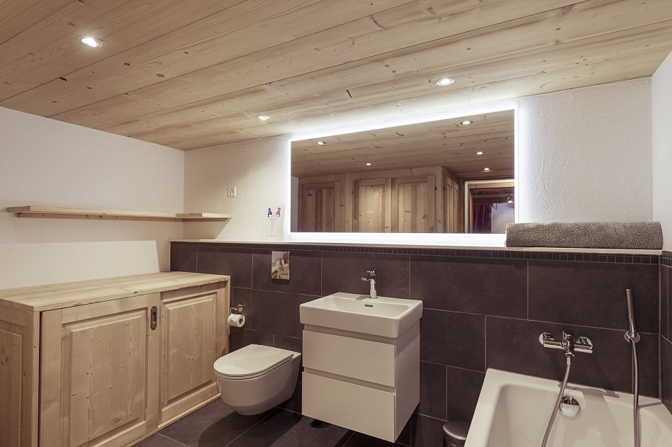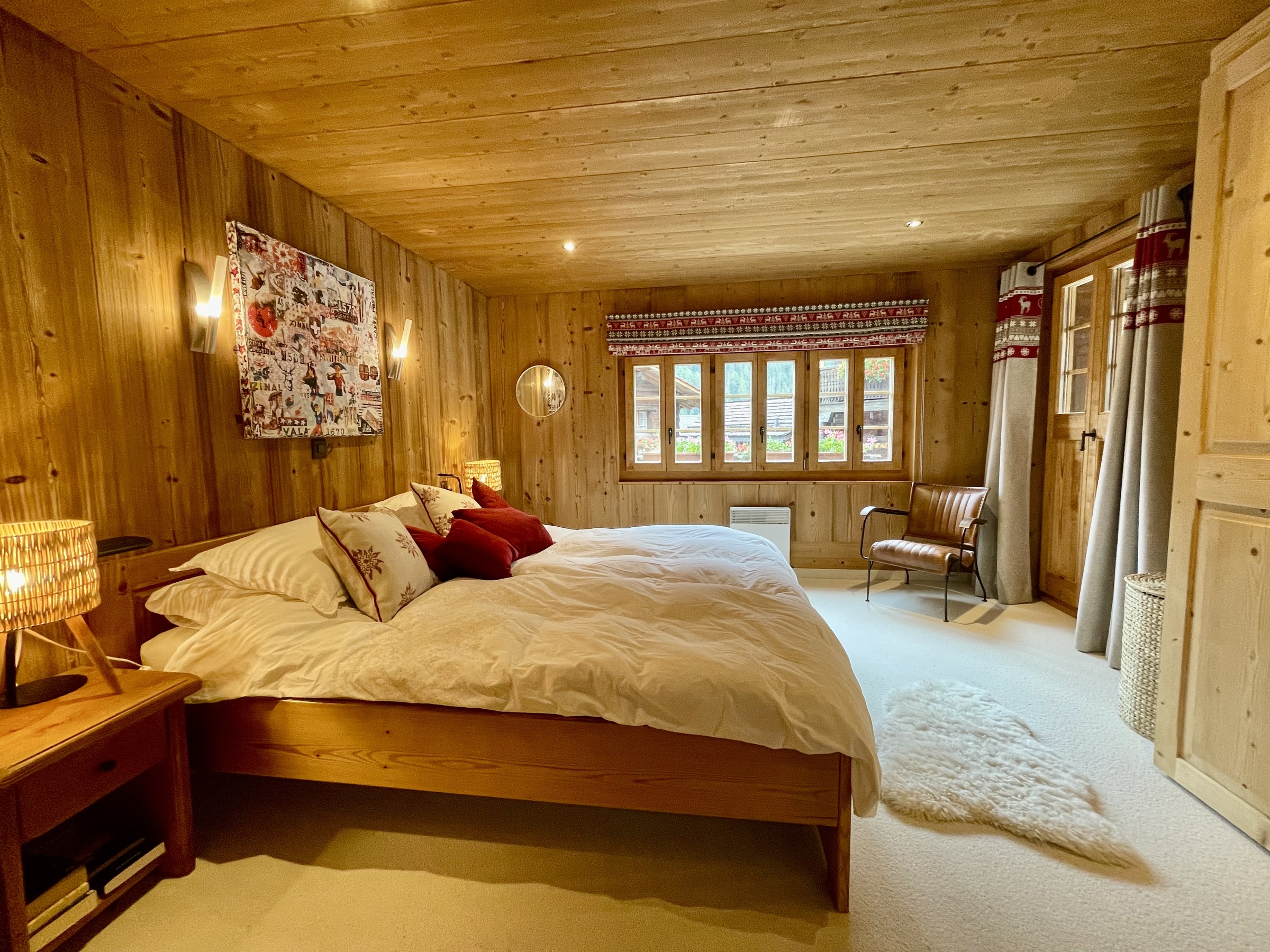 4-Zimmer-Chalet für 6 Personen im Herzen des alten Dorfes Grimentz: 1 Schlafzimmer mit Doppelbett und Badezimmer mit Badewanne/WC – 1 Schlafzimmer mit Doppelbett und Balkon – 1 Schlafzimmer mit zwei Einzelbetten – 1 Badezimmer mit Badewanne/WC – 1 Badezimmer mit Dusche/WC – WC – 1 Zimmer – zweites Wohnzimmer mit Balkon – Küche – Backofen – Geschirrspüler – Balkon – italienische Kaffeemaschine