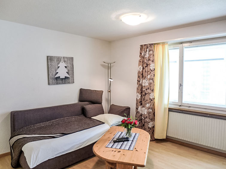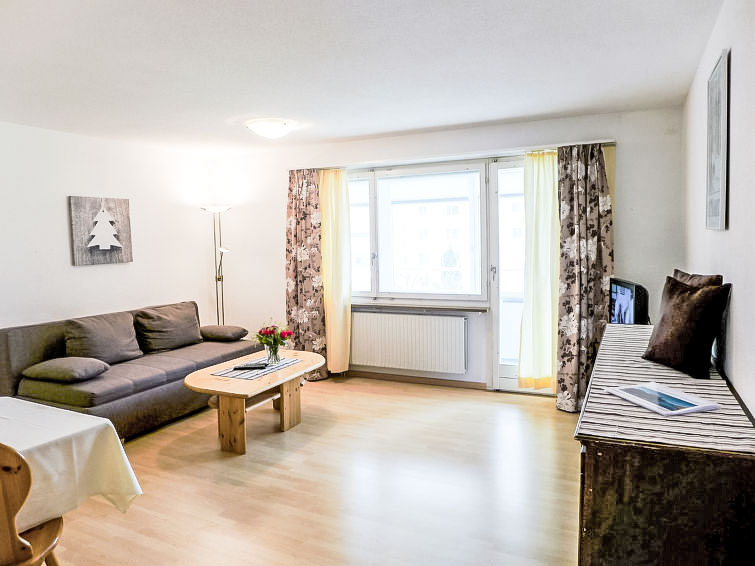 "Chesa Ova Cotschna 305", 2-Zimmer-Wohnung 51 m2 im 3. Stock, Westlage. Zweckmässig und modern eingerichtet: Wohn-/Esszimmer mit 1 Doppeldiwanbett (2 x 80 cm, Länge 200 cm), Esstisch und TV (Flachbildschirm). Ausgang zur Loggia. 1 Zimmer mit 1 Doppelbett (2 x 90 cm, Länge 200 cm). Offene Küche (Backofen, 4 Glaskeramikplatten, Toaster, Wasserkocher, elektrische Kaffeemaschine, Kapseln für die Kaffeemaschine (Nespresso) extra). Bad/WC. Balkonmöbel. Sicht auf die Berge und die Ortschaft. Zur Verfügung: Haartrockner. Internet (Wireless LAN, gratis). Garage Nr. 304, Höhe 200 cm, Breite 220 cm. Bitte beachten: Nichtraucher-Unterkunft. Maximal 1 Haustier/Hund erlaubt.