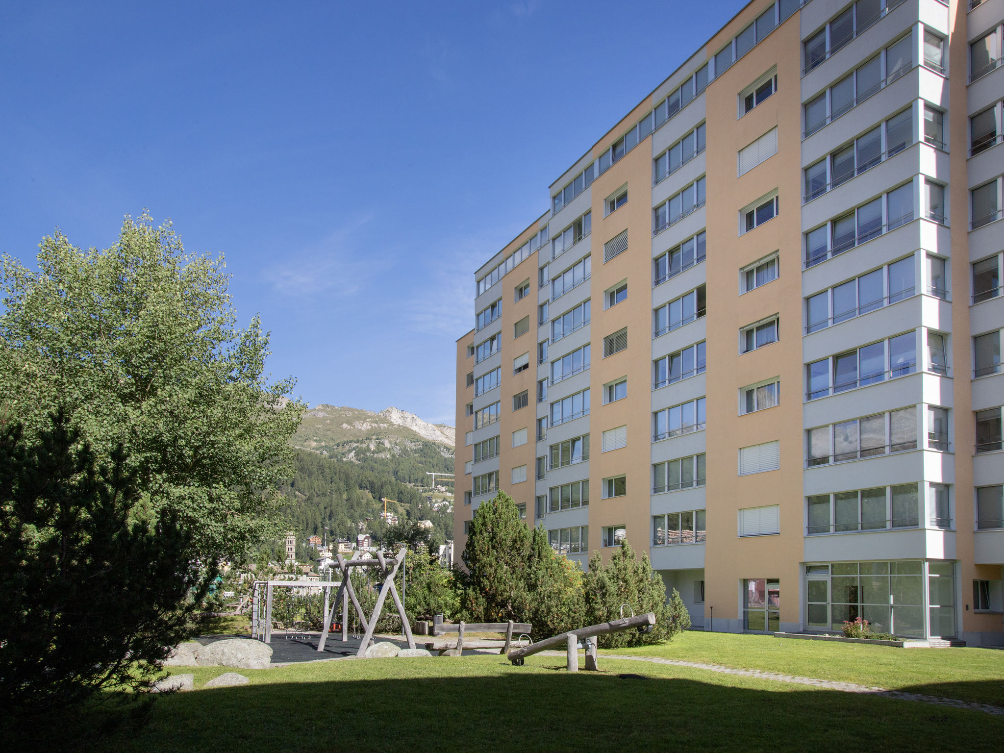 St. Moritz-Bad: Sehr grosses Mehrfamilienhaus "Chesa Ova Cotschna", auf 9 Stockwerken, renoviert im Jahre 2011. Im Ort, 350 m vom Zentrum von St.Moritz-Bad, ruhige, sonnige Lage, 300 m vom See, 900 m vom Skigebiet. Im Hause: Fahrstuhl, Einstellraum für Fahrräder, Skiraum, Zentralheizung. Einkaufsgeschäft 350 m, Supermarkt 800 m, Restaurant 50 m, Bar 350 m, Bäckerei 600 m, Café 350 m, Fahrradverleih 350 m, Bushaltestelle "St. Moritz Bad, Sonne" 50 m, Bahnstation "St. Moritz" 2 km, Hallenbad 400 m, Thermalbad "Heilbadzentrum St. Moritz", See St. Moritzer See 300 m. Golfplatz (18 Loch) 7.3 km, Surfschule 5.3 km, Tennis 1 km, Tennishalle 1 km, Minigolf 400 m, Reitstall 2.8 km, Wanderwege ab Haus, Radweg 200 m, Luftseilbahn 900 m, Skilift, Skipisten 900 m, Skiverleih 350 m, Skibushaltestelle 50 m, Skischule 2 km, Kinderskischule 2 km, Schlittelbahn 5.7 km, Langlaufloipe 100 m, Eisfeld 450 m, Kinderspielplatz 500 m. Nahe gelegene Sehenswürdigkeiten: Segantini Museum 2.2 km, Engadiner Museum 1.2 km, Mili Weber-Haus 2.9 km, Olympia Bob Run mit Museum 2.6 km, Nietzsche Museum in Sils-Maria 9.5 km. Bekannte Skigebiete sind gut erreichbar: Corviglia Piz Nair 900 m, Corvatsch - Furtschellas 6.5 km, Diavolezza - Lagalb 20 km. Bekannte Seen in der Umgebung sind gut erreichbar: St.Moritzer See 300 m, Silvaplaner See 5.2 km, Silser See 9.5 km. Wandergebiete: Stazerwald & Stazersee, Corviglia Piz Nair, Muottas Muragl. Bitte beachten: Die Schlüsselübergabe findet bei der Agentur Interhome in St. Moritz Bad statt. Weitere Unterkünfte sind buchbar.
