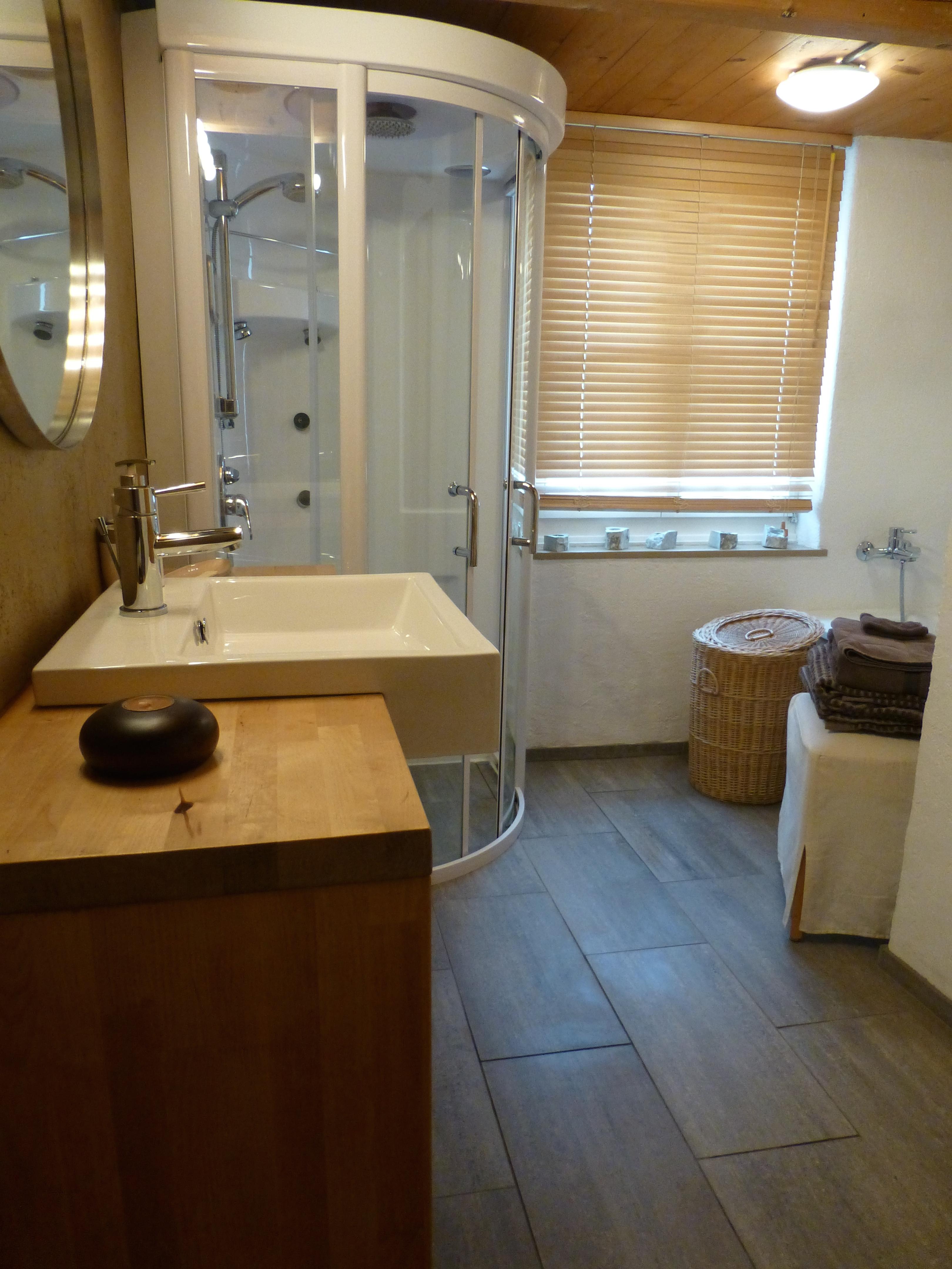 Dampfsauna mit Lichteffekten und Musik. Smart-Sat-TV mit diversen internationalen Sendern und Libratone Bluetooth-Speaker.