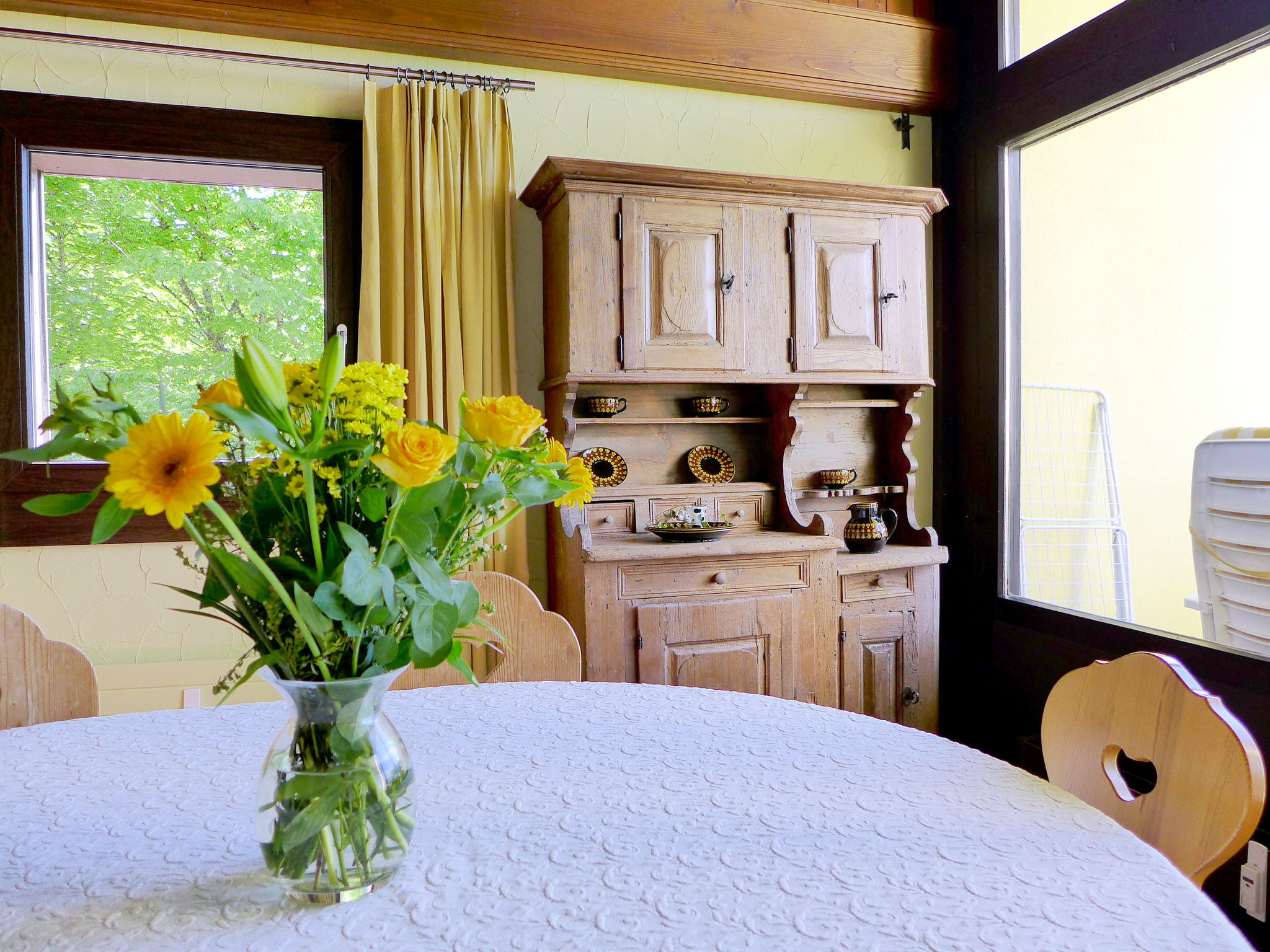 "Enzian 720", 4-Zimmer-Maisonette-Wohnung 140 m2 auf 2 Stockwerken, im Obergeschoss. Geräumig und hell, sehr komfortabel und geschmackvoll eingerichtet: offenes grosses Wohn-/Esszimmer mit Panoramafenster mit Esstisch und Kabel-TV. Ausgang zum Balkon. 1 Zimmer mit 1 Doppelbett (2 x 90 cm, Länge 200 cm). Küche (Backofen, Geschirrspüler, 4 Induktionskochplatten, Toaster, Wasserkocher, Mikrowelle, Tiefkühler, elektrische Kaffeemaschine, Kapseln für die Kaffeemaschine (Nespresso) extra, Racletteofen, Fondue Set (Käse)). Sep. WC. Obergeschoss: 1 Zimmer mit Panoramafenster mit 1 Doppelbett (2 x 90 cm, Länge 200 cm), Bad/Dusche/WC. 1 Zimmer mit 2 Betten (90 cm, Länge 200 cm). Dusche/WC. Grosser Balkon, Südlage. Balkonmöbel. Herrliche Panoramasicht auf den See und die Berge. Zur Verfügung: Kinderhochstuhl, Babybett bis 2 Jahre. Internet (WLAN, gratis). Parkplatz (1 Auto). Bitte beachten: geeignet für Familien. Nichtraucher-Unterkunft. Maximal 1 Haustier/Hund erlaubt. Rauchmelder.