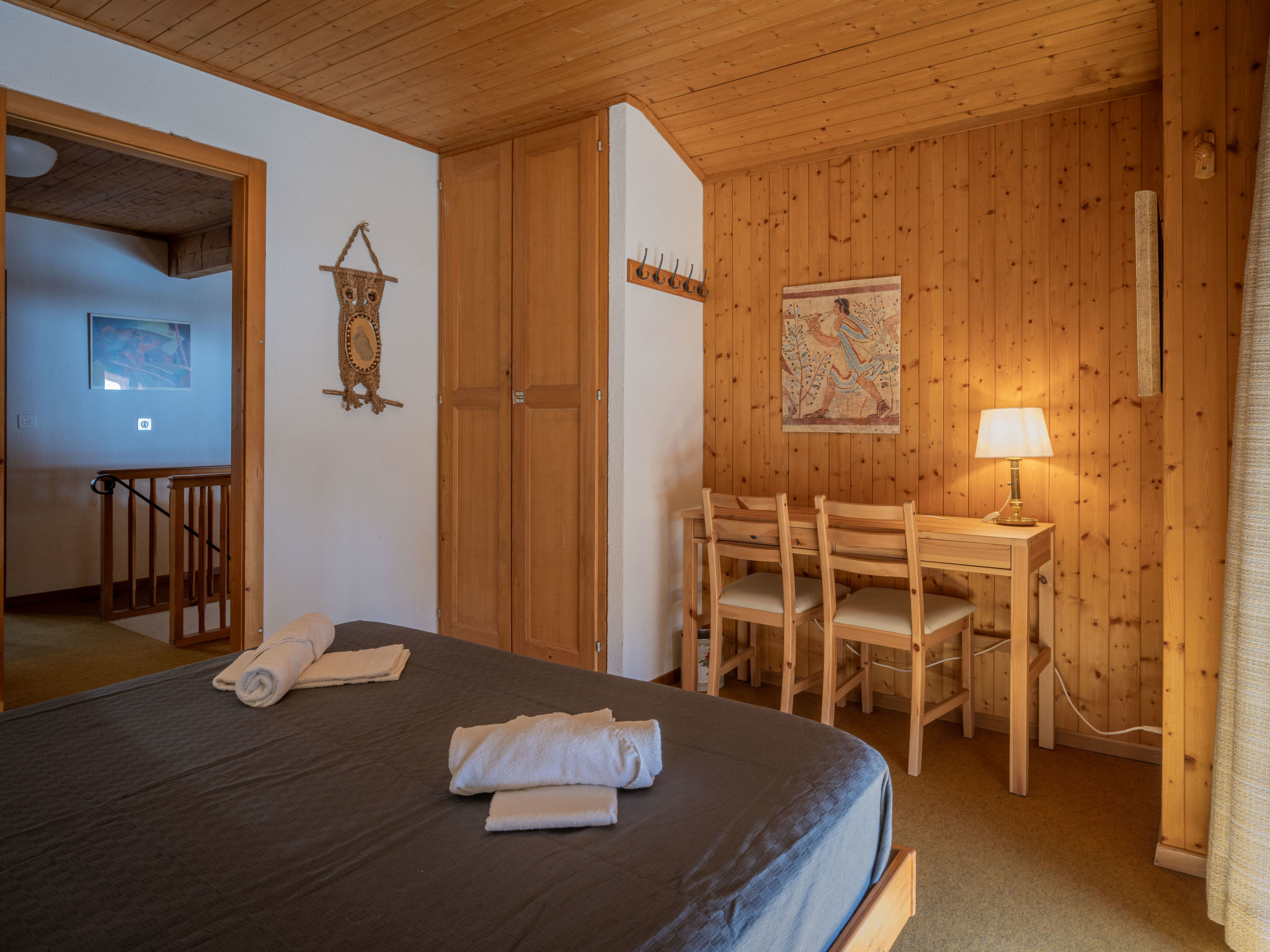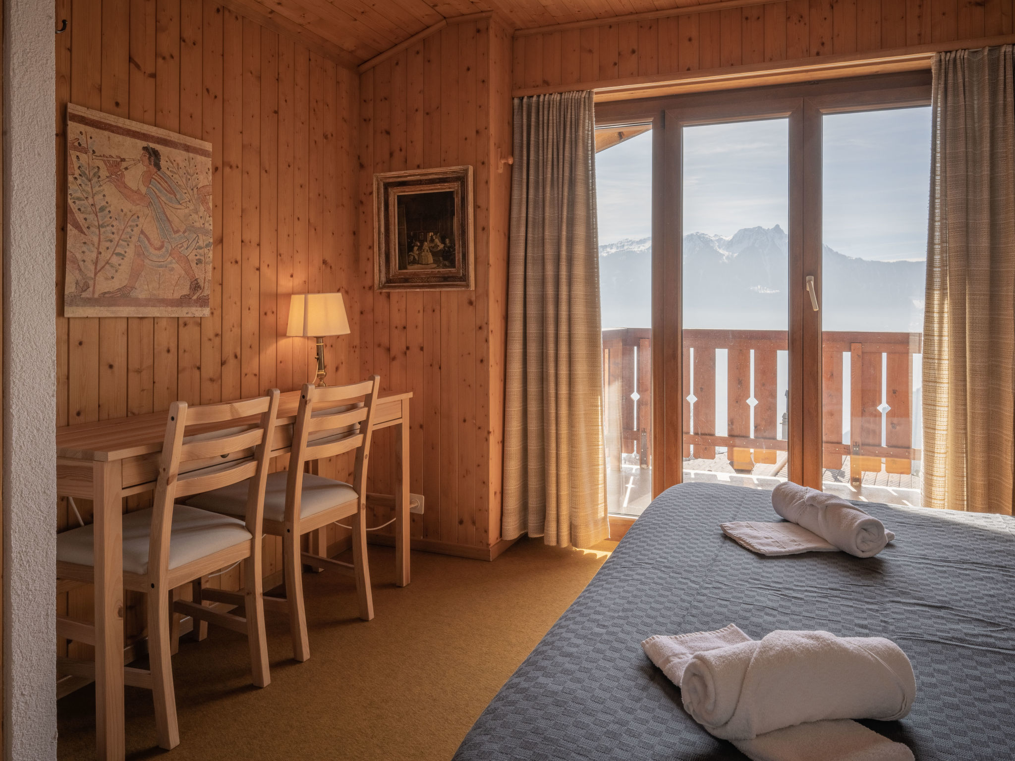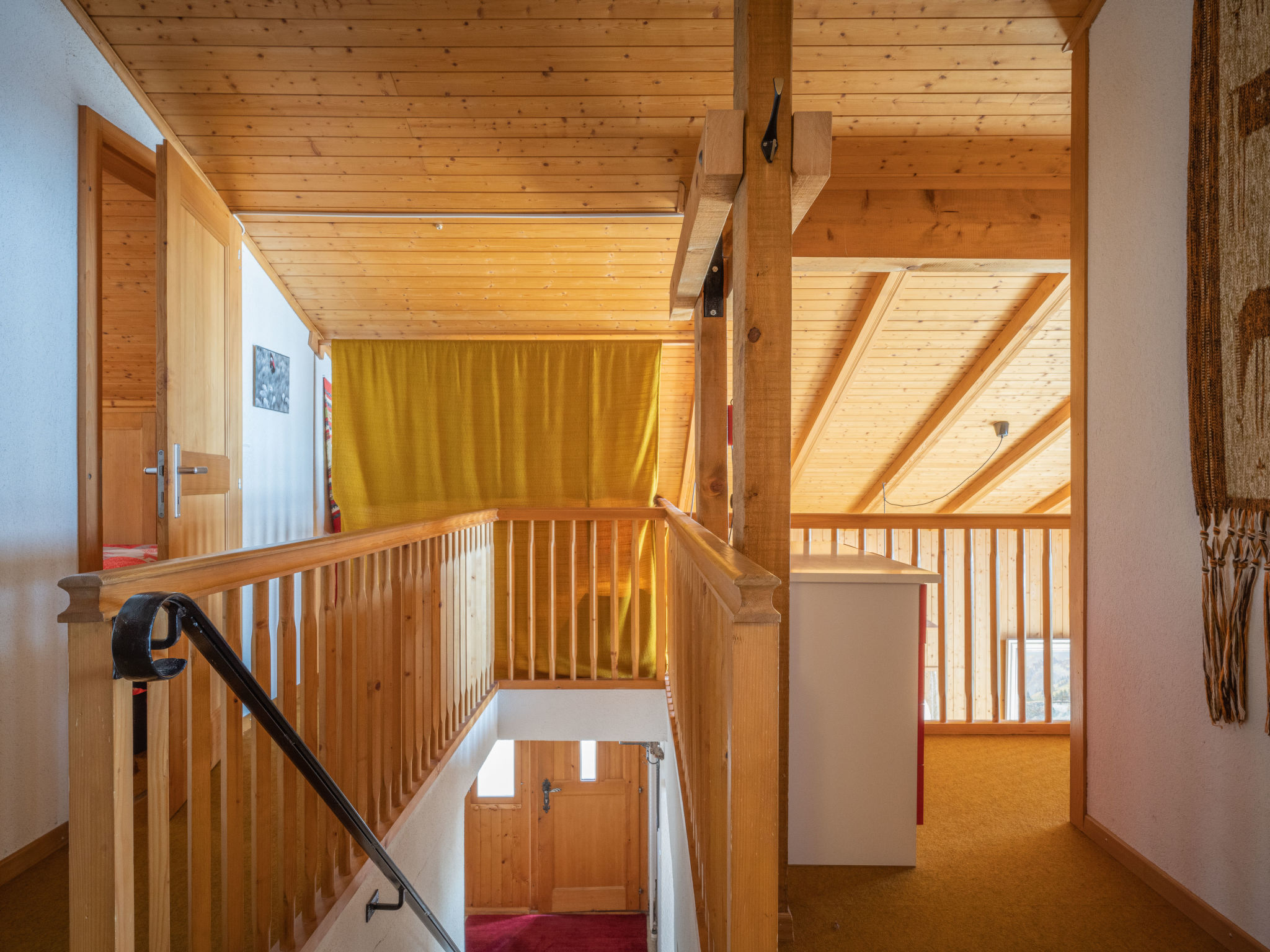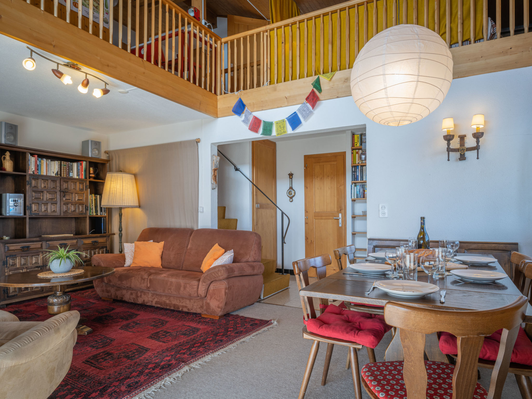 "Plein Soleil A 10", 4-Zimmer-Wohnung 90 m2 auf 2 Stockwerken, Südostlage. Komfortabel und schön eingerichtet: Wohn-/Esszimmer mit Essecke, Kabel-TV, Stereoanlage, DVD und Holzofen. Ausgang zum Balkon. Küche (Backofen, Geschirrspüler, 4 Induktionskochplatten, Mikrowelle, elektrische Kaffeemaschine, Kapseln für die Kaffeemaschine (Delizio) extra, Racletteofen, Fondue Set (Chinoise, Käse)). Bad/WC. Obergeschoss: 1 Zimmer mit 1 franz. Bett (160 cm, Länge 200 cm). Ausgang zum Balkon. 1 Zimmer mit 2 Betten (90 cm, Länge 200 cm). 1 abgeschrägtes Zimmer mit 2 Ausziehbetten (2 Pers. 2 x 90 cm, Länge 200 cm). Galerie. Dusche/WC. Balkon 15 m2, Südostlage, 2 kleine Balkone, Südlage und Nordlage. Terrassenmöbel, Liegestühle (5). Sehr schöne Sicht auf die Berge und das Tal. Zur Verfügung: Bügeleisen, Haartrockner. Internet (WLAN, gratis). Parkplatz Nr. 10 (1 Auto) in 30 m. Bitte beachten: Nichtraucher-Unterkunft. Maximal 1 Haustier/Hund erlaubt.