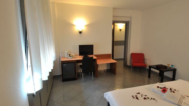 Familienbetriebenes Hotel im Stadtzentrum, nur 100 Meter vom Bahnhof entfernt. Im Jahr 2008 renoviert. 28 geräumige Zimmer mit eigenem Bad und jeglichem Komfort (kostenfreies Wi-Fi, TV, Spiegelschrank, Schreibtisch mit Stuhl, Safe, Klimaanlage, Deckenventilator, Haartrockner, Wasserkocher für Kaffee-/Teezubereitung) Tägliche Reinigung, Wäsche- und Bügelservice. Badezimmerprodukte Marke "Rituale". Elegantes Restaurant und Pizzeria mit italienischer Küche und Schweizer Spezialitäten. Lizenznummer: 4121