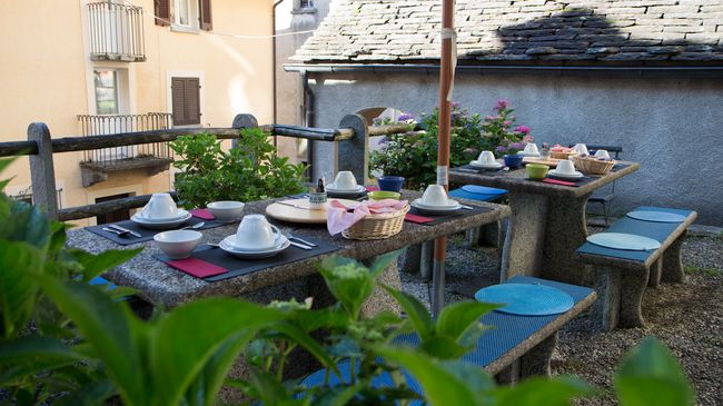 Beginnen Sie Ihren Tag mit einem reichhaltigen Frühstück in der antiken Küche oder Stube. Das Abendessen servieren wir Ihnen in unserer Osteria Al Palazign, nur wenige Schritte entfernt, und Sie werden mit der Küche des Tessins und der Lombardei verwöhnt.
