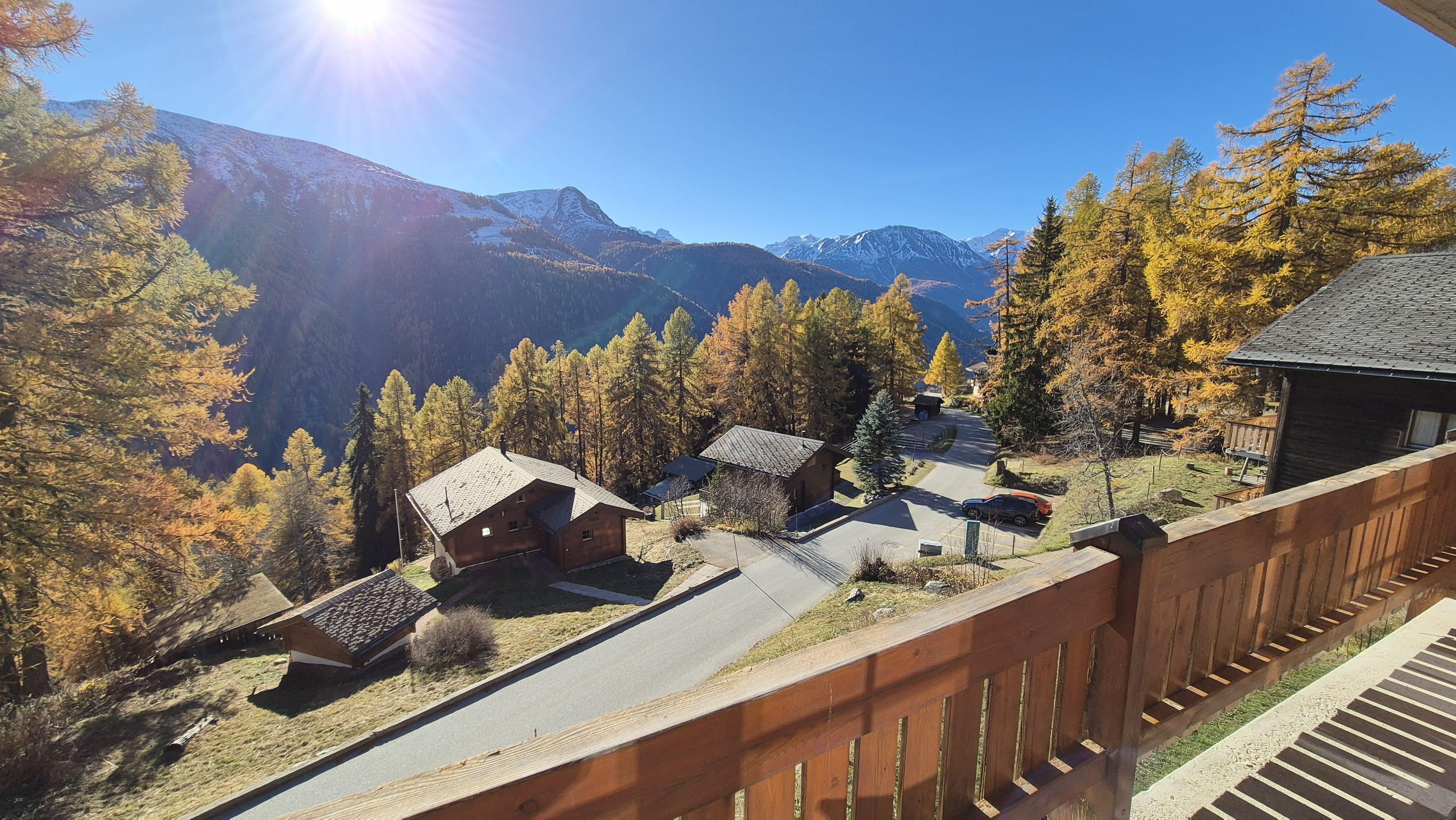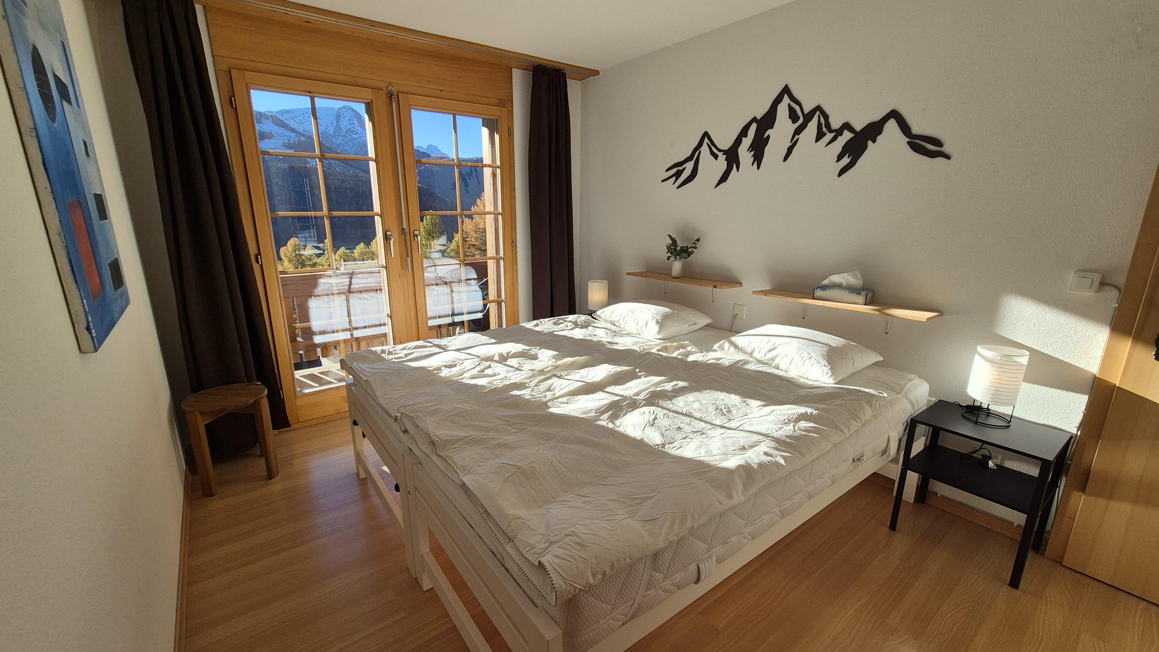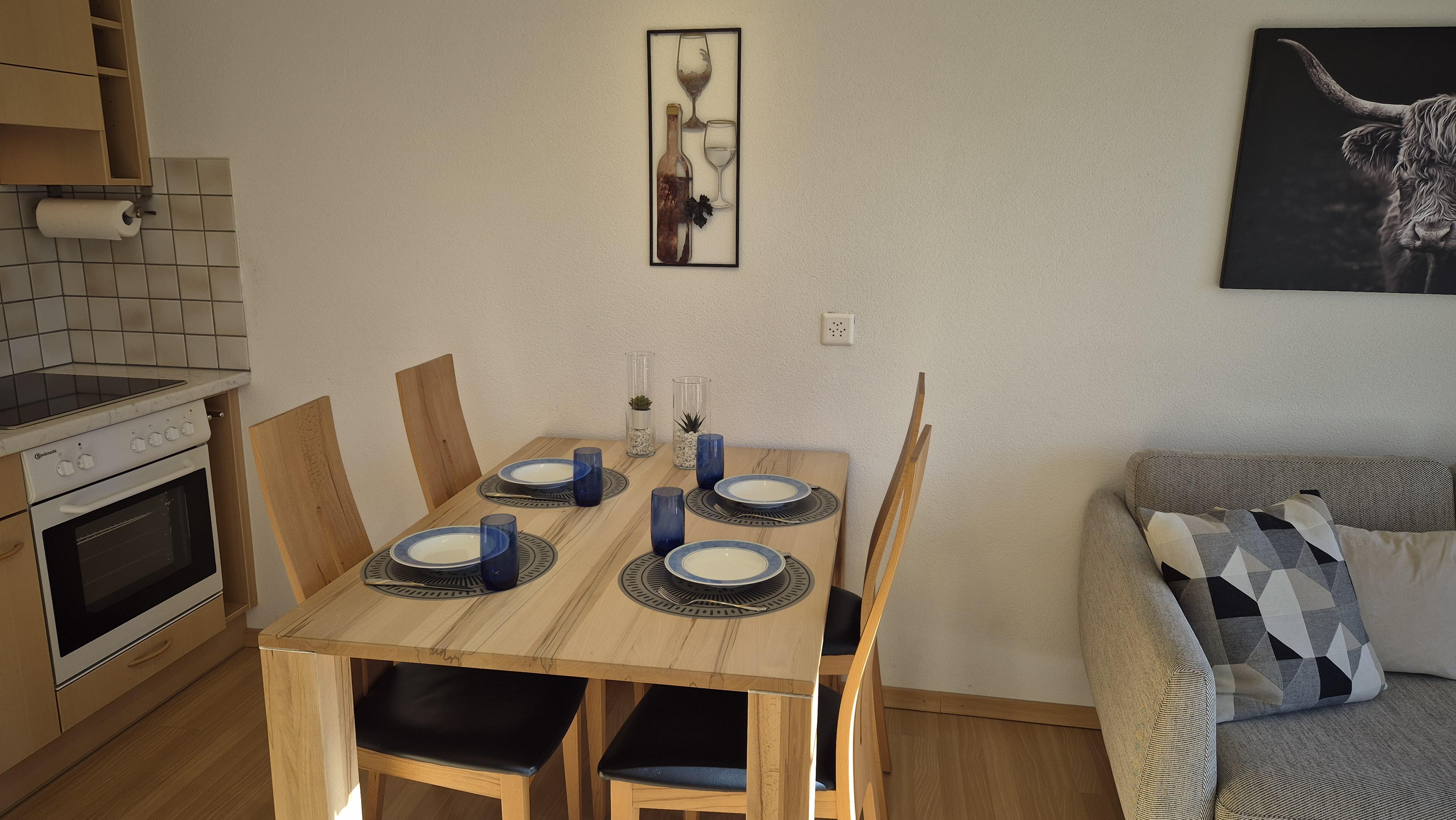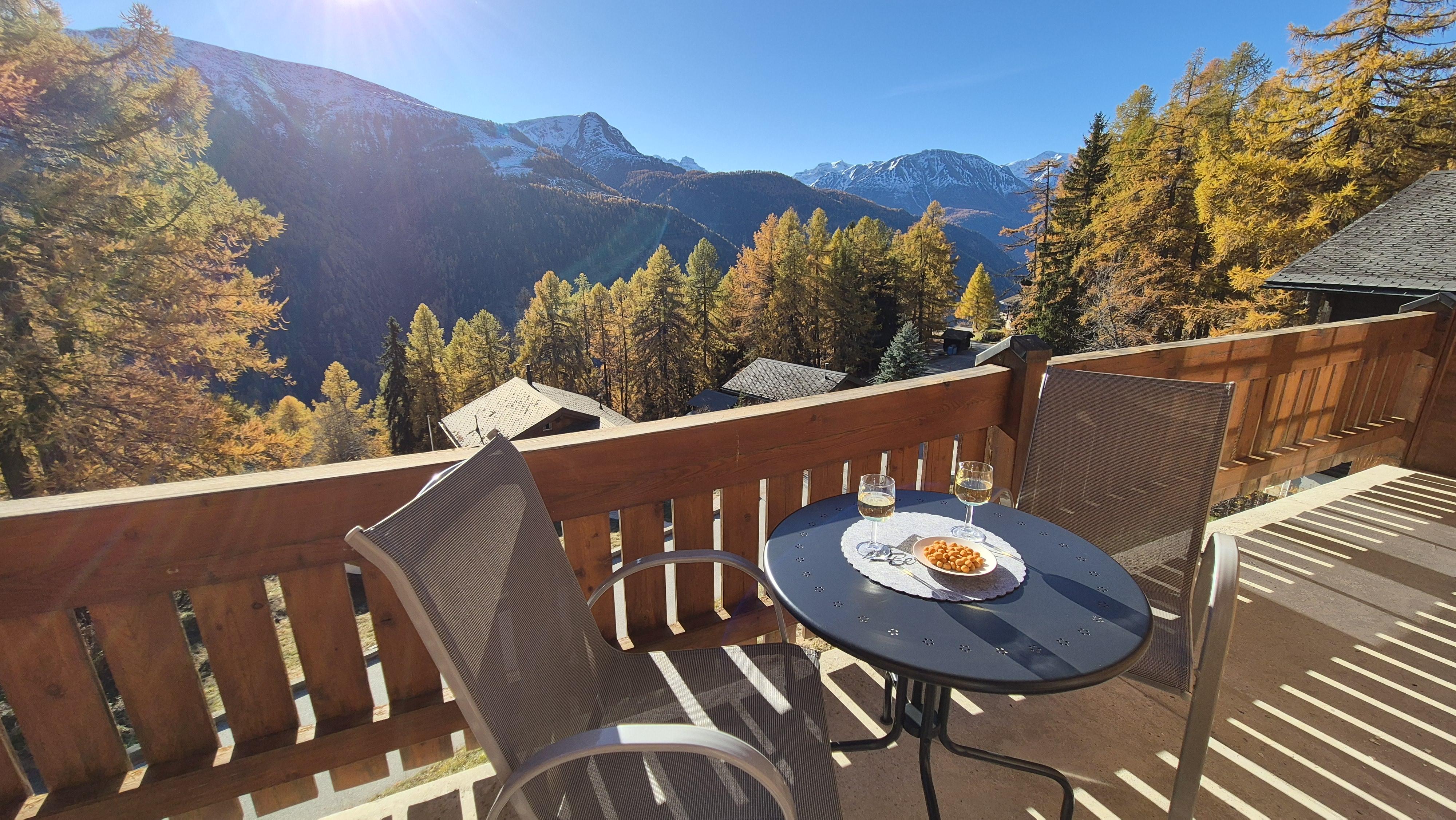 Der Wohnbereich ist freundlich und zugleich gemütlich. Der schöne Balkon bietet eine herrliche Bergsicht.