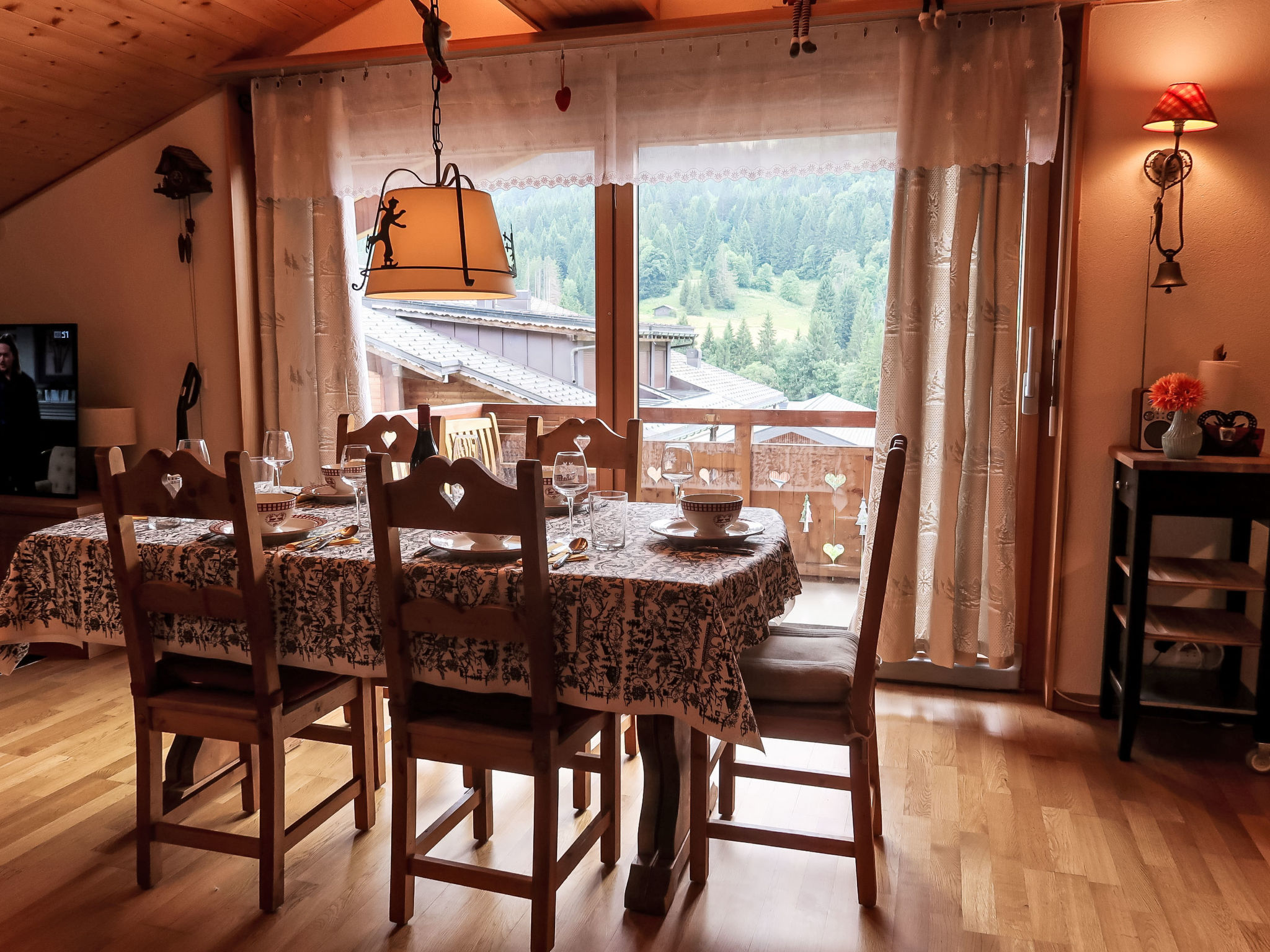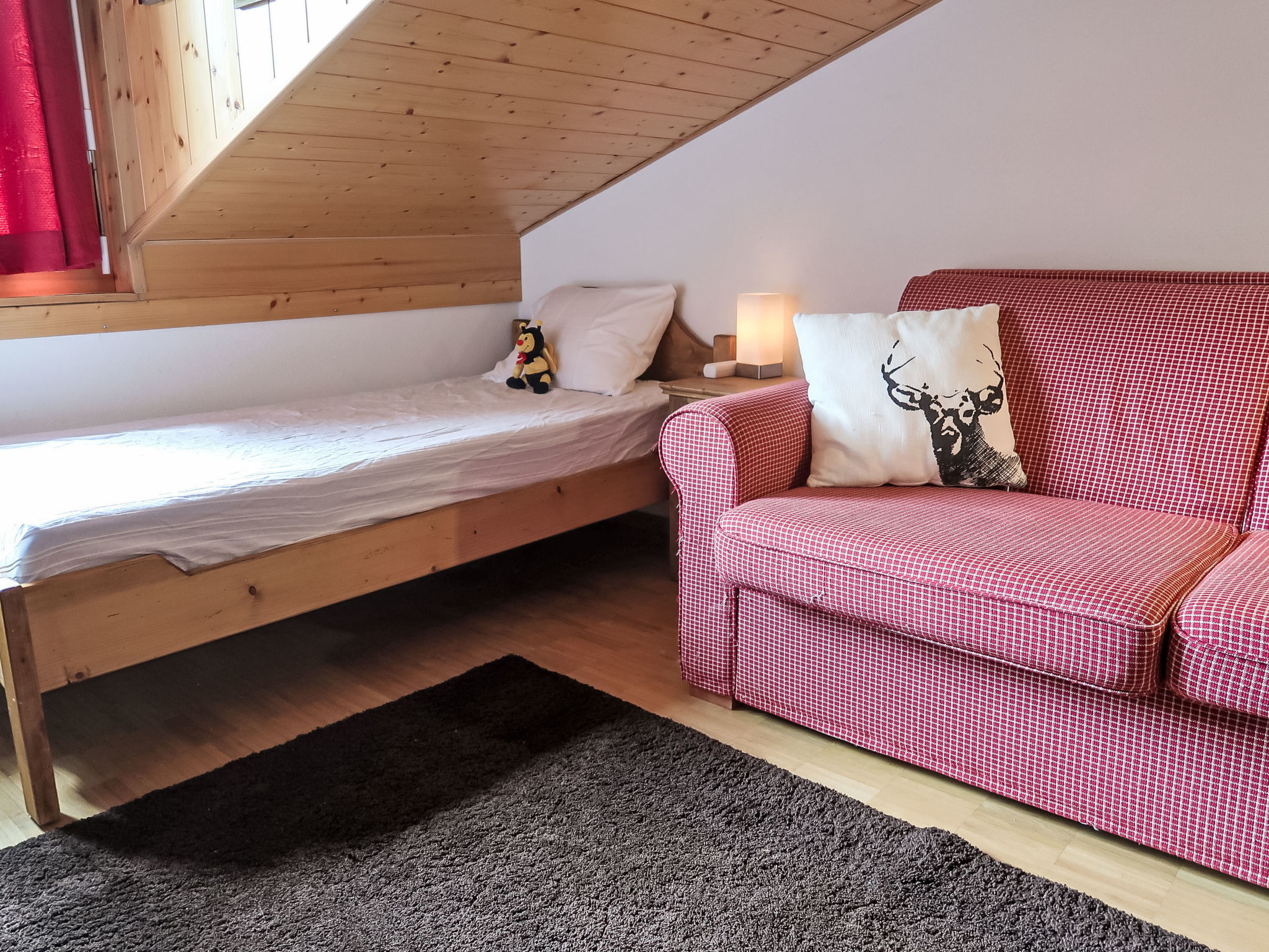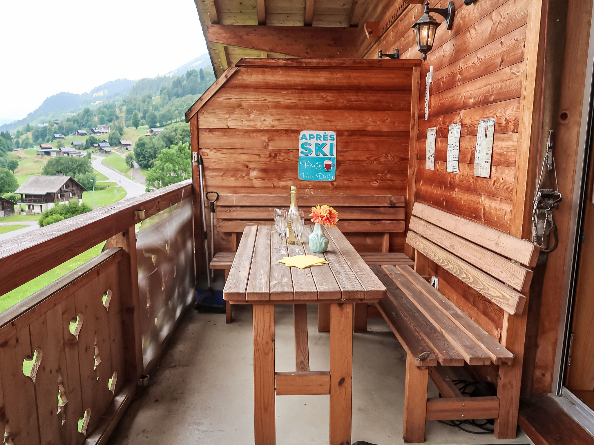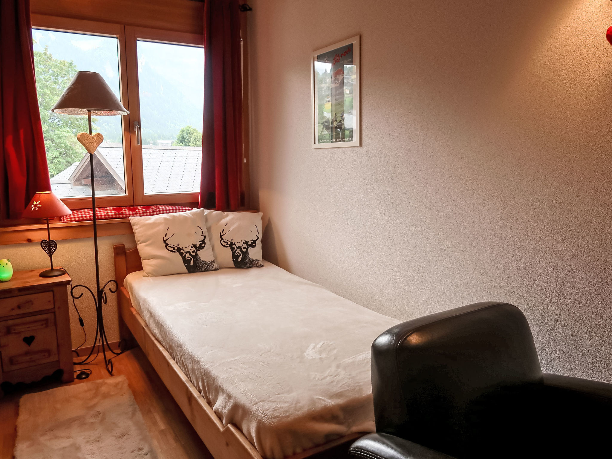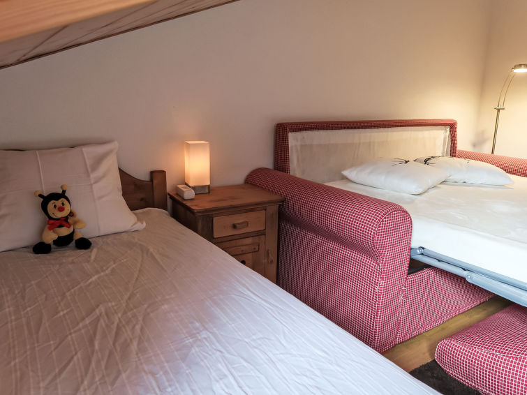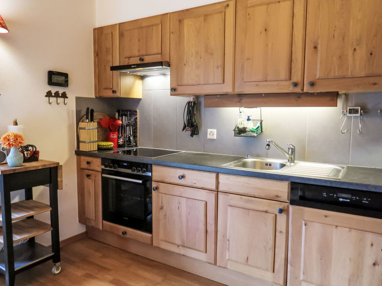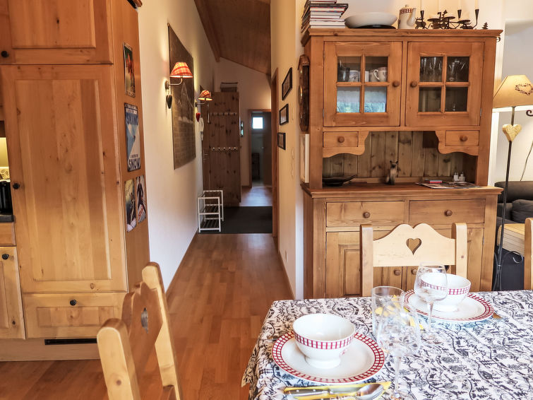 "Mon Abri B", 4-Zimmer-Wohnung im 3. Stock, Südwestlage. Komfortabel und geschmackvoll eingerichtet: Wohn-/Esszimmer mit Kabel-TV und Flachbildschirm. Ausgang zum Balkon, Richtung Südwesten. 1 Zimmer mit 1 Doppelbett (160 cm, Länge 200 cm). 1 Zimmer mit 2 Betten (90 cm, Länge 190 cm). 1 Zimmer mit 1 Bett (90 cm, Länge 190 cm), 1 Diwanbett (150 cm, Länge 190 cm). Offene Küche (4 Glaskeramikplatten, Toaster, Wasserkocher, elektrische Kaffeemaschine, Kapseln für die Kaffeemaschine (Nespresso) extra, Racletteofen, Fondue Set (Chinoise, Käse)). Bad/WC, Dusche/WC. Balkon, Südwestlage. Balkonmöbel. Schöne Sicht auf die Berge und die Landschaft. Zur Verfügung: Waschmaschine, Haartrockner. Internet (WLAN, gratis). Garage. Bitte beachten: Nichtraucher-Unterkunft.
