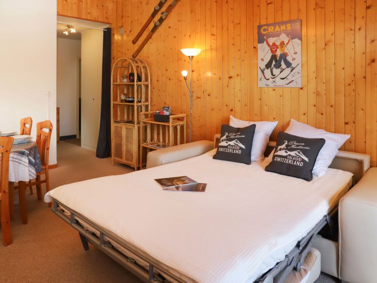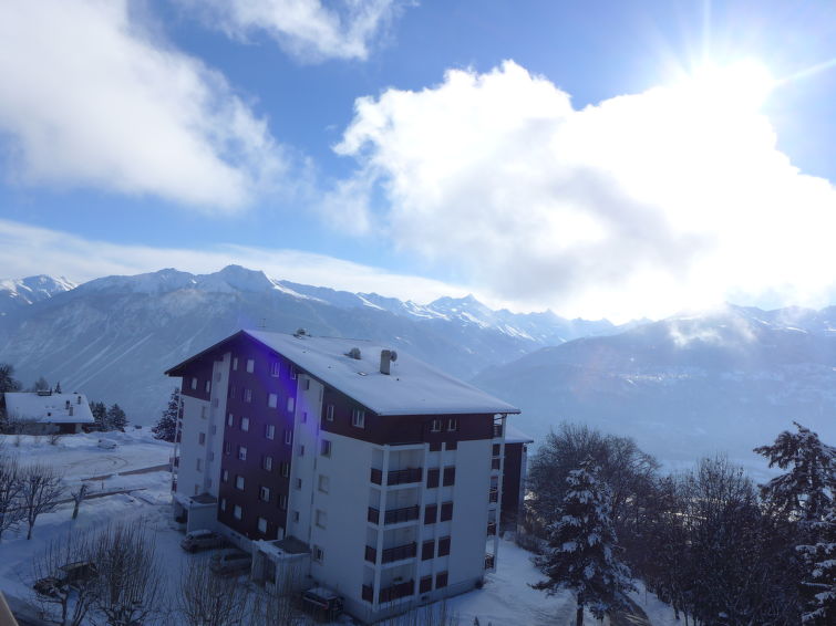 Komfortable Residenz "Belmont Est / Ouest", auf 5 Stockwerken. Im Ortsteil Combaz, 1.5 km vom Zentrum von Montana, ruhige, sonnige Lage, verkehrsberuhigte Zone, 2.1 km vom See, 1.2 km vom Skigebiet, in einer Sackgasse, Richtung Süden. In der Anlage: Fahrstuhl, Skiraum, Zentralheizung, Waschmaschine, Wäschetrockner (zur Mitbenutzung, extra). Parkplatz (beschränkte Anzahl) beim Haus. Einkaufsgeschäft 1.5 km, Supermarkt 1.5 km, Restaurant 1.5 km, Bäckerei 750 m, Bushaltestelle "Comba" 300 m, Bahnstation "Funiculaire Montana Gare" 1.1 km, Badesee "Moubra" 2.5 km. Golfplatz (18 Loch) 3.5 km, Tennis 2.5 km, Skisportanlagen 1.2 km, Langlaufloipe 2.5 km, Eisfeld 1.9 km. Bekannte Seen in der Umgebung sind gut erreichbar: Grenon 2.1 km, Etang Long 3.6 km. Bitte beachten: Gratis Skibus. Weitere Unterkünfte sind buchbar.