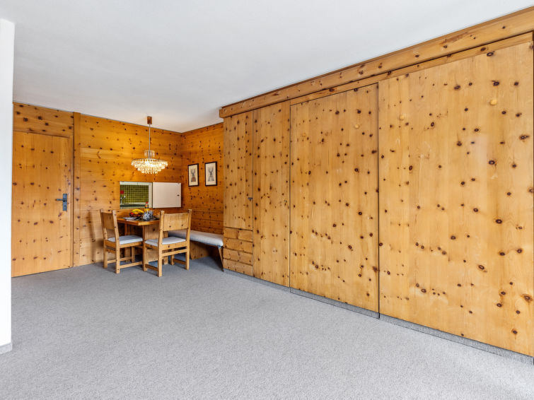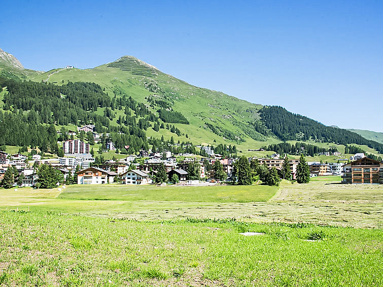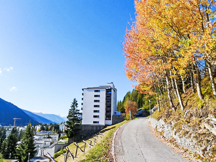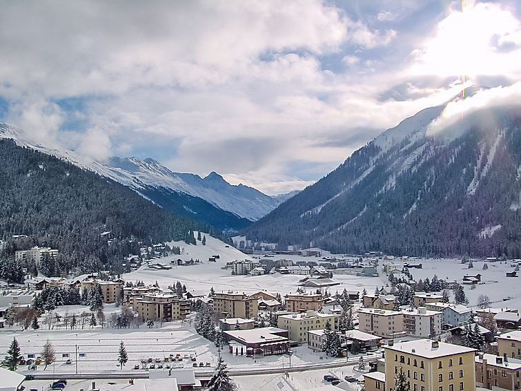 Davos: Appartementhaus "Guardaval (Utoring)". Im Ort, zentrale, ruhige, sonnige Lage am Hang, 1 km vom See, 300 m vom Skigebiet. Zur Mitbenutzung: Hallenbad. Im Hause: Empfang, Aufenthaltsraum mit TV, Wireless LAN, Sauna (extra). Spielzimmer, Fahrstuhl, Skiraum, Zentralheizung, Waschmaschine (zur Mitbenutzung). Brötchenservice und Getränkeservice. Schmale Zufahrt bis zum Haus. Parkplatz (überdacht, beschränkte Anzahl, extra), Gemeinschaftsgarage (extra). Einkaufsgeschäft 300 m, Restaurant 300 m, Bushaltestelle, Bahnstation "Davos Dorf" 400 m, Hallenbad 1 km, Badesee 1 km. Bergeisenbahn, Skisportanlagen, Skipisten, Skischule, Schlittelbahn 1.5 km, Langlaufloipe, Eisfeld 300 m. Bekannte Skigebiete sind gut erreichbar: Parsenn 300 m, Jakobshorn 1.5 km. Das Appartementhaus befindet sich oberhalb der Talstation der Parsennbahn und verfügt über eine herrliche Aussicht. Parkplatz + Garage (Reservierung bei Ankunft).