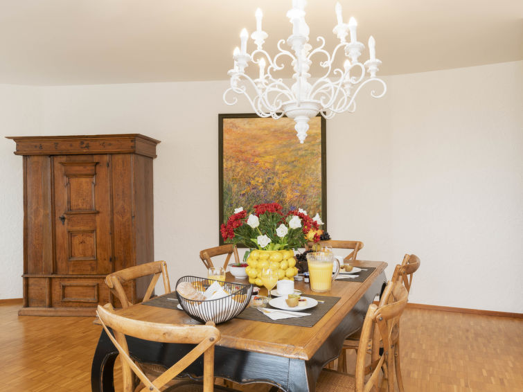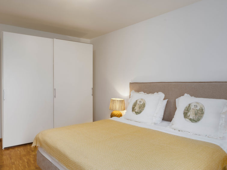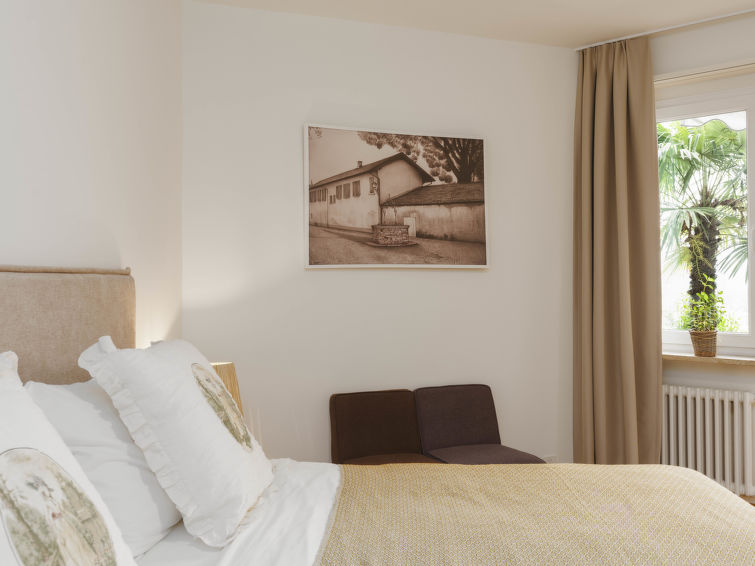 "Suite Modern", 2-Zimmer-Wohnung 90 m2, Südostlage. Renoviert: Wohn-/Esszimmer mit 1 Diwanbett (160 cm, Länge 200 cm), Sat-TV und Radio. 1 grosses Zimmer mit 1 Doppelbett (200 cm, Länge 200 cm). Küche (Backofen, Geschirrspüler, elektrische Kaffeemaschine, Kapseln für die Kaffeemaschine (Nespresso) extra). Bad/WC. Ölheizung. Balkon, Ostlage, kleiner Balkon. Herrliche Sicht auf den See, die Berge und die Ortschaft. Zur Verfügung: Internet (Wireless LAN, gratis). Bitte beachten: Nichtraucher-Unterkunft, Nichtraucher-Haus. Maximal 1 Haustier/Hund erlaubt. NL-00004961