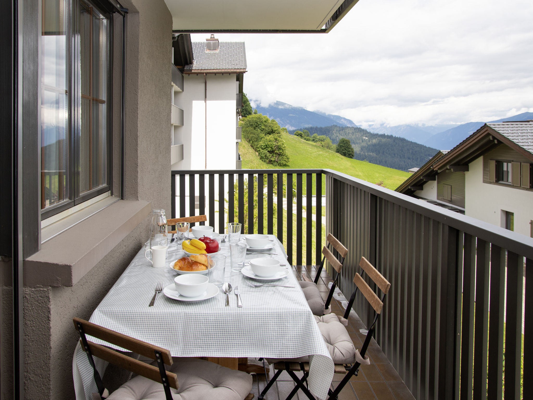 "La Siala Apt.17", 3-Zimmer-Wohnung 80 m2 im 1. Stock. Vollständig renoviert im Jahre 2023, komfortabel und modern eingerichtet: Wohn-/Esszimmer mit 1 Doppeldiwanbett und Kabel-TV (Flachbildschirm). Ausgang zum Balkon. 2 Doppelzimmer. Offene Küche (Backofen, Geschirrspüler, 4 Glaskeramikplatten, Toaster, Wasserkocher, Mikrowelle, elektrische Kaffeemaschine, Kapseln für die Kaffeemaschine (Nespresso), Racletteofen, Fondue Set (Käse)). Dusche/WC, Bad/Dusche/WC. Balkon 10 m2, Südlage. Balkonmöbel. Schöne Sicht auf die Berge, das Tal und die Landschaft. Zur Verfügung: Haartrockner. Internet (WLAN, gratis). Parkplatz Nr. 6 + 24 (2 Autos), Garage beim Haus. Bitte beachten: Nichtraucher-Unterkunft. keine Haustiere erlaubt.