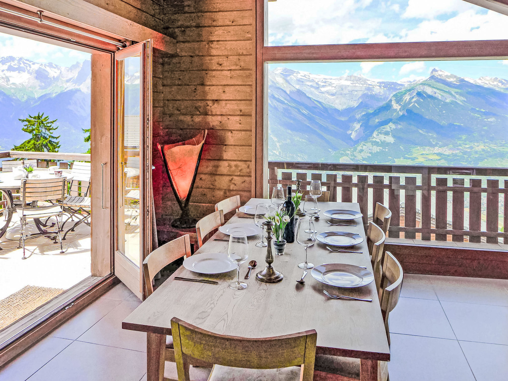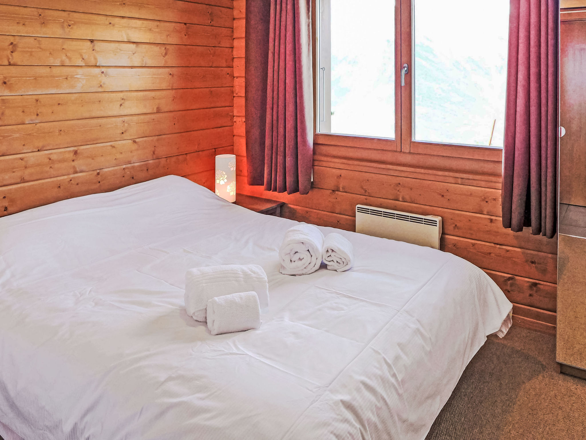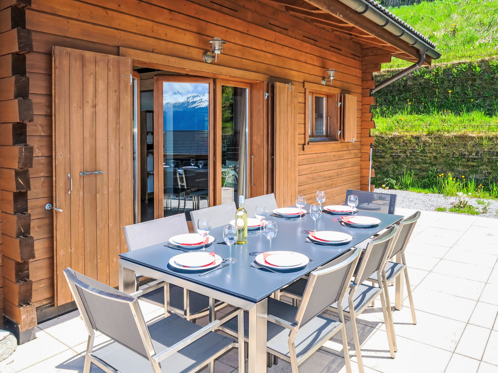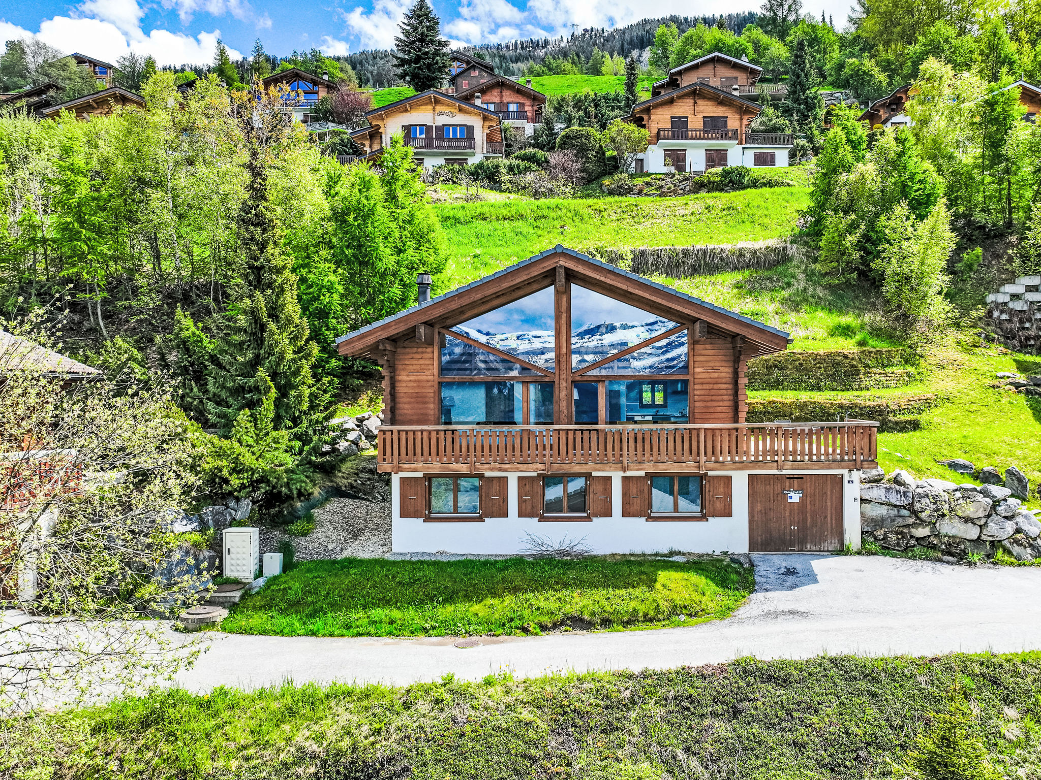 "La Truffe 6", 5-Zimmer-Chalet 120 m2 auf 3 Stockwerken. Geräumig, komfortabel und modern eingerichtet: grosses Wohn-/Esszimmer mit Panoramafenster mit offenem Kamin und Kabel-TV. Ausgang zur Terrasse, Richtung Norden. Offene Küche (Backofen, Geschirrspüler, 4 Glaskeramikplatten, Toaster, Wasserkocher, Mikrowelle, elektrische Kaffeemaschine, Kapseln für die Kaffeemaschine (Nespresso) extra, Racletteofen, Fondue Set (Käse)). Ausgang zum Garten, Richtung Westen. Dusche/WC. E-Heizung. Unteres Geschoss: 2 Zimmer, jedes Zimmer mit 1 franz. Bett (160 cm, Länge 200 cm). 1 Zimmer mit 2 Betten (90 cm, Länge 190 cm). Bad/WC. Obergeschoss: Galerie mit Kabel-TV und DVD. Grosser Balkon, Nordlage, Terrasse, Südwestlage. Terrassenmöbel, Gartengrill (mobil). Sehr schöne Panoramasicht auf die Berge und das Tal. Zur Verfügung: Waschmaschine, Wäschetrockner, Kinderhochstuhl, Babybett, Haartrockner. Internet (WLAN, gratis). Parkplatz (1 Auto), Garage, Höhe 195 cm, Breite 250 cm. Bitte beachten: Nichtraucher-Unterkunft.