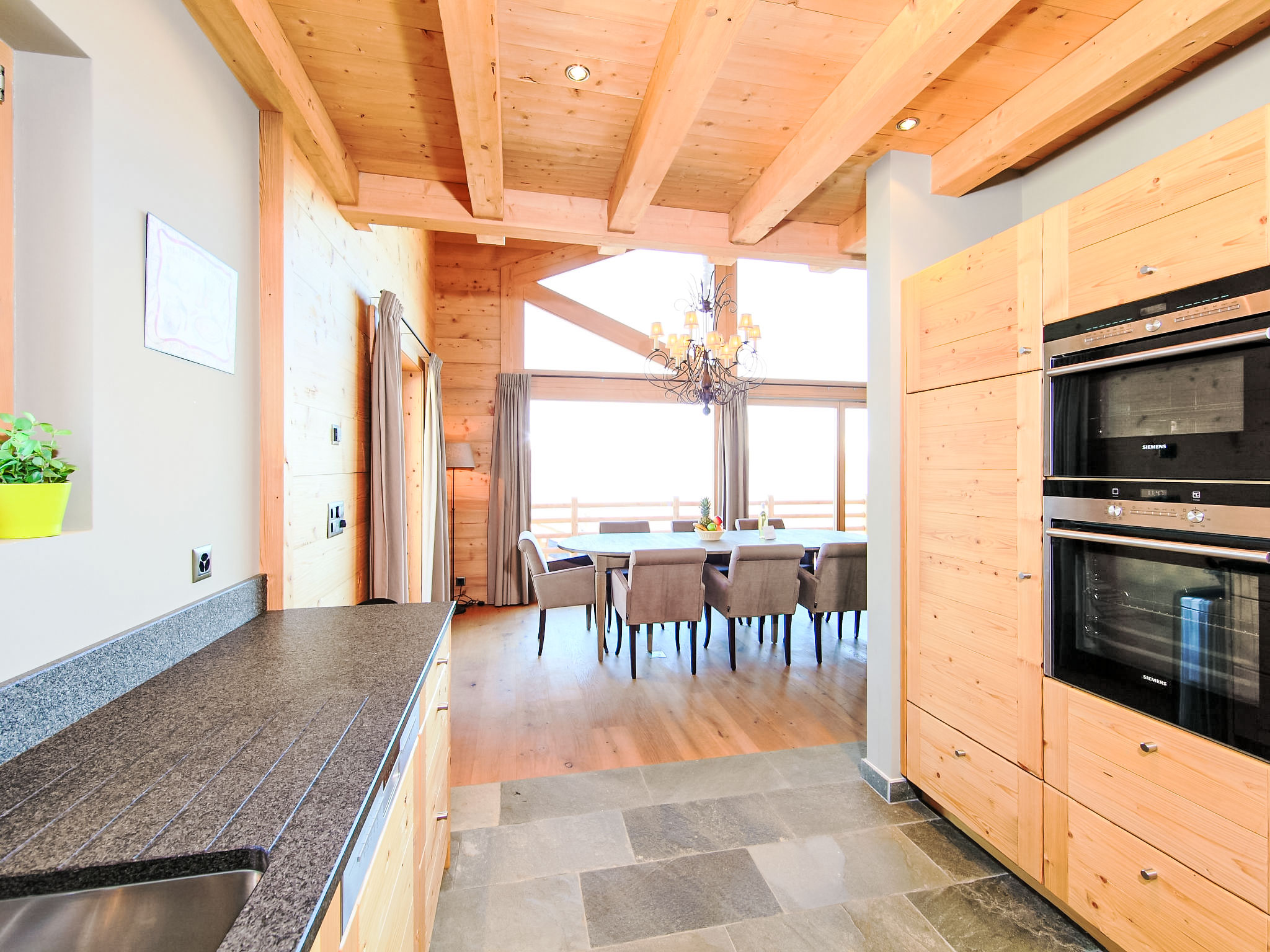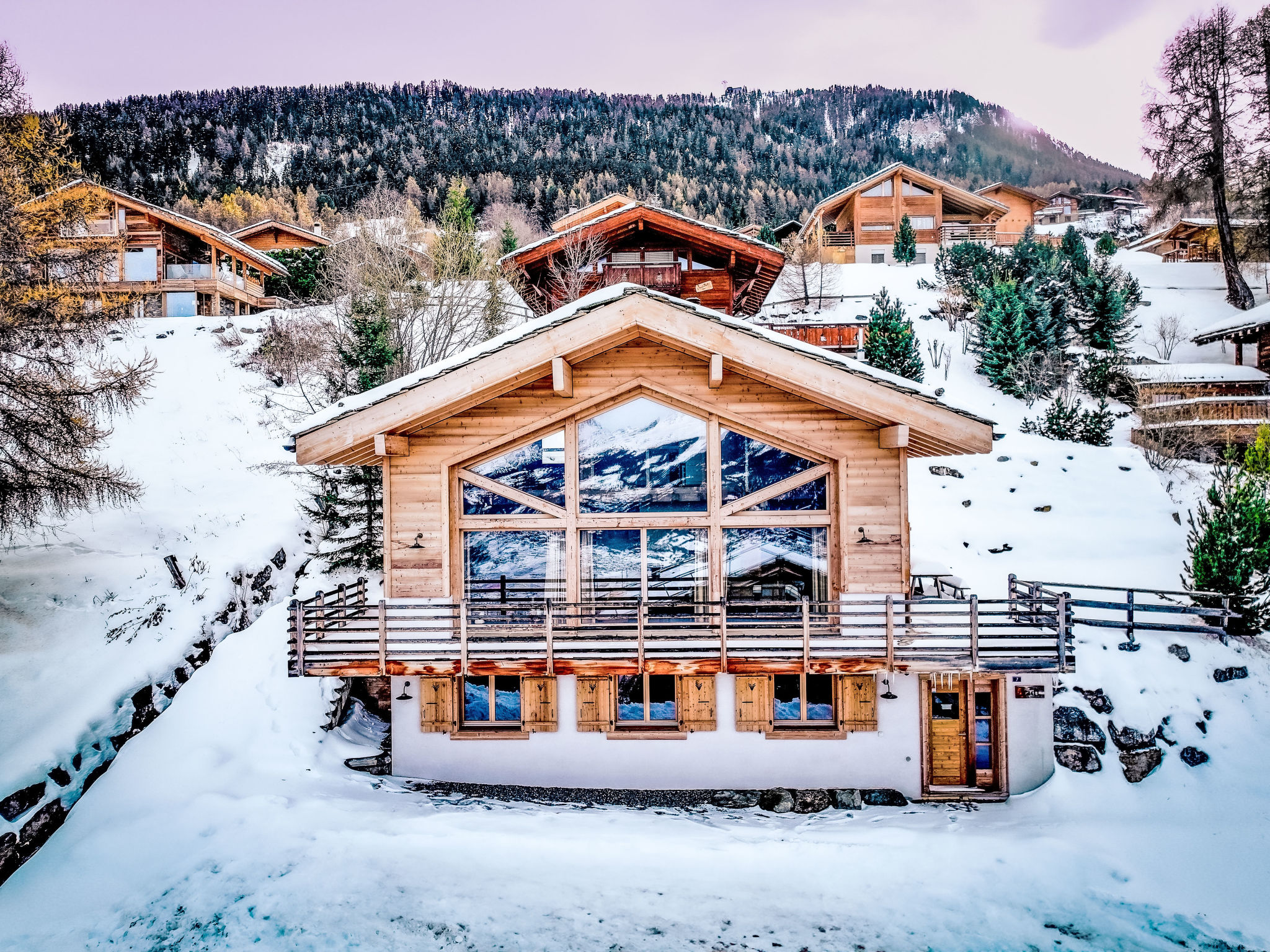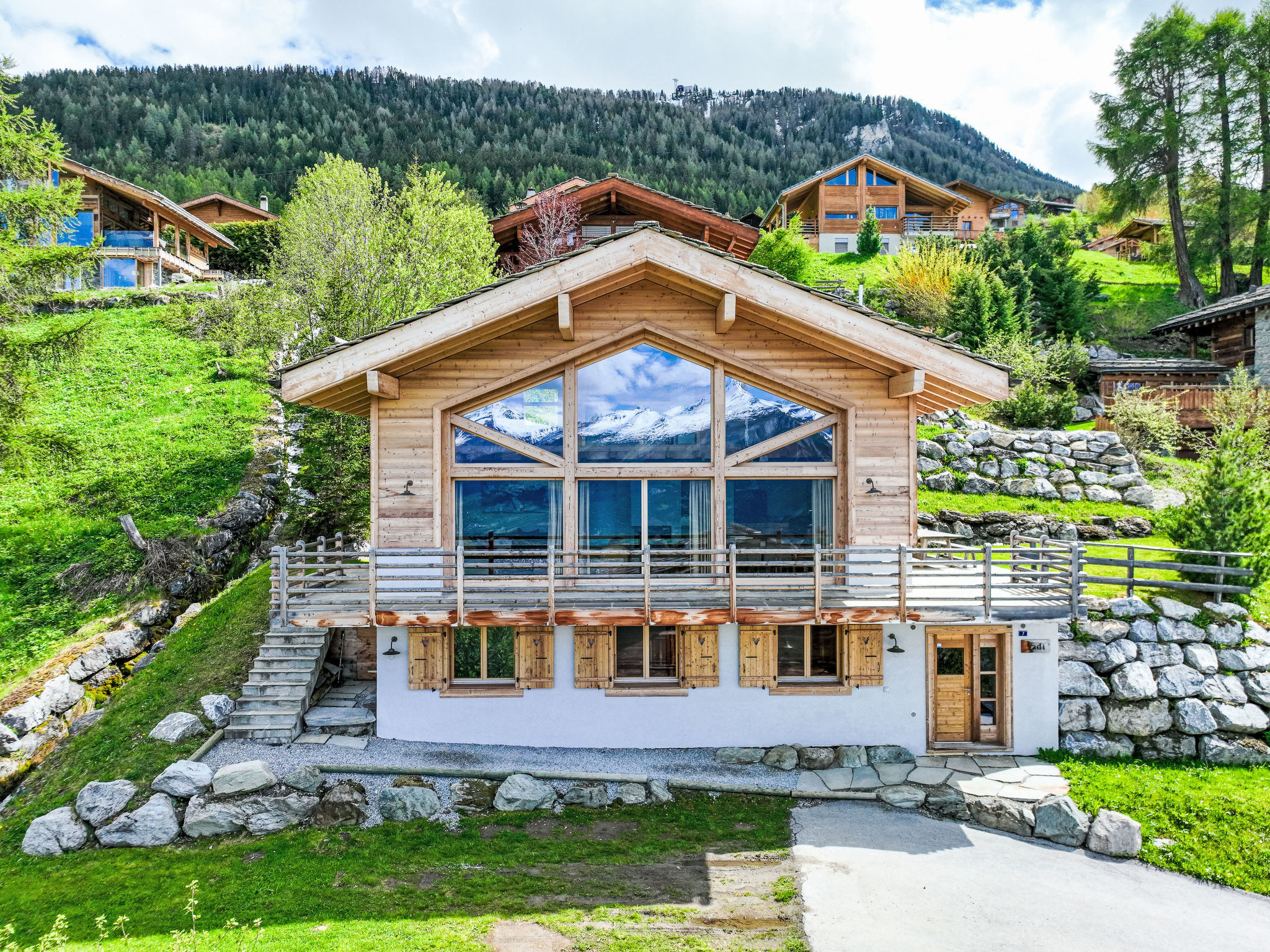 "Chalet Jadi", 5-Zimmer-Chalet 214 m2 auf 3 Stockwerken. Komfortabel und geschmackvoll eingerichtet: grosses Wohn-/Esszimmer mit offenem Kamin und Kabel-TV. Offene Küche (Backofen, Geschirrspüler, 5 Induktionskochplatten, Toaster, Wasserkocher, Mikrowelle, elektrische Kaffeemaschine, Kapseln für die Kaffeemaschine (nespresso) extra, Racletteofen, Fondue Set (Käse)). Sep. WC. Heizung. Unteres Geschoss: 1 Zimmer mit 1 franz. Bett (160 cm, Länge 200 cm). 1 Zimmer mit 1 franz. Bett (160 cm, Länge 200 cm). 1 Zimmer mit 2 Betten (90 cm, Länge 190 cm). Bad/WC, Dusche, sep. WC, Doppelwaschbecken, Sauna. Obergeschoss: offene grosse Galerie mit 1 Diwanbett (160 cm, Länge 200 cm). 1 Zimmer mit 2 Betten (90 cm, Länge 190 cm), Waschbecken und TV. Balkon, Nordlage, Terrasse, Westlage. Terrassenmöbel, Gartengrill. Sehr schöne Panoramasicht auf die Berge und das Tal. Zur Verfügung: Waschmaschine, Wäschetrockner, Kinderhochstuhl, Babybett, Haartrockner. Internet (WLAN, gratis). Parkplatz (2 Autos). Bitte beachten: Nichtraucher-Haus. Anstelle eines abgeschlossenen Schlafzimmers befinden sich manche Schlafplätze in einem offenen Bereich (Galerie, Nische etc.).