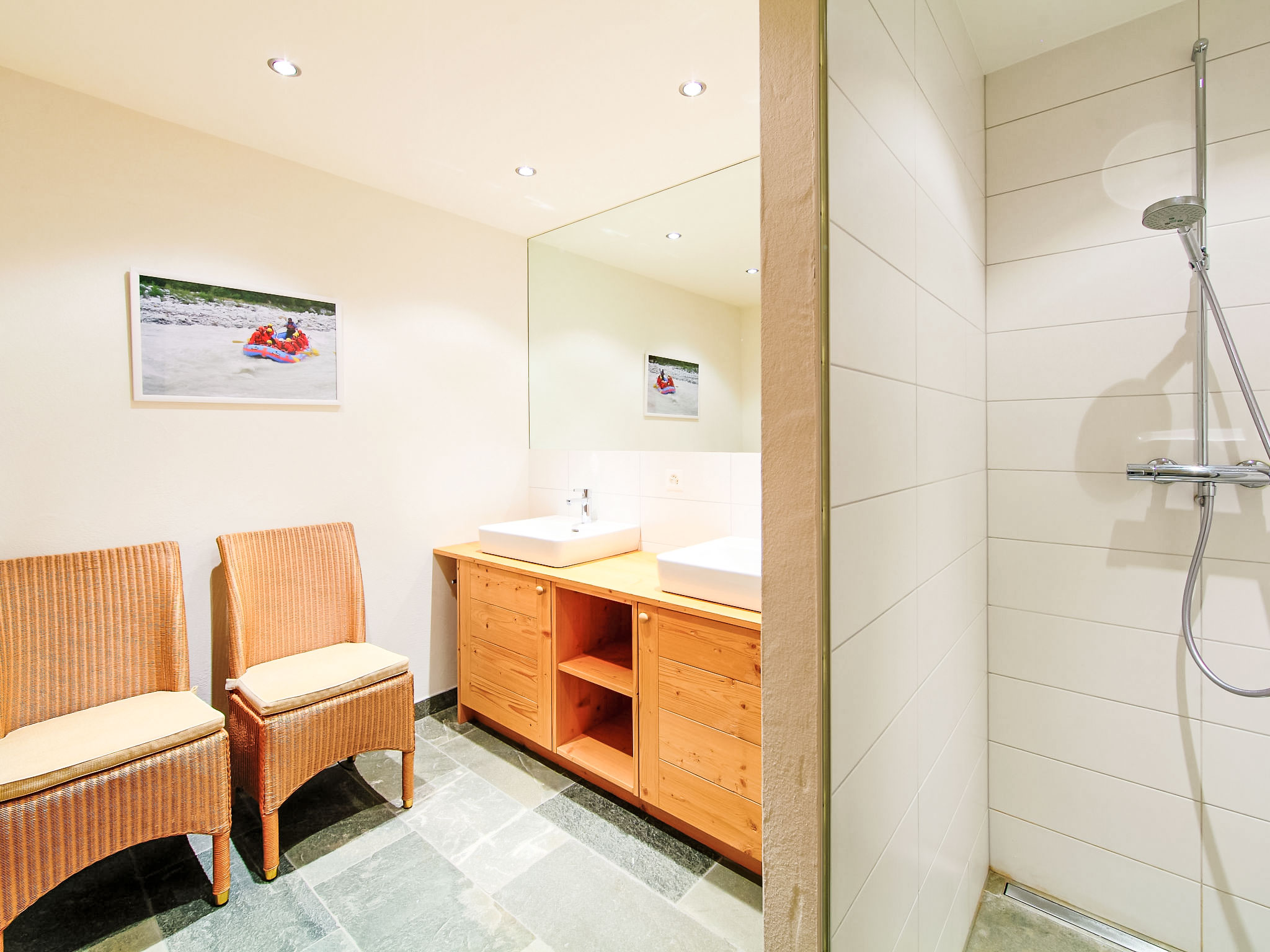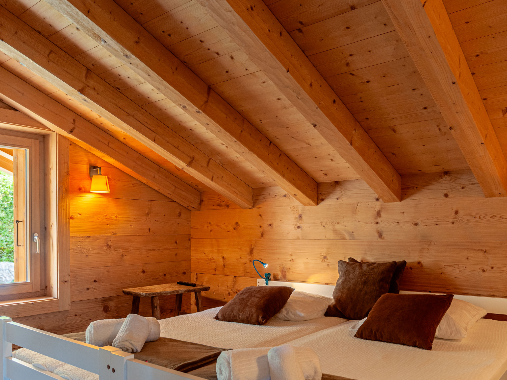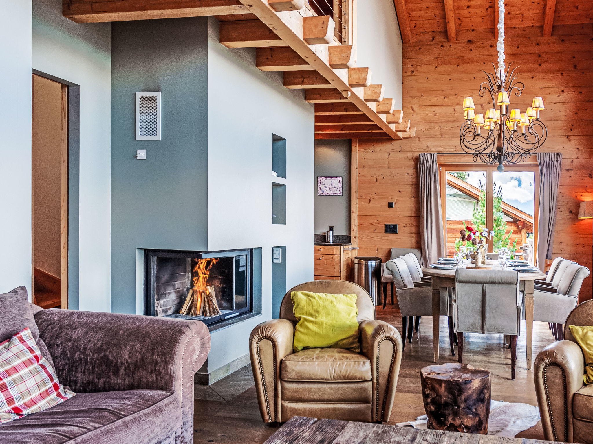 "Chalet Jadi", 5-Zimmer-Chalet 214 m2 auf 3 Stockwerken. Komfortabel und geschmackvoll eingerichtet: grosses Wohn-/Esszimmer mit offenem Kamin und Kabel-TV. Offene Küche (Backofen, Geschirrspüler, 5 Induktionskochplatten, Toaster, Wasserkocher, Mikrowelle, elektrische Kaffeemaschine, Kapseln für die Kaffeemaschine (nespresso) extra, Racletteofen, Fondue Set (Käse)). Sep. WC. Heizung. Unteres Geschoss: 1 Zimmer mit 1 franz. Bett (160 cm, Länge 200 cm). 1 Zimmer mit 1 franz. Bett (160 cm, Länge 200 cm). 1 Zimmer mit 2 Betten (90 cm, Länge 190 cm). Bad/WC, Dusche, sep. WC, Doppelwaschbecken, Sauna. Obergeschoss: offene grosse Galerie mit 1 Diwanbett (160 cm, Länge 200 cm). 1 Zimmer mit 2 Betten (90 cm, Länge 190 cm), Waschbecken und TV. Balkon, Nordlage, Terrasse, Westlage. Terrassenmöbel, Gartengrill. Sehr schöne Panoramasicht auf die Berge und das Tal. Zur Verfügung: Waschmaschine, Wäschetrockner, Kinderhochstuhl, Babybett, Haartrockner. Internet (WLAN, gratis). Parkplatz (2 Autos). Bitte beachten: Nichtraucher-Haus. Anstelle eines abgeschlossenen Schlafzimmers befinden sich manche Schlafplätze in einem offenen Bereich (Galerie, Nische etc.).