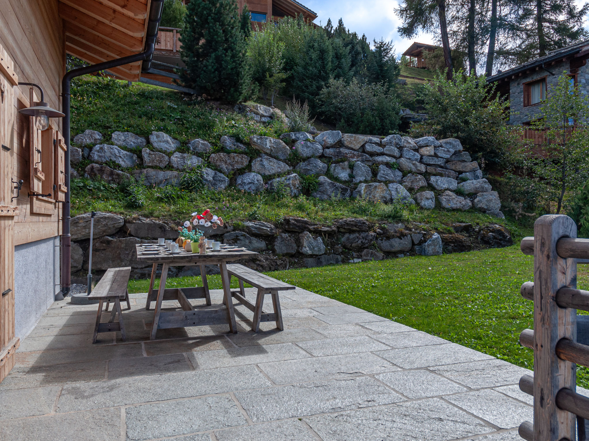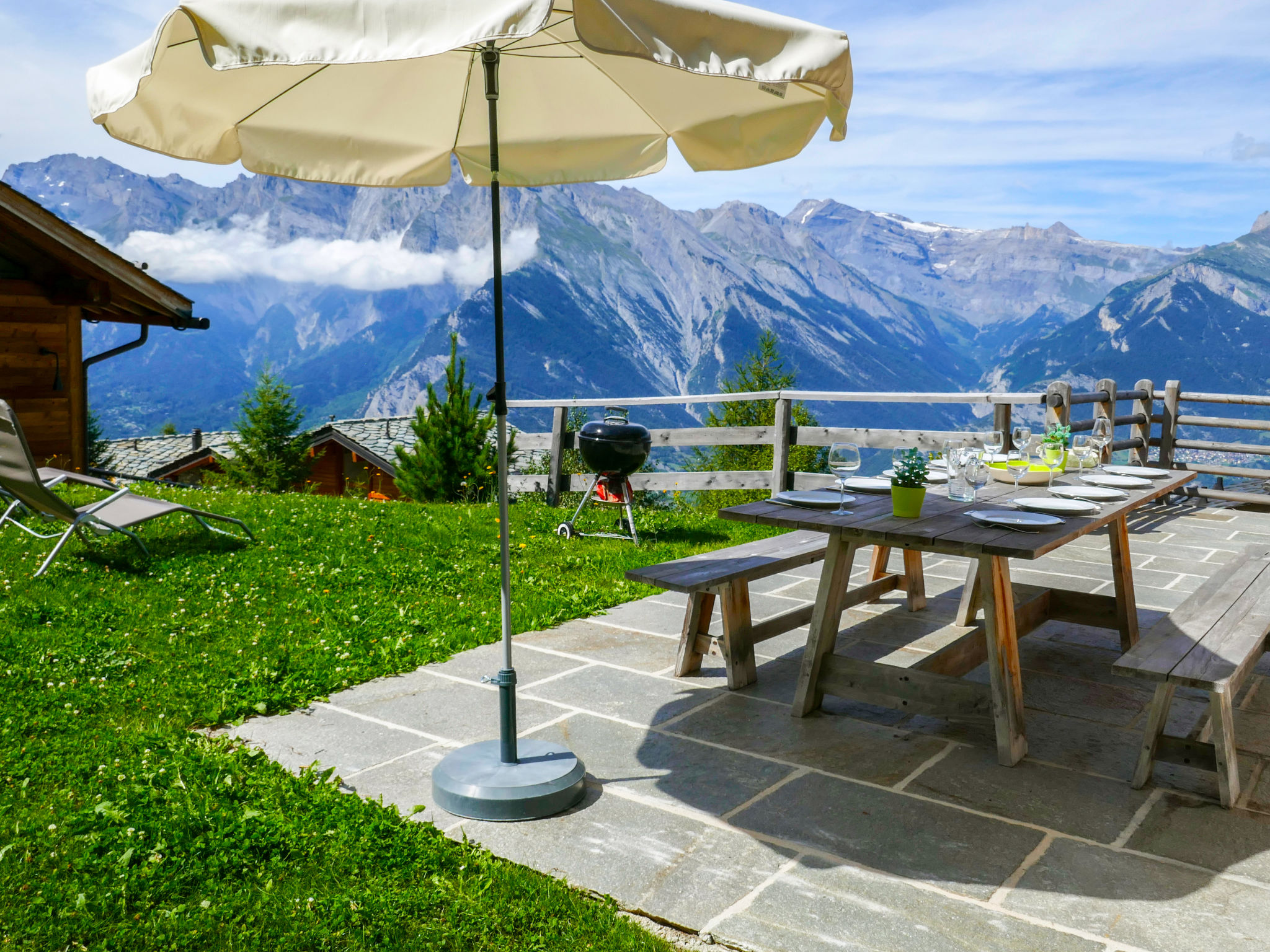 Rairettes: Schönes Chalet "Jadi", auf 3 Stockwerken, Baujahr 2013. Am Ortsrand, 800 m vom Zentrum, am Hang, in einer Sackgasse. Zur Alleinbenutzung: Garten. Gartenmöbel, Grill. Im Hause: Sauna, Skiraum, Waschmaschine, Wäschetrockner. Sehr steile, schmale Zufahrt bis zum Haus. Im Winter bitte Schneeketten mitbringen, im Winter 4x4 empfohlen. Parkplatz (für 3 Autos). Einkaufsgeschäft 1.3 km, Supermarkt 1.9 km, Restaurant 850 m, Bäckerei 900 m, Bushaltestelle "Haute-Nendaz, télécabine" 900 m, Bahnstation "Sion" 18 km, Thermalbad "Bain Hérémence" 20 km. Golfplatz (18 Loch) 18 km, Gondelbahn 900 m, Kinderspielplatz 2 km. Bekannte Skigebiete sind gut erreichbar: Nendaz 4 Vallées - Tracouet 900 m, Siviez 4 Vallées 8.3 km. Wandergebiete: Bisse Vieux 180 m.