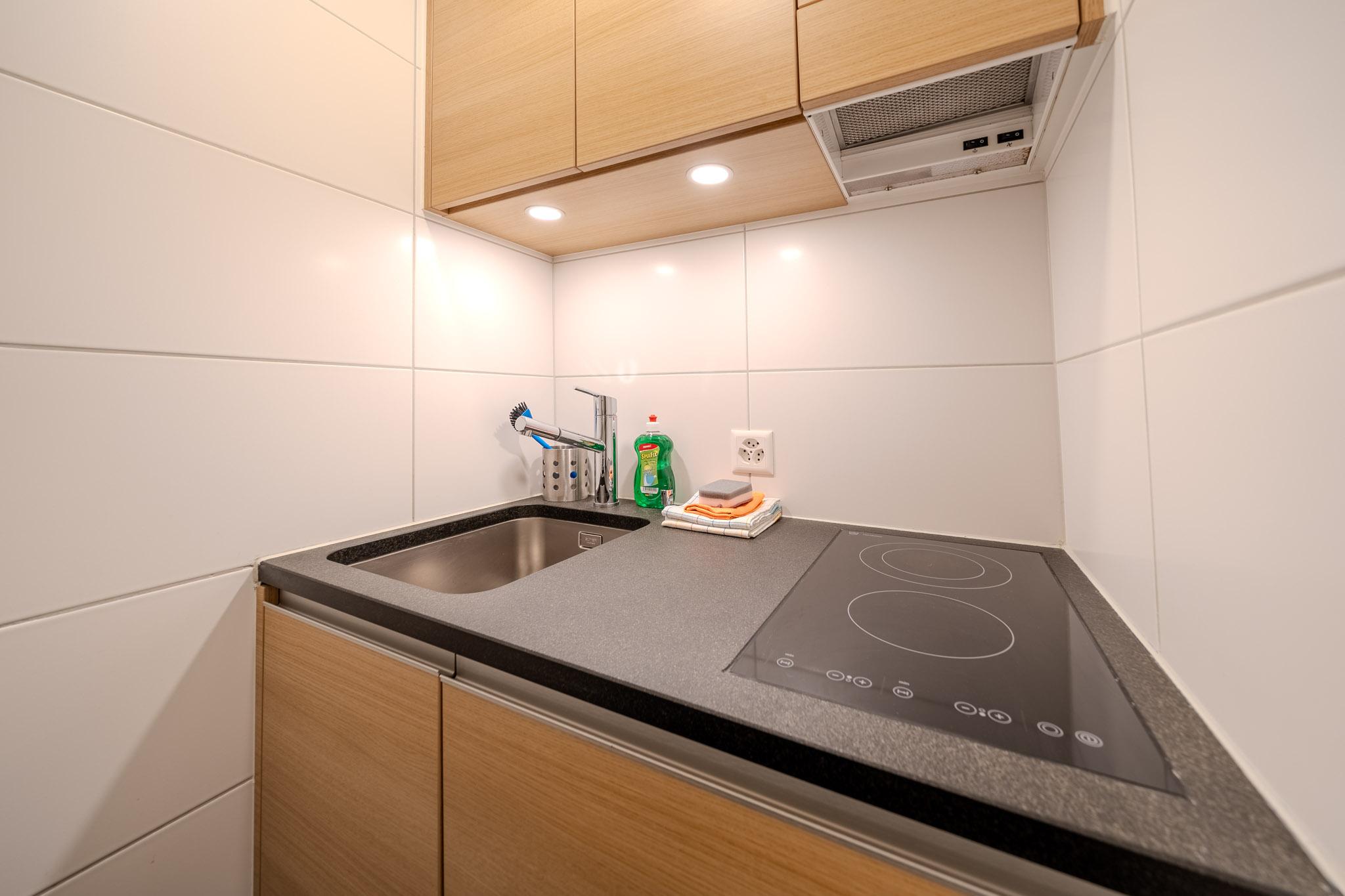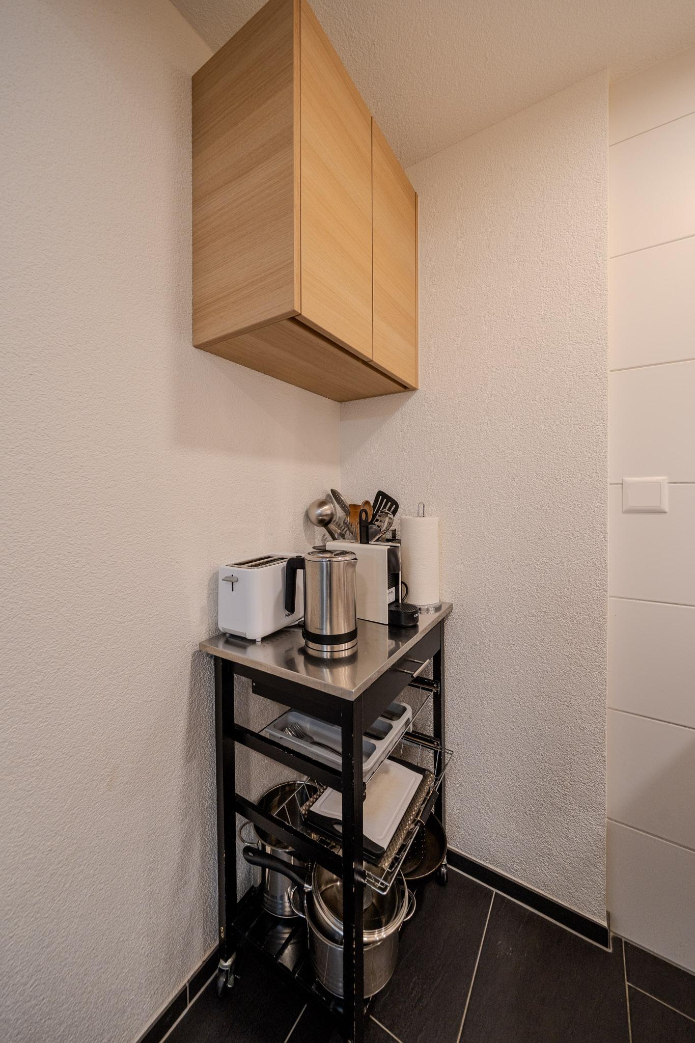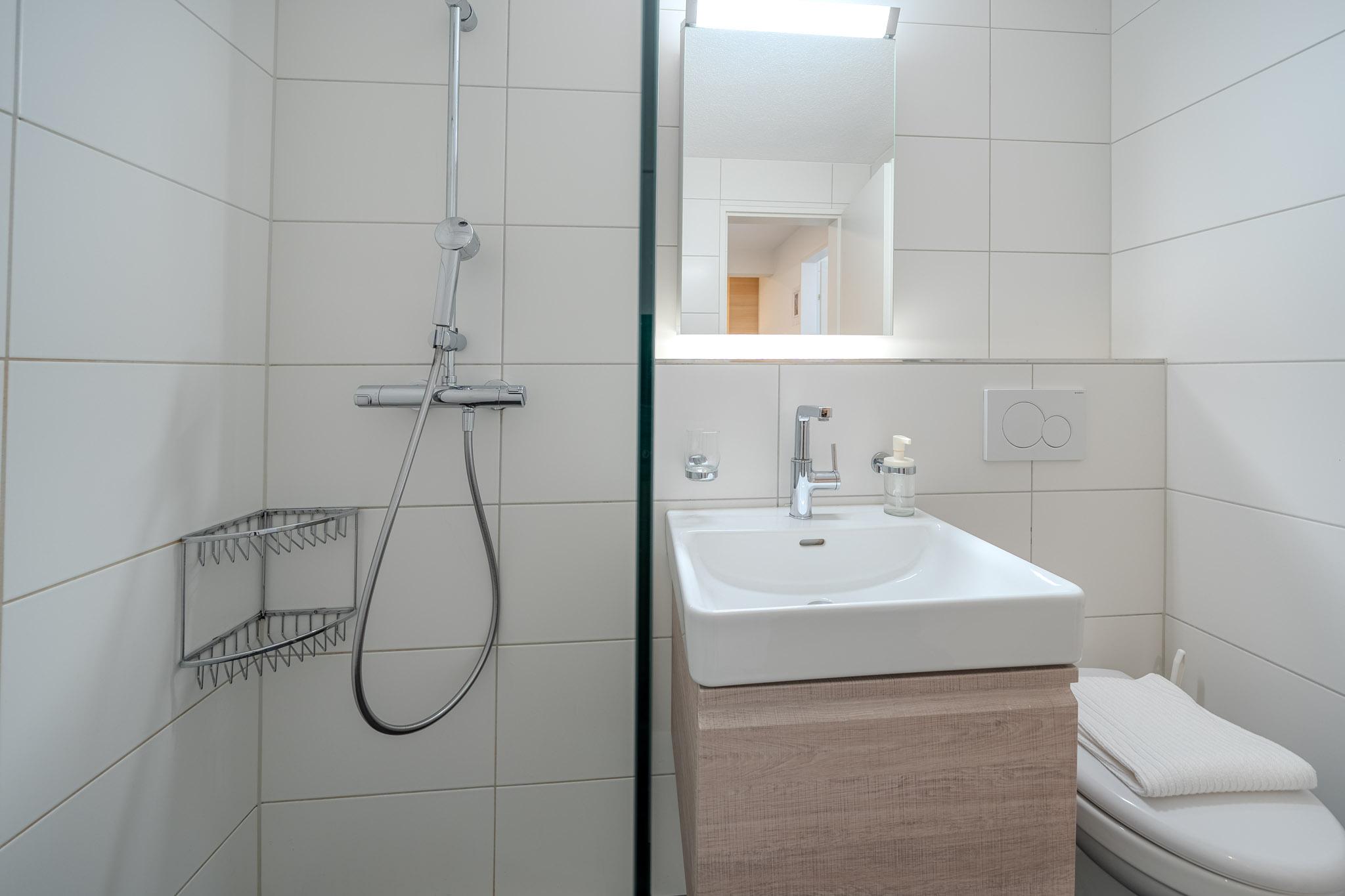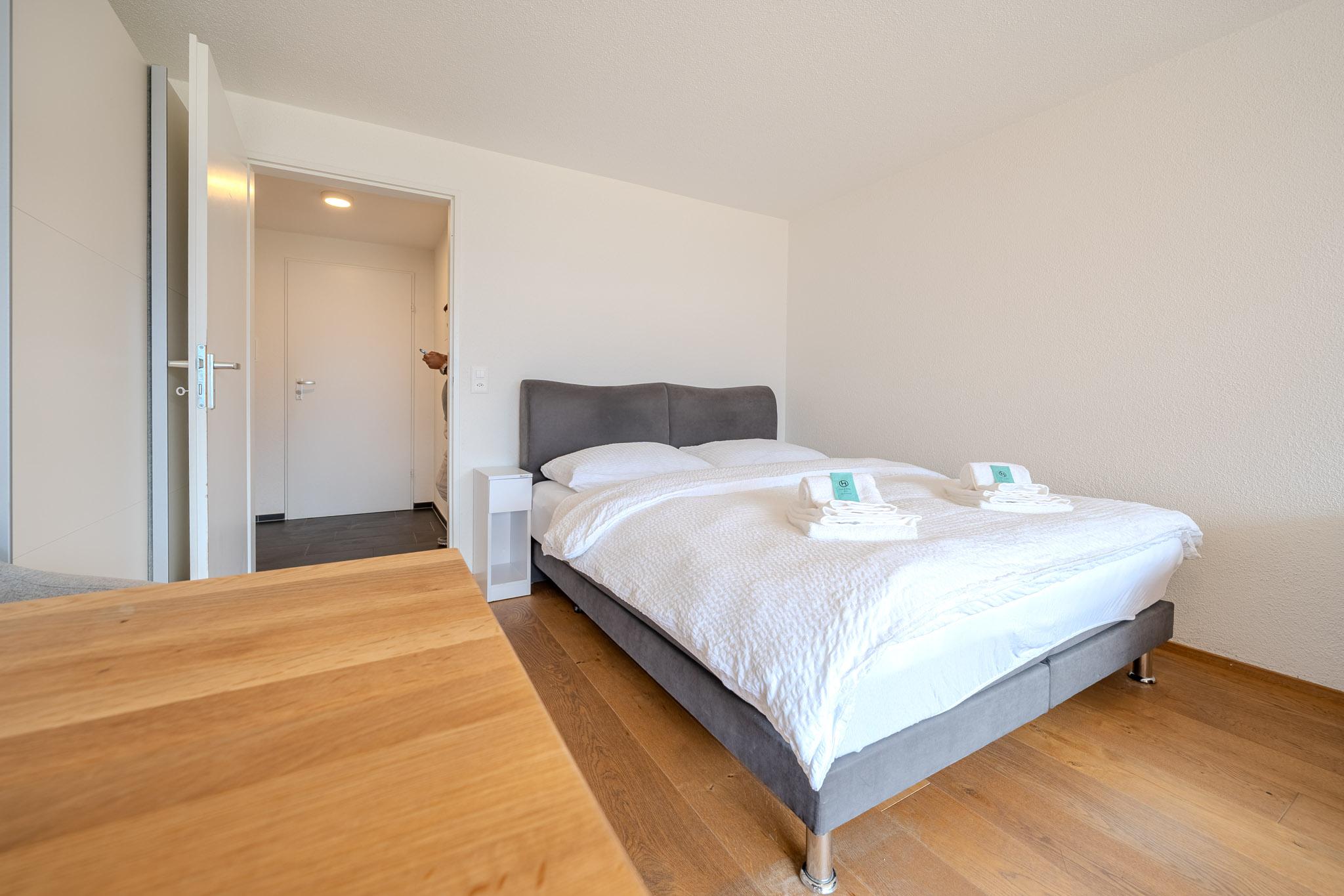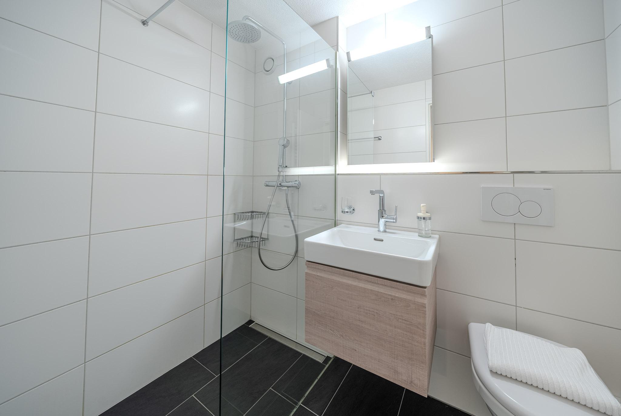 Die helle 1,5-Zimmer-Wohnung verfügt darüber hinaus über schnelles Internet (300 MBit/s), Wifi, Kabel-TV und einen Flachbildfernseher. Die praktische und gut ausgestattet Kitchenette mit Cerankochfeld, Mikrowelle/Grill, Nespresso Kaffeemaschine, Wasserkocher, Toaster, Fondue- und Raclette-Set befindet sich im Eingangsbereich ausserhalb des Wohn- und Schlafraumes. Das moderne Bad mit bodengleicher Regendusche lädt zum Wohlfühlen ein.
